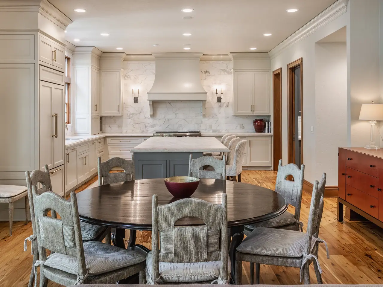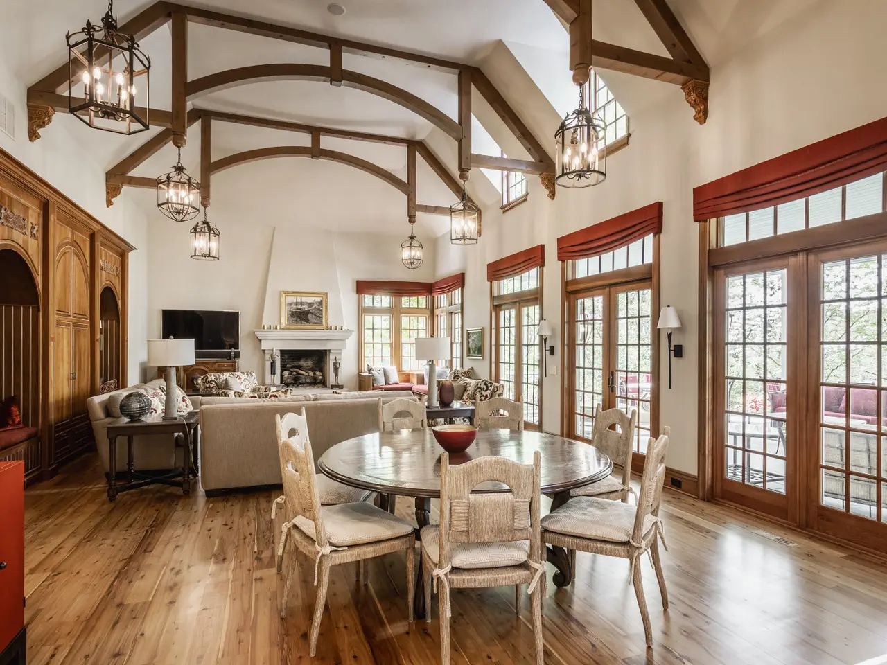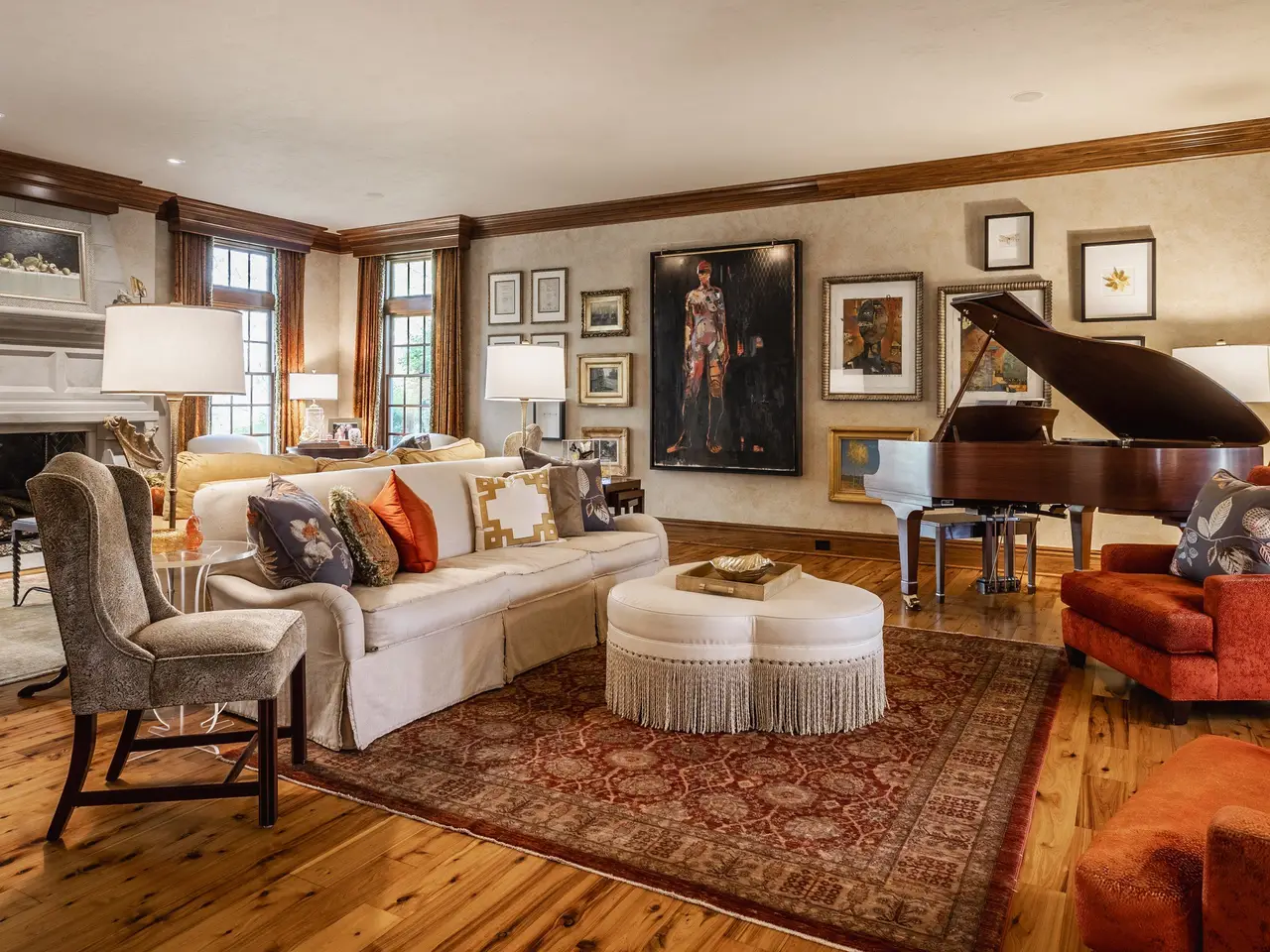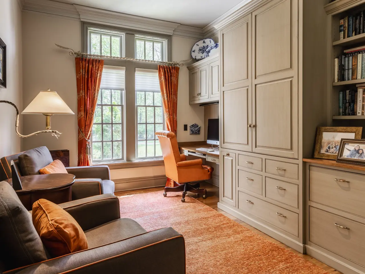 Exquisite custom-built estate on 1.84 acres of lushly landscaped grounds in the prestigious gated community of Springwood, overlooking the serene Nature Conservancy. This breathtaking home features both a 3-car attached garage and a 3-car detached garage. Inside, the grand great room welcomes you with a limestone fireplace and soaring windows that frame the park-like backyard. The formal dining room impresses with elaborate custom moldings and a hand-painted mural, while the main-level den offers a carved marble fireplace, custom built-ins, and TV niche. The main-floor primary suite is a private retreat, complete with a spa-inspired bath featuring a soaking tub, dual vanities, expansive walk-in shower, and an exceptional two-sided walk-in closet. The chef's kitchen, completely remodeled just two years ago, is a culinary masterpiece, boasting a butler's pantry, quartzite countertops, coffee bar, Wolf appliances, 6-burner gas range, built-in fridge/freezer, dual dishwashers, and additional refrigerator drawers. It flows seamlessly into the family room, featuring a limestone fireplace, custom seating, exposed truss ceiling, and stunning views of the backyard. The home also offers two washers and dryers, adding convenience to everyday living. Upstairs, discover four ensuite bedrooms, an office, and a playroom. The finished lower level offers a rec/theatre room, wine cellar, exercise room, and abundant storage. Additional highlights include an elevator and unmatched craftsmanship throughout. This one-of-a-kind estate is the epitome of sophisticated Carmel living, combining luxury, functionality, and timeless elegance.