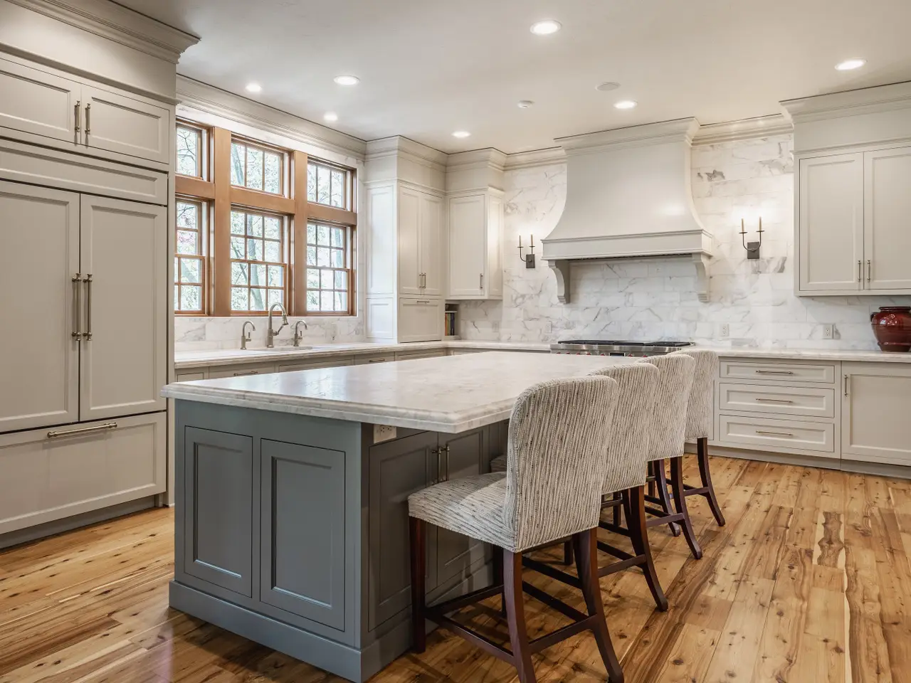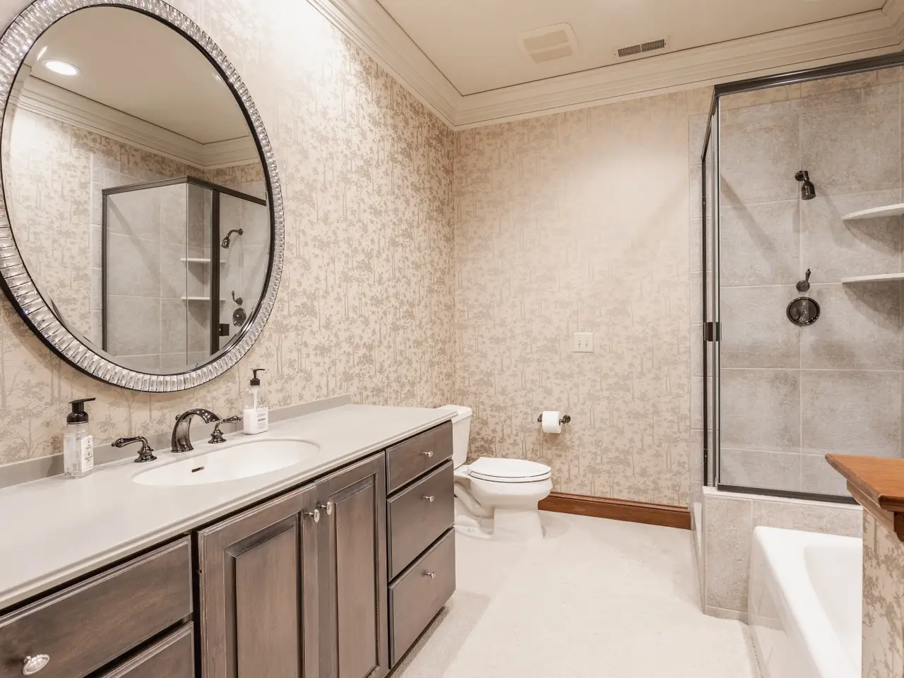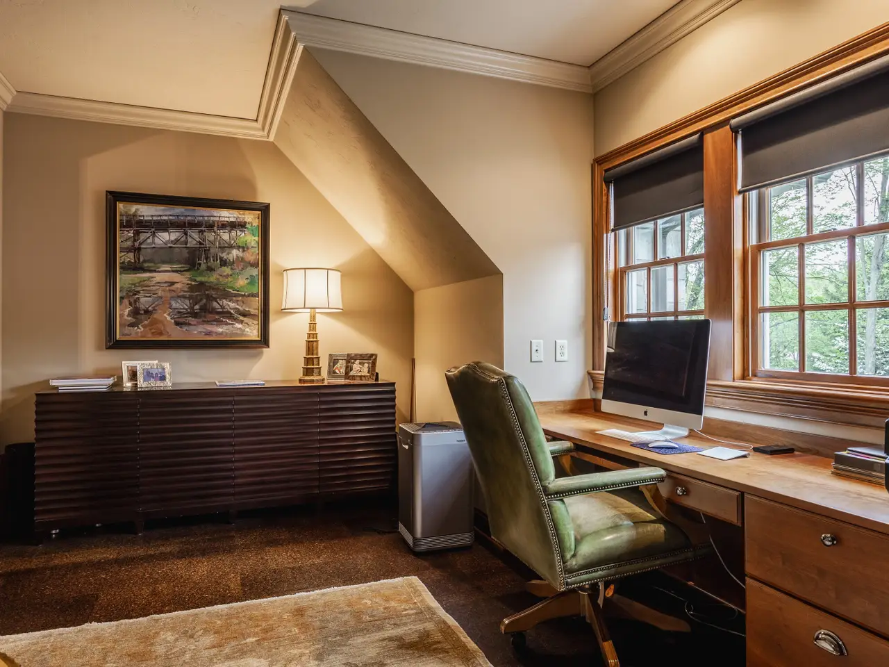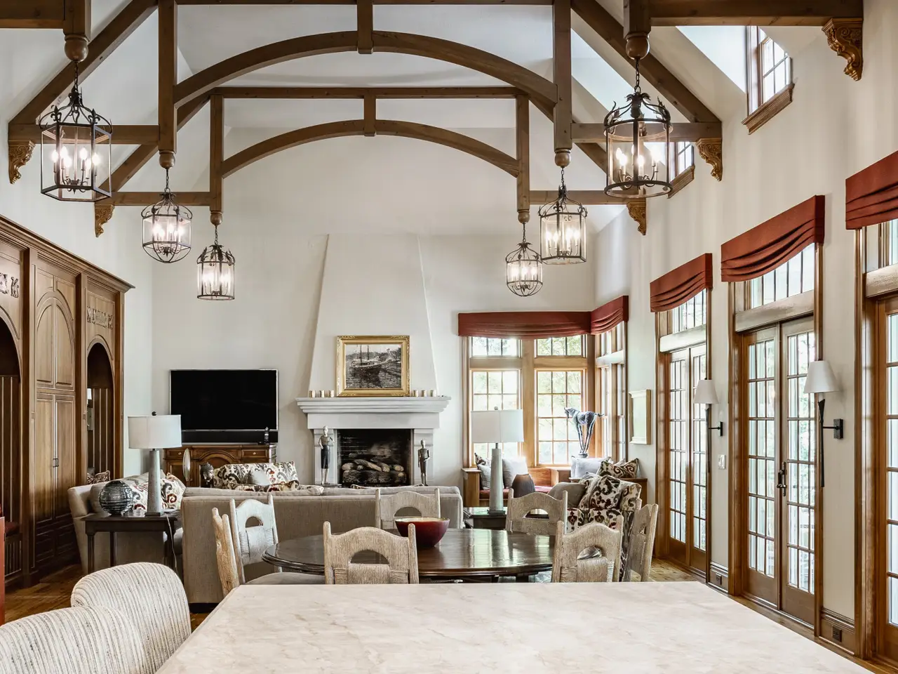 Exquisite custom-built estate on 1.84 acres of lushly landscaped grounds in the prestigious gated community of Springwood, overlooking the serene Nature Conservancy. This breathtaking home features both a 3-car attached garage and a 3-car detached garage. Inside, the grand great room welcomes you with a limestone fireplace and soaring windows that frame the park-like backyard. The formal dining room impresses with elaborate custom moldings and a hand-painted mural, while the main-level den offers a carved marble fireplace, custom built-ins, and TV niche. The main-floor primary suite is a private retreat, complete with a spa-inspired bath featuring a soaking tub, dual vanities, expansive walk-in shower, and an exceptional two-sided walk-in closet. The chef's kitchen, completely remodeled just two years ago, is a culinary masterpiece, boasting a butler's pantry, quartzite countertops, coffee bar, Wolf appliances, 6-burner gas range, built-in fridge/freezer, dual dishwashers, and additional refrigerator drawers. It flows seamlessly into the family room, featuring a limestone fireplace, custom seating, exposed truss ceiling, and stunning views of the backyard. The home also offers two washers and dryers, adding convenience to everyday living. Upstairs, discover four ensuite bedrooms, an office, and a playroom. The finished lower level offers a rec/theatre room, wine cellar, exercise room, and abundant storage. Additional highlights include an elevator and unmatched craftsmanship throughout. This one-of-a-kind estate is the epitome of sophisticated Carmel living, combining luxury, functionality, and timeless elegance.