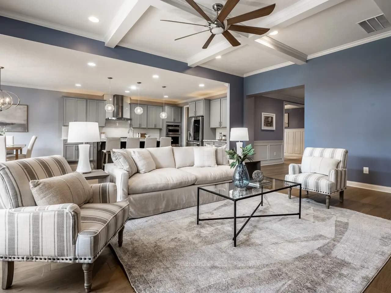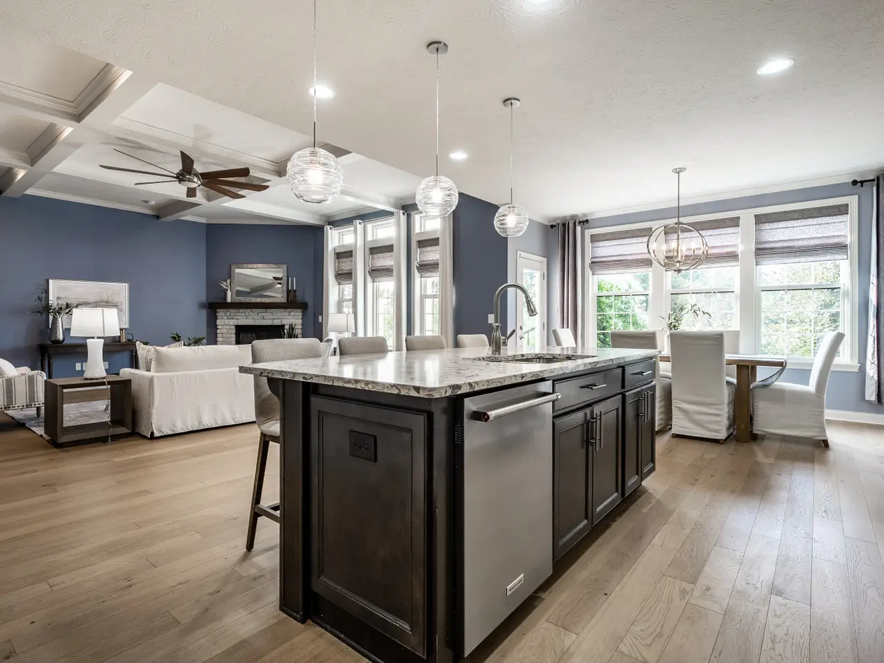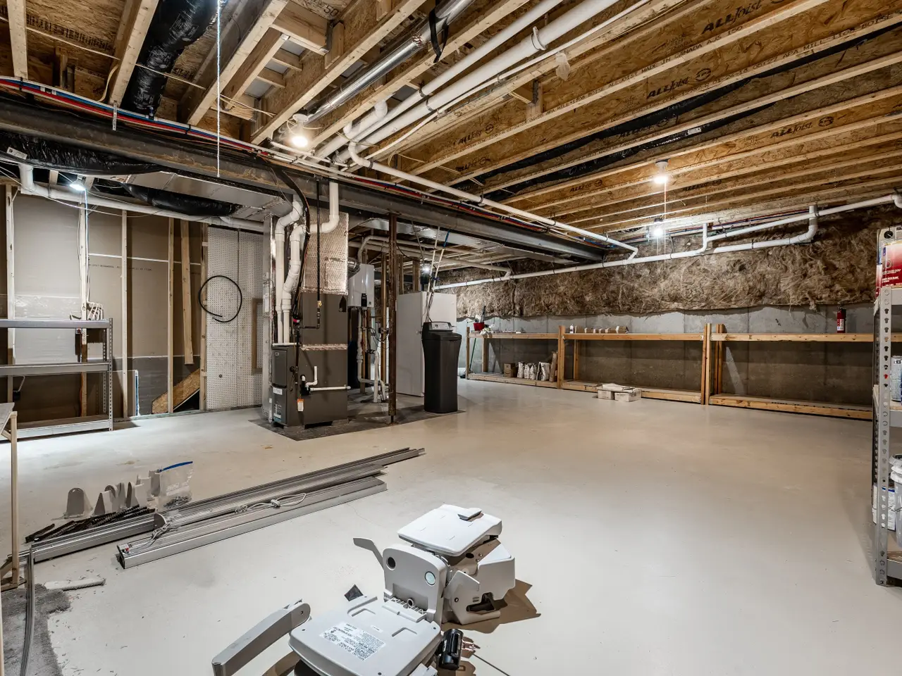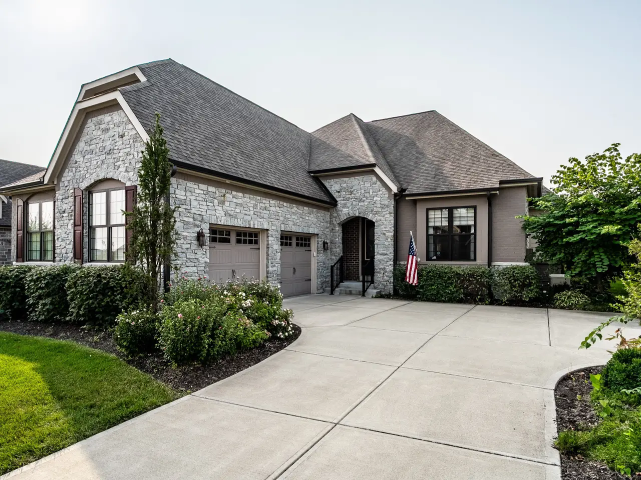 Welcome home to this exquisite 3bd/3.5ba ranch home w/ finished basement. The French country-inspired facade, hearty stone siding & impeccable landscaping create a stunning first impression, complemented by an extra-wide two-car garage. Step inside to a spacious foyer & welcoming main floor featuring engineeered hrdwd flooring & natural light throughout. Dedicated home office w/ crown molding & ceiling fan offers a perfect work-from-home space. Secondary bdrm on main inclds a closet, full bath & beautifully tiled shower. Elegant formal dining rm showcases a warm custom wood tray ceiling, wainscoted walls & decorative chandelier. The great rm boasts coffered ceilings w/ recessed lighting & ceiling fan, cozy stone gas log fireplace w/ wood mantle. Breathtaking kitchen, complete w/ gleaming quartz counters, large center island, tile backsplash, SS apps & gas cooktop w/ chimney range hood. Butler's pantry/coffee bar offers extra cabs + an oversized walk-in pantry. Primary ensuite features a tray ceiling, recessed lighting, expansive walk-in closet w/ dark wood shelving, integrated drawers & hanging rods for clothes. Spa-like primary bathroom inclds a dbl vanity, ample cabs, tile floors, walk-in tiled shower & separate walk-in upright whirlpool tub. Laundry room w/ a washer & dryer, ample cabs, tile floors, utility sink & folding counter. Mudroom features built-in cubbies, hanging hooks & storage closet. Garage is finished, extra-wide two-car w/ epoxy flooring. Expansive finished basement provides extra living space w/ carpeted floors, electric fireplace & recessed lights, full bathrm w/ tub/shower, vanity & tile flooring. Third bdrm inclds carpeted flooring, a closet, rough-in for ceiling fan & egress window. Huge unfinished area for addtnl storage. Home is equipped w/ a Generac generation system for added peace of mind. Enjoy a great location w/ neighborhood walking trails, close proximity to schools, shopping, dining & all that the City of Carmel has to offer!