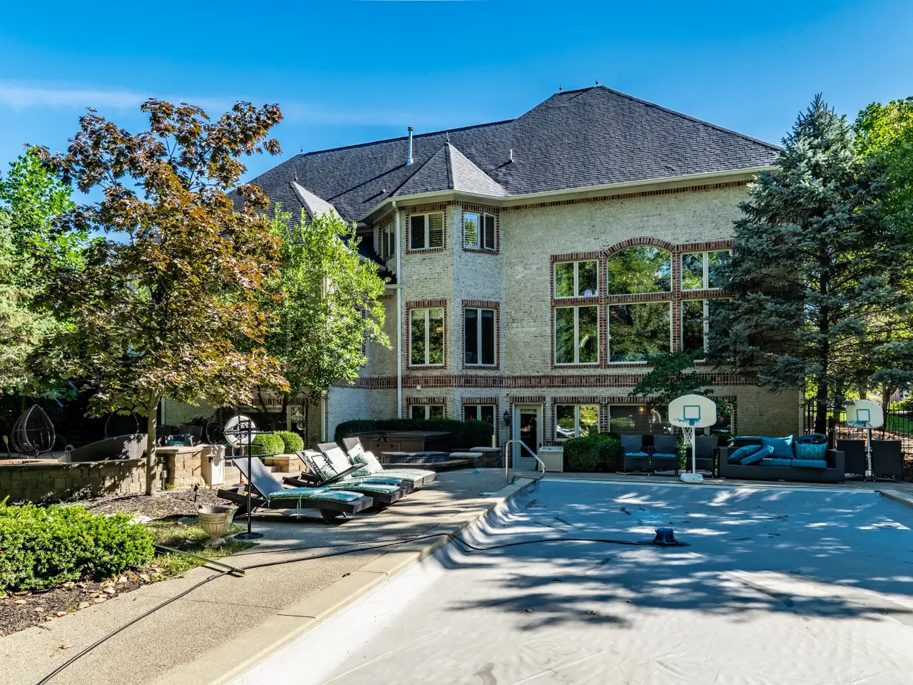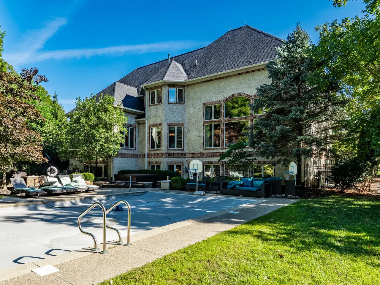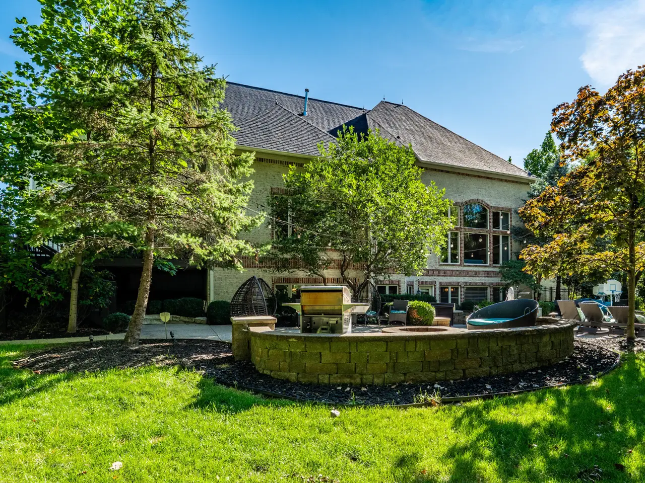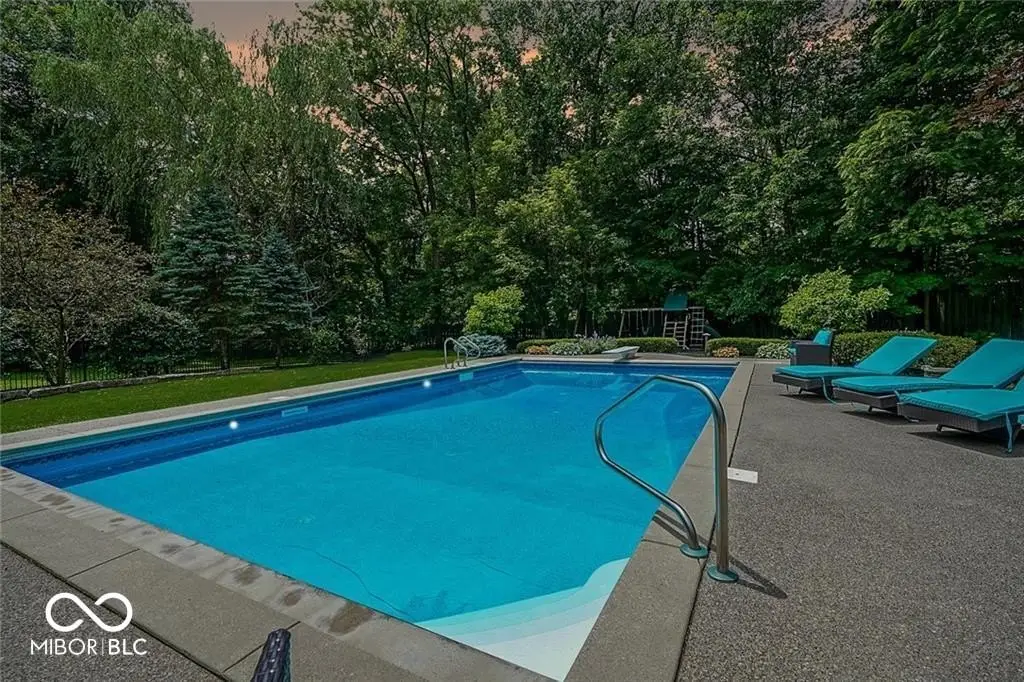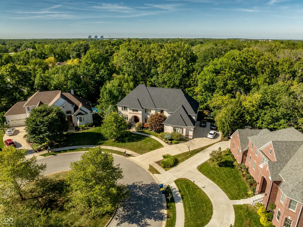 Nestled at 10470 Roxley Bend, Carmel, IN, this luxurious single-family residence in Carmel presents an amazing design and top-tier materials throughout, offering an unparalleled living experience. This house is in great condition. The living room is a grand space, defined by its high ceiling and inviting fireplace, offering a warm ambiance for gatherings or quiet evenings; crown molding and a beamed ceiling add architectural interest and sophistication. The kitchen is a culinary dream, featuring stone countertops, a custom range hood, and shaker cabinets, creating a stylish and functional workspace; a large kitchen island and kitchen peninsula offer ample space for meal preparation and casual dining, complemented by a backsplash, double oven, stovetop, and built-in refrigerator. Imagine preparing meals in this beautiful space. The bathrooms offer a spa-like experience, with tiled walk-in showers that provide a luxurious and refreshing escape. Step outside to discover your private oasis, complete with a deck, outdoor dining area, and patio, perfect for entertaining or simply enjoying the serene surroundings; a fire pit adds warmth and ambiance for cool evenings, while the private pool, featuring a diving board, provides endless summer fun; a hot tub offers relaxation and rejuvenation. The property also includes a cinema room for immersive entertainment experiences. The expansive 30492 square feet lot offers a woods view.This residence features five full bathrooms and two half bathrooms, along with five bedrooms spread across two stories, encompassing 5414 square feet of living area. Built in 2006, the property is located in a desirable residential area and offers an open floor plan. This is an exceptional opportunity to own a luxurious home designed for both comfort and sophisticated living.
