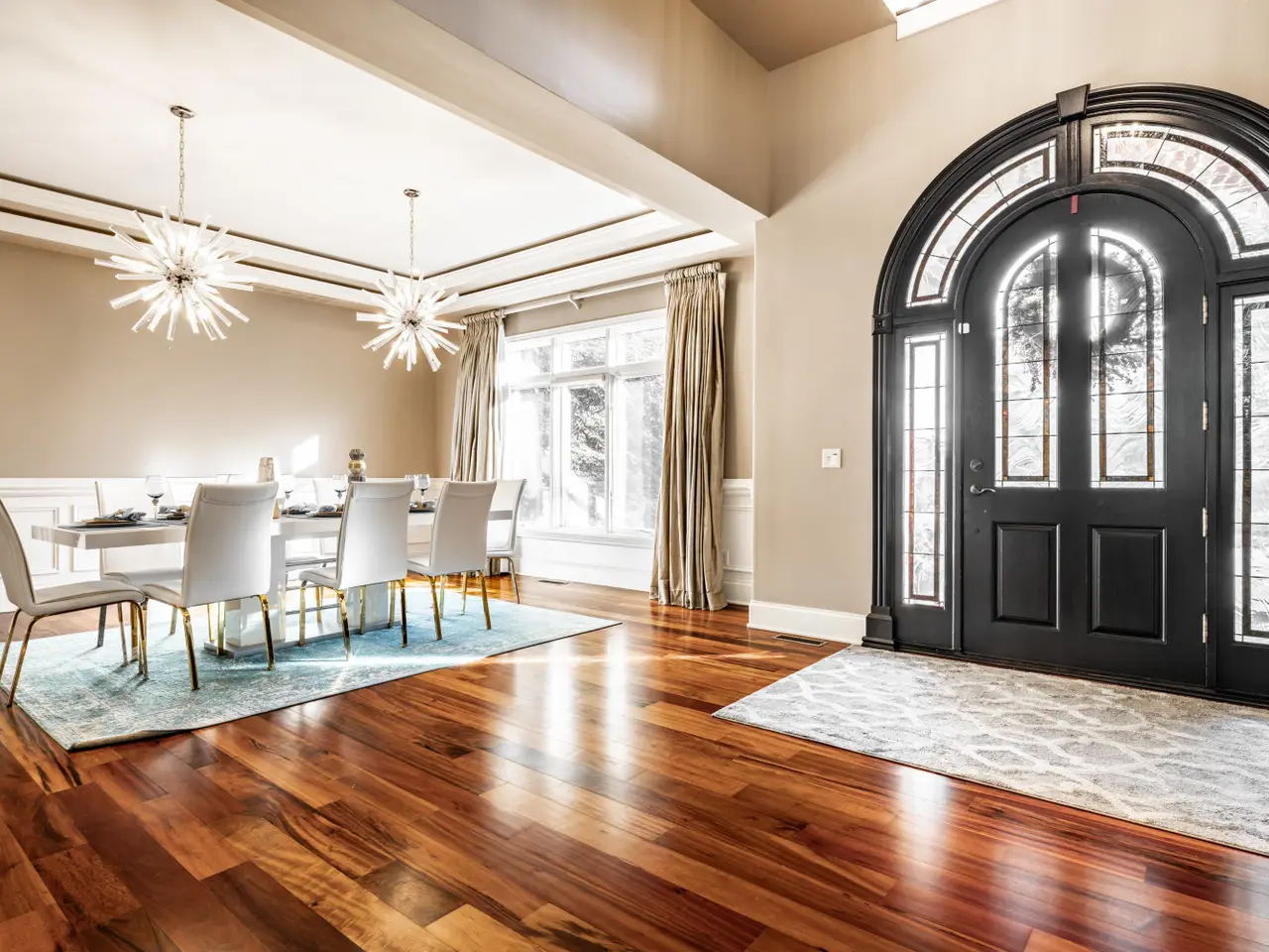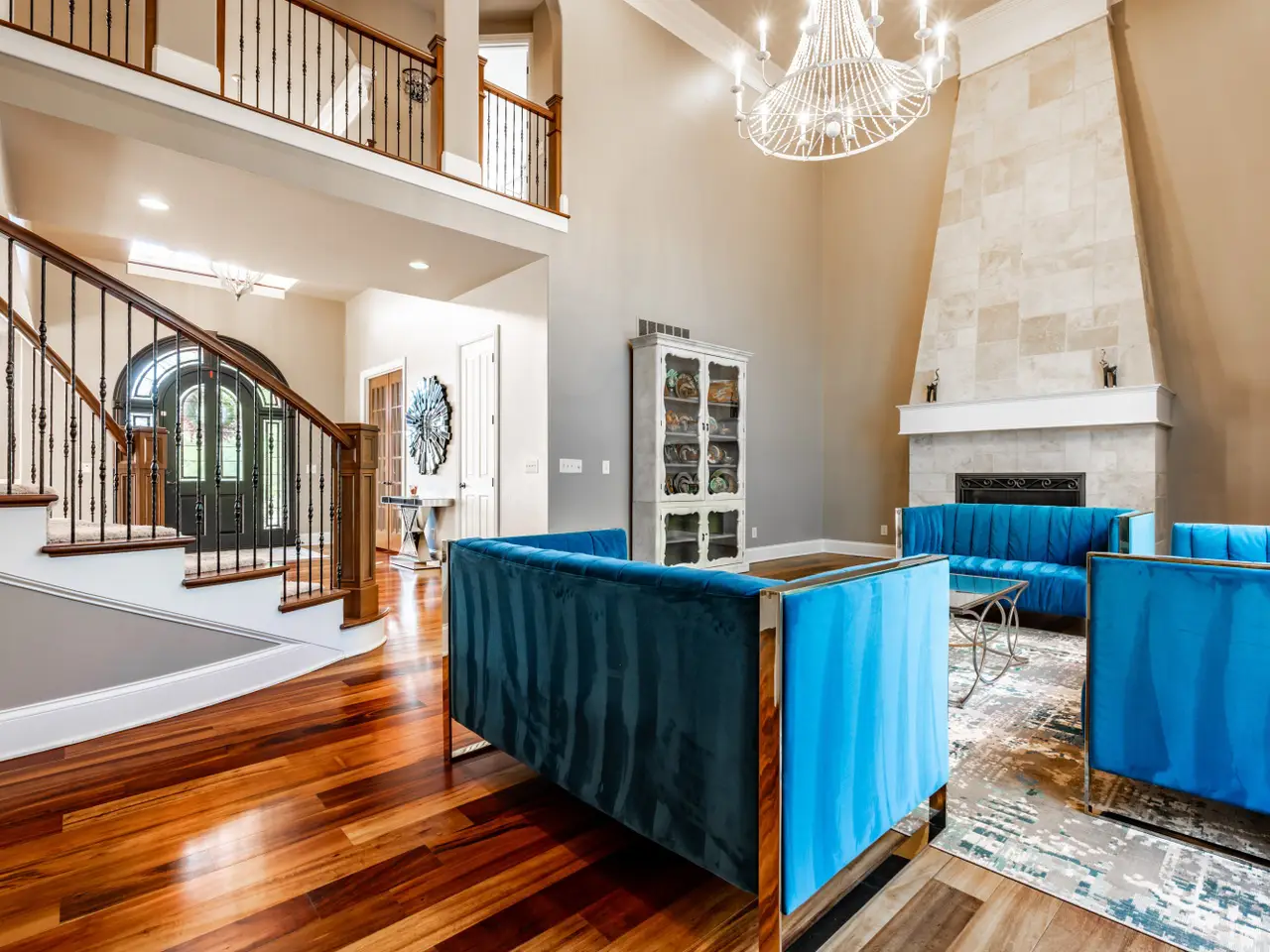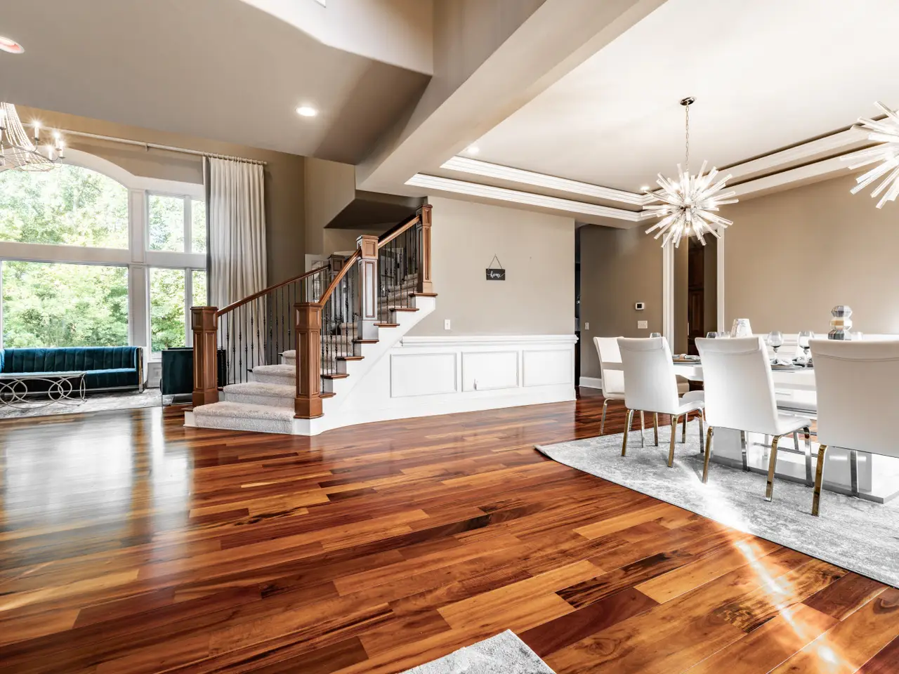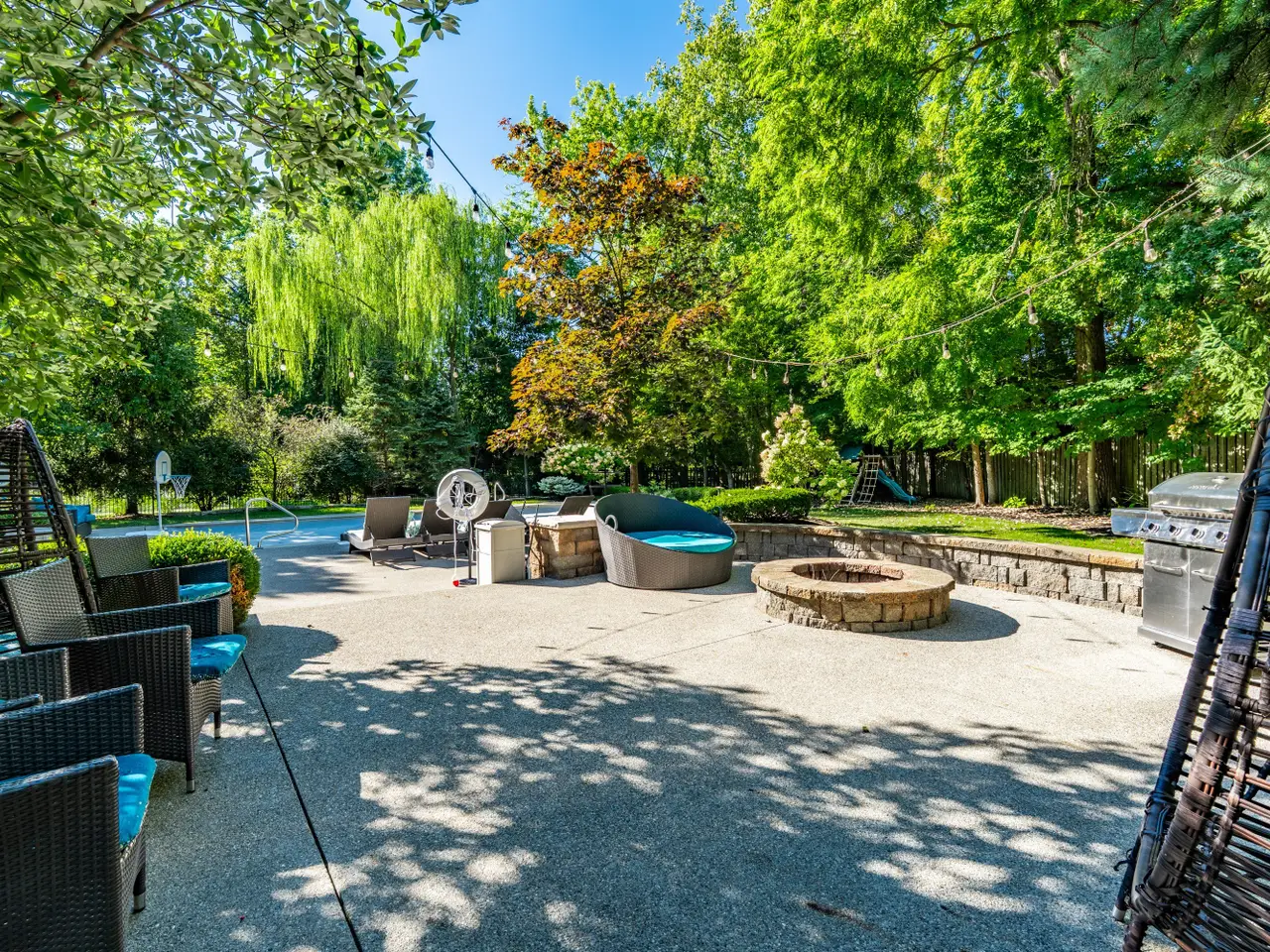 Nestled at 10470 Roxley Bend, Carmel, IN, this luxurious single-family residence in Carmel presents an amazing design and top-tier materials throughout, offering an unparalleled living experience. This house is in great condition. The living room is a grand space, defined by its high ceiling and inviting fireplace, offering a warm ambiance for gatherings or quiet evenings; crown molding and a beamed ceiling add architectural interest and sophistication. The kitchen is a culinary dream, featuring stone countertops, a custom range hood, and shaker cabinets, creating a stylish and functional workspace; a large kitchen island and kitchen peninsula offer ample space for meal preparation and casual dining, complemented by a backsplash, double oven, stovetop, and built-in refrigerator. Imagine preparing meals in this beautiful space. The bathrooms offer a spa-like experience, with tiled walk-in showers that provide a luxurious and refreshing escape. Step outside to discover your private oasis, complete with a deck, outdoor dining area, and patio, perfect for entertaining or simply enjoying the serene surroundings; a fire pit adds warmth and ambiance for cool evenings, while the private pool, featuring a diving board, provides endless summer fun; a hot tub offers relaxation and rejuvenation. The property also includes a cinema room for immersive entertainment experiences. The expansive 30492 square feet lot offers a woods view.This residence features five full bathrooms and two half bathrooms, along with five bedrooms spread across two stories, encompassing 5414 square feet of living area. Built in 2006, the property is located in a desirable residential area and offers an open floor plan. This is an exceptional opportunity to own a luxurious home designed for both comfort and sophisticated living.