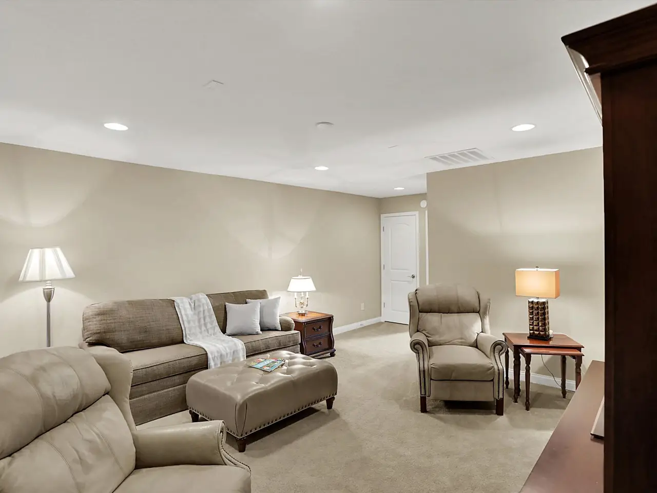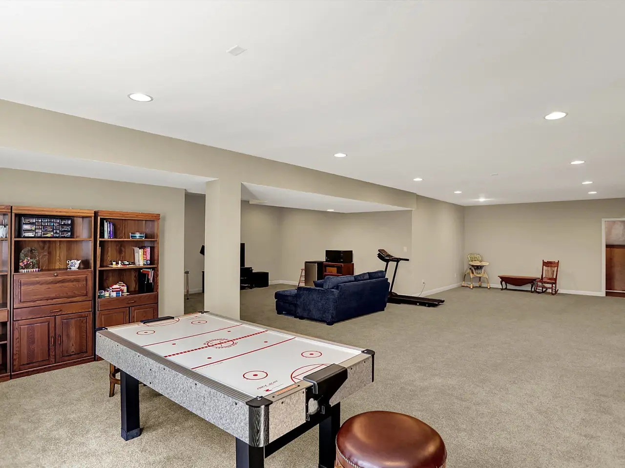 Welcome to this meticulously maintained one-owner home tucked away on a quiet cul-de-sac in the award-winning Carmel School district. This spacious 1 1/2 level ranch features 3 bedrooms, 4 full bathrooms, and a thoughtfully designed layout for modern living. The main level boasts a private master suite with full bath. Upstairs, you'll find two additional bedrooms, a full bath, and a versatile loft-perfect for a playroom, study, or second living space. The finished daylight basement expands your living options with a large recreation area, a full bath, and the potential to add a 4th bedroom. Thoughtful upgrades throughout make this home truly special. All blinds were custom measured and installed, and all main-level drapes are custom made and will remain. Outdoors, the wooded backyard has been professionally cleared and enhanced with a landscape plan by Progressive Landscaping, featuring ornamental trees, shrubs, and perennials. Low-voltage lighting was added to highlight both the front and back of the home from dusk to dawn. The exterior has been updated with RhinoShield paint (2022) offering a transferrable 25-year warranty, and the deck was refinished in 2023 with ceramic paint by Primer Deck Coating, which carries a 10-year transferrable warranty. Enjoy your own private retreat with wooded views, a spacious deck, and plenty of room for outdoor entertaining. A 3-car garage adds convenience and storage, while the home's open and inviting design offers both comfort and flexibility. Don't miss this rare opportunity for a move-in ready home with timeless appeal and carefully curated upgrades in one of Carmel's most desirable neighborhoods!
