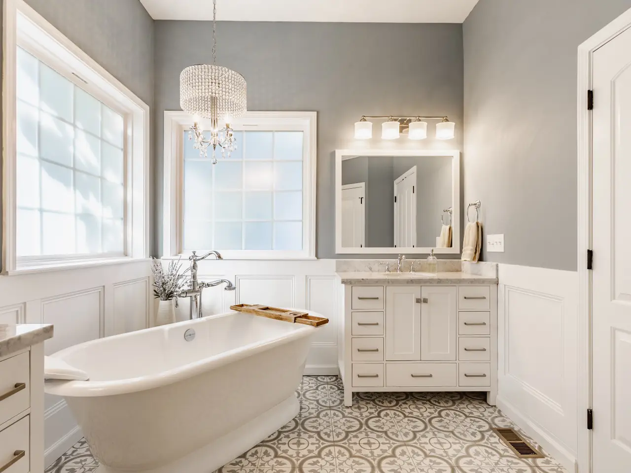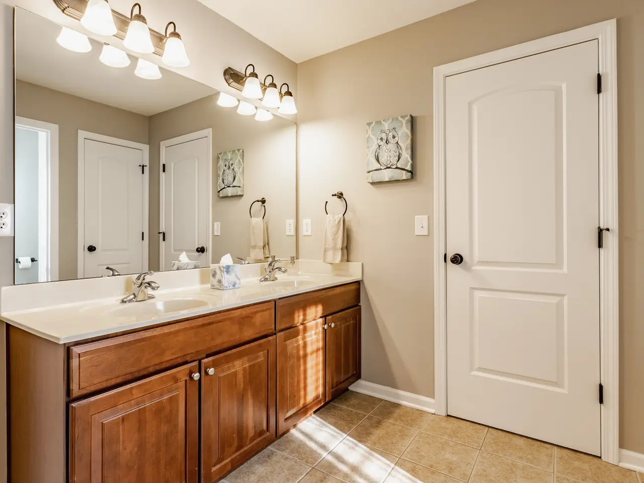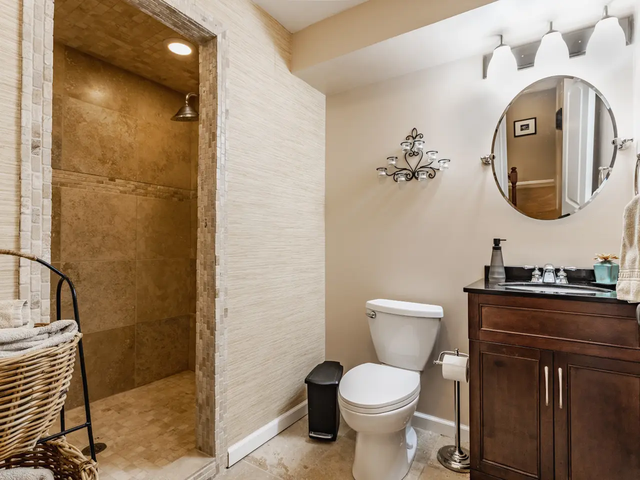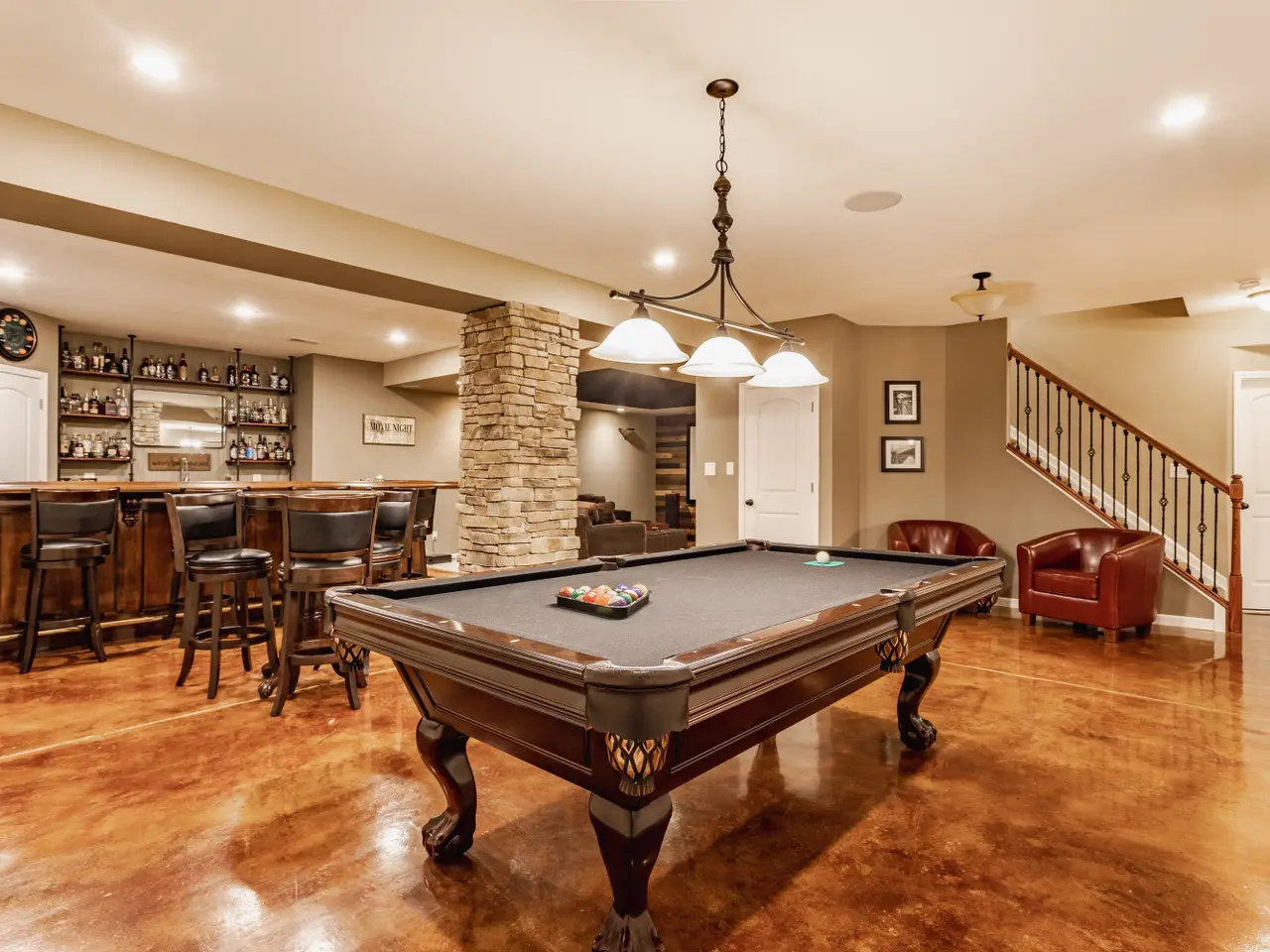 Stunning Carmel home with high-end renovations and water views! Welcome to this beautifully updated brick two-story home in the highly sought-after Carmel Clay Schools district. Designed with comfort and luxury in mind, this home blends timeless craftsmanship with modern upgrades throughout. The main level features solid oak hardwood floors and a primary suite with a completely renovated spa-like bathroom, including dual marble-topped vanities, a freestanding soaking tub, and a spacious walk-in shower. The chef's kitchen, fully renovated down to the studs in 2023, boasts custom Amish-made maple cabinetry, Quartzite countertops, a 48" commercial-grade gas range, under-cabinet lighting, and a custom butler's pantry with beverage station. A walk-in pantry provides abundant storage and organization space. Upstairs, you'll find new carpet, generous bedrooms, a large full bath, and a huge bedroom over the garage with custom built-in bunk beds (XL twins over queens) and an ensuite bathroom with walk-in shower, perfect for guests or a private retreat. The finished basement is an entertainer's dream, offering a custom home theater, 13-foot bar with dishwasher and beverage station, custom wine cellar with tasting area, game room, expansive workout room with rubber flooring & mirrored wall, 6th bedroom with egress window, and a luxury bathroom featuring a walk-in shower (with body jets). Outside, enjoy a pond lot with water views, an expansive patio with custom pergola, and an irrigation system to keep your landscaping lush. The three-car finished garage provides plenty of room for vehicles and storage. Updates include new roof & gutters (2017), upgraded attic insulation (2023), low-E glass windows, Bryant furnace/AC & whole house air filtration system, whole house water filtration system (2025), reverse osmosis system (2025), and new sump pump with backup (2025). This home offers a perfect blend of elegance, functionality & modern living all in a prime location!
