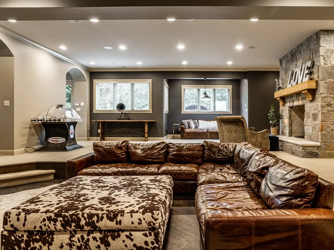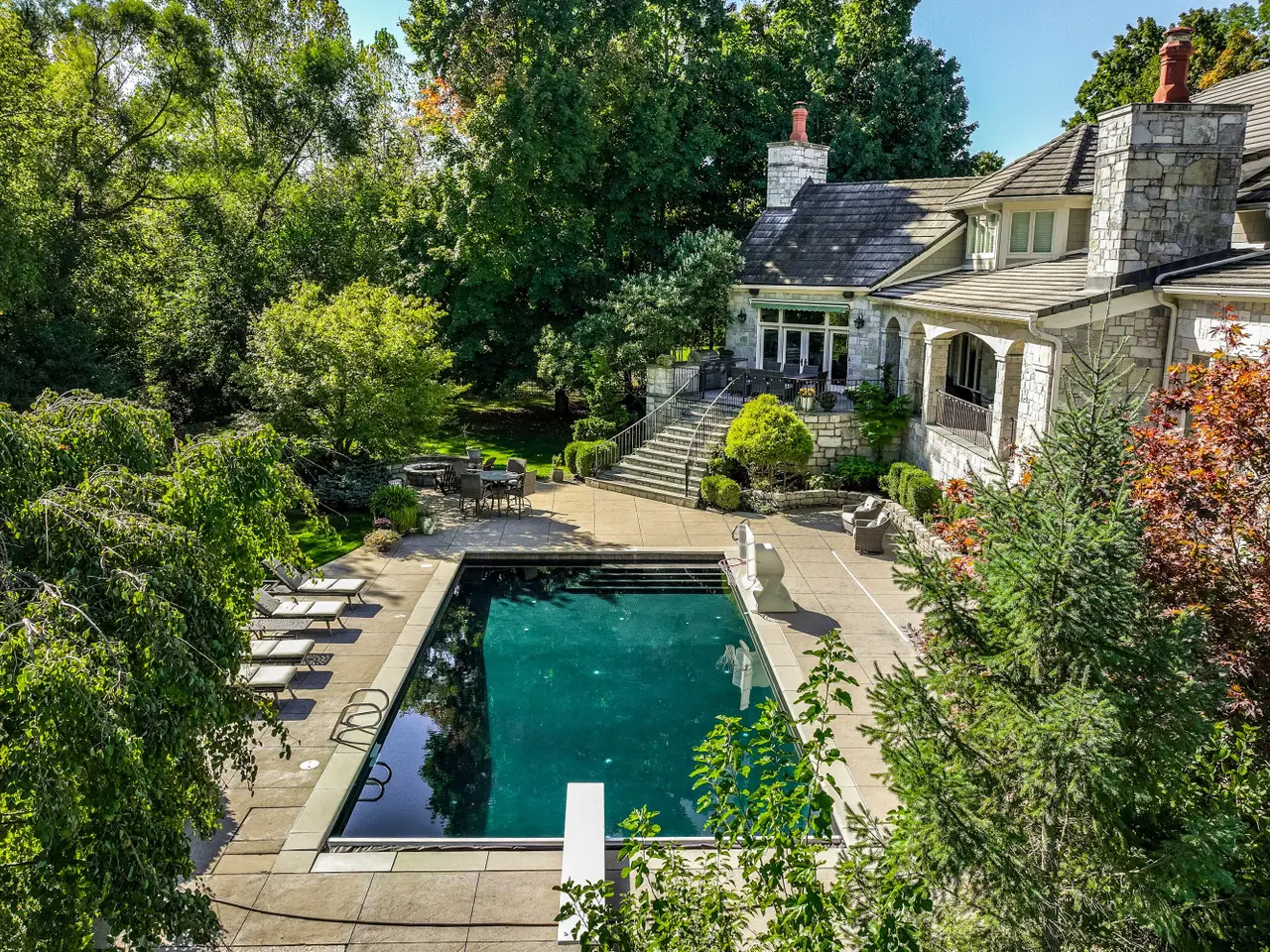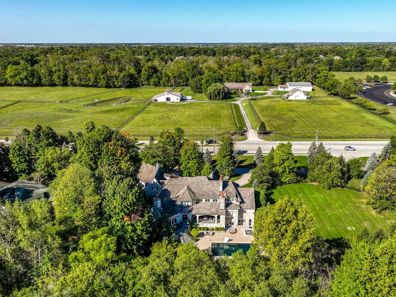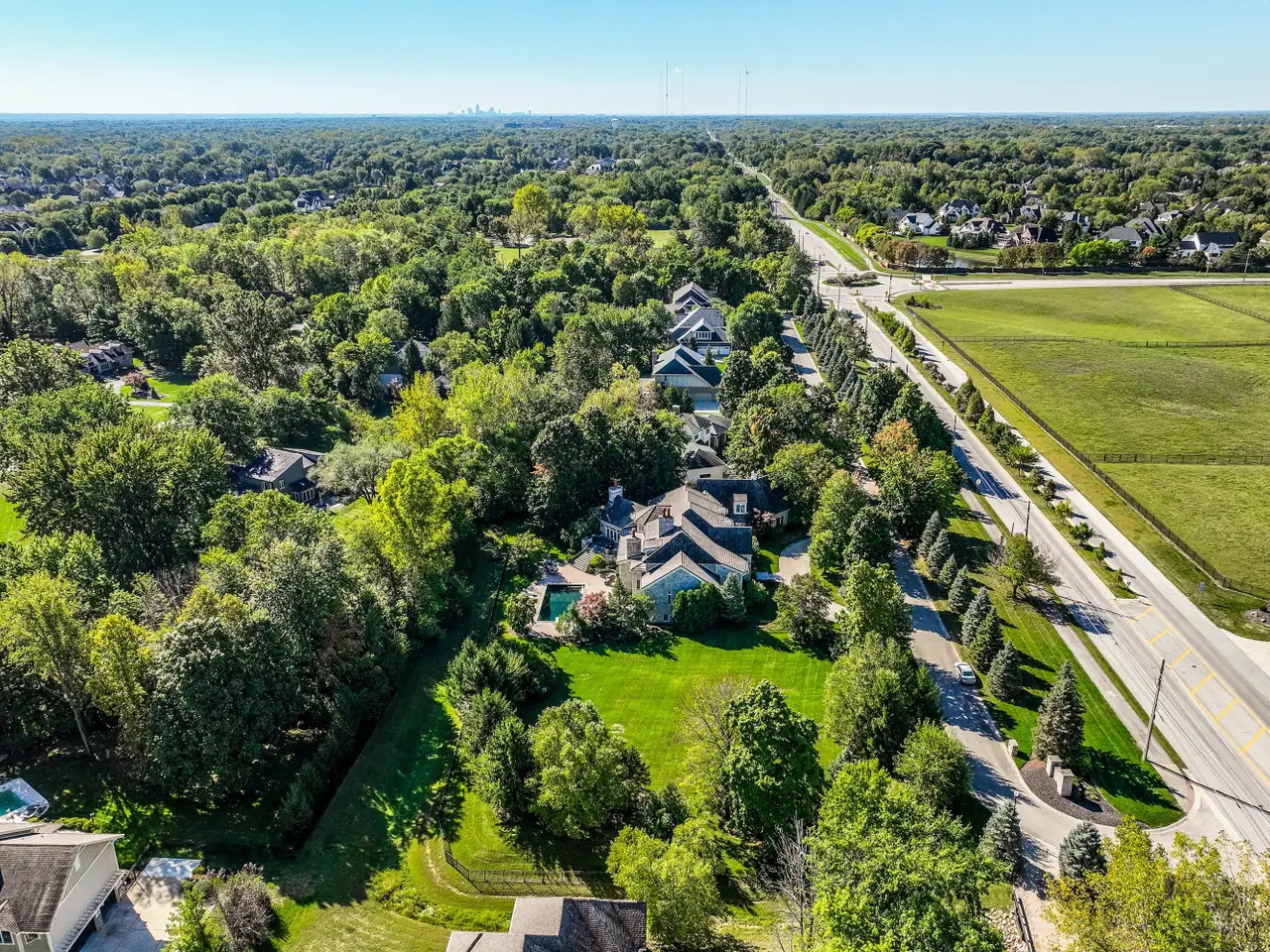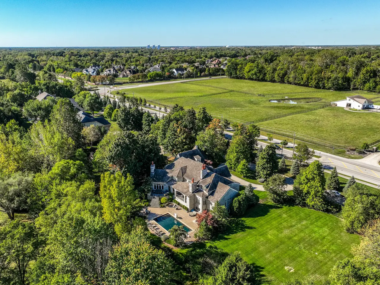 Beautifully situated on a private, lush, 2-acre fenced lot, this stunning estate offers an unparalleled lifestyle. Outdoor living is a true retreat with a 40x20 gunite pool, hot tub, and expansive veranda with fireplace and grilling center, perfect for entertaining or relaxing in privacy. Yard has ample room for tennis court or pickleball court! Inside, guests are greeted by a soaring great room with 20-foot ceiling and a stone fireplace flanked by built-ins. The world-class chef's kitchen is a true centerpiece, featuring Wolf and Sub-Zero appliances, a pizza oven, a Miele coffee center, and an office nook conveniently tucked away behind the kitchen. The adjoining family room showcases an exposed truss ceiling and beautiful stone fireplace, as well as direct access to the outdoor living spaces. The main-floor primary suite is an elegant retreat with a spa-inspired bathroom and veranda access, creating a luxurious and serene sanctuary. Upstairs hosts five spacious bedrooms with four beautifully remodeled bathrooms. The walk-out lower level is an entertainer's paradise offering every amenity imaginable including a theatre area, 24x20 built-in bar with beverage cooler and beer tap, billiard area, wine cellar, double-sided fireplace, exercise room, and home office. Completing this impressive residence is a generous 4-car garage with raised ceiling for half-court basketball.
