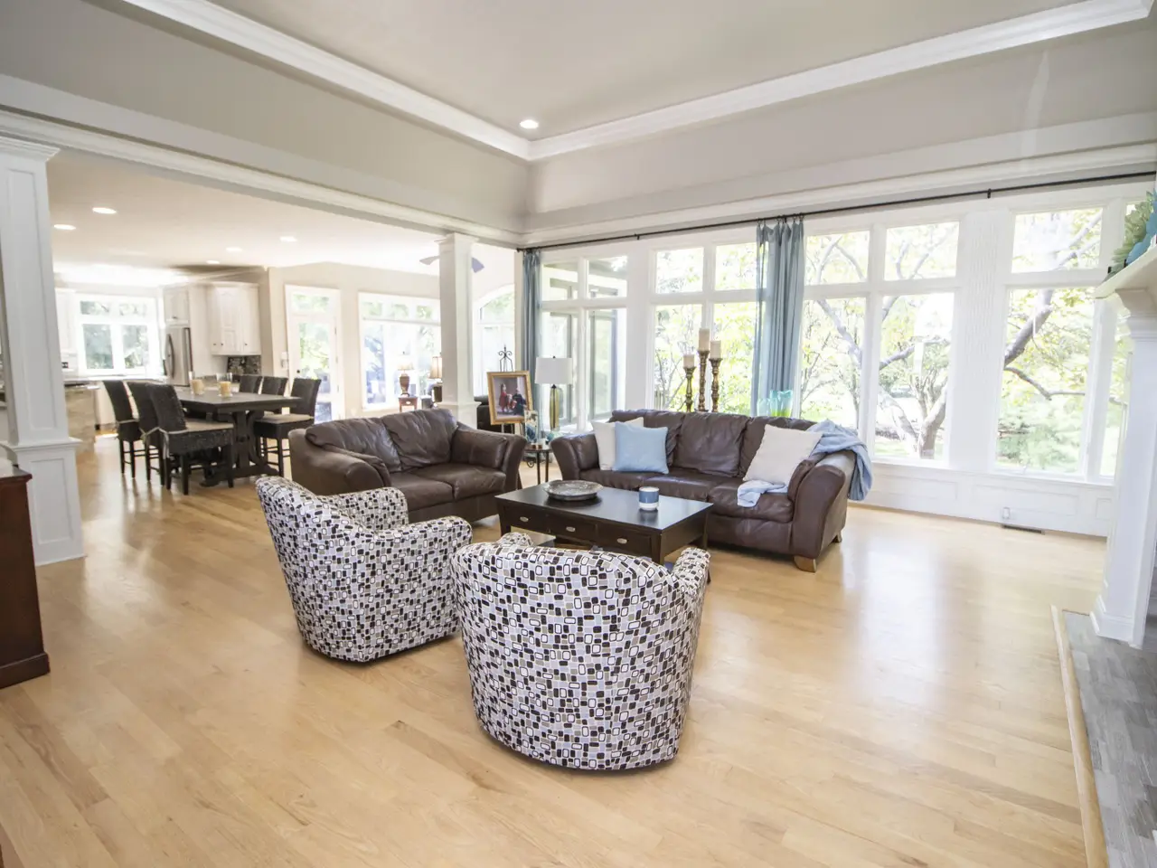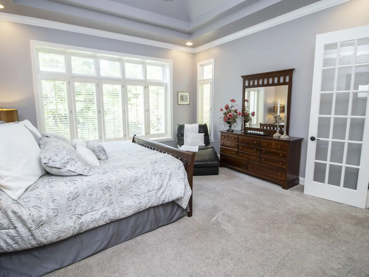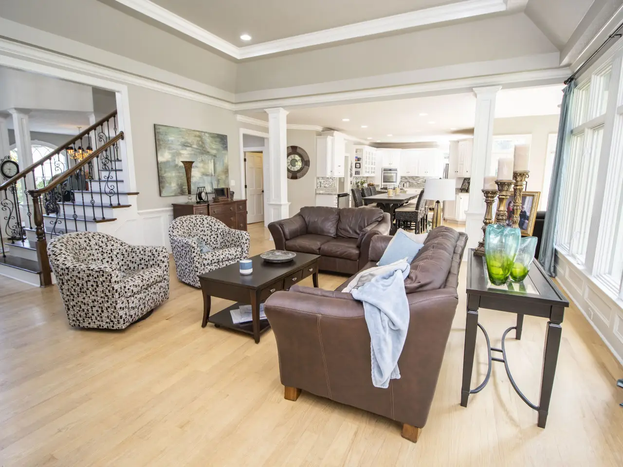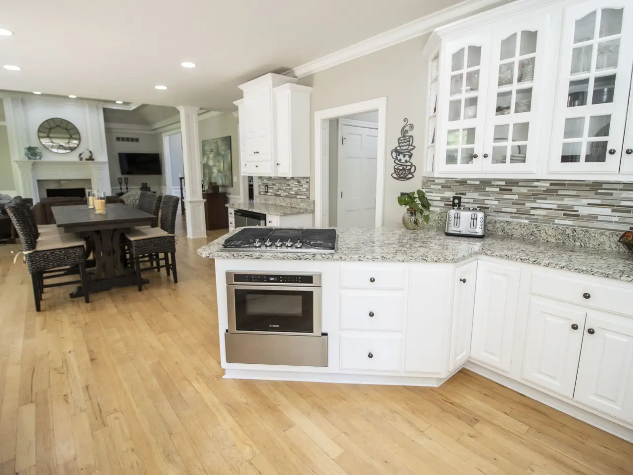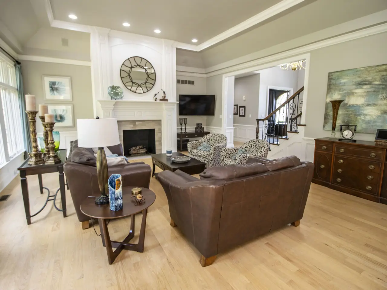 Step into luxury with this stunning four Bedroom, four Full/one Half Bathroom all-brick home located at the end of a quiet cul-de-sac, surrounded by mature trees. This house is an entertainer's dream. The main level features a separate dining room, sunroom, and a spacious great room equipped with a stately gas fireplace. Enjoy outdoor gatherings on the back deck, or head to the basement, which includes a fully equipped wet bar, recreation room, sitting area, dual-sided gas fireplace, and a wine cellar. Well maintained, this home boasts a roof that's only five years old, dual HVAC systems less than 10 years old, with the main level HVAC being just two years old. Don't miss the luxurious main-level primary bedroom suite, complete with separate vanities, a soaker tub, and a spa shower that will make you feel like you're in a resort. All bedrooms feature walk-in closets, while the primary bedroom is exceptionally large. Experience quality character throughout the home, from the stunning painted exterior brick to exquisite interior details such as granite countertops, board and batten walls, plantation shutters, crown molding, and vaulted and tray ceilings. You'll also find built-in shelves, wrought iron spindles, and wide staircases to the upstairs and basement. Natural light floods the home with plenty of windows, including daylight windows in the basement and tall wood casement windows. Upstairs, two of the bedrooms are connected by a Jack and Jill bathroom, and the fourth bedroom has its own private bathroom. Storage is abundant with a three -car side-load garage and a full walk-in attic accessible from the upstairs room.