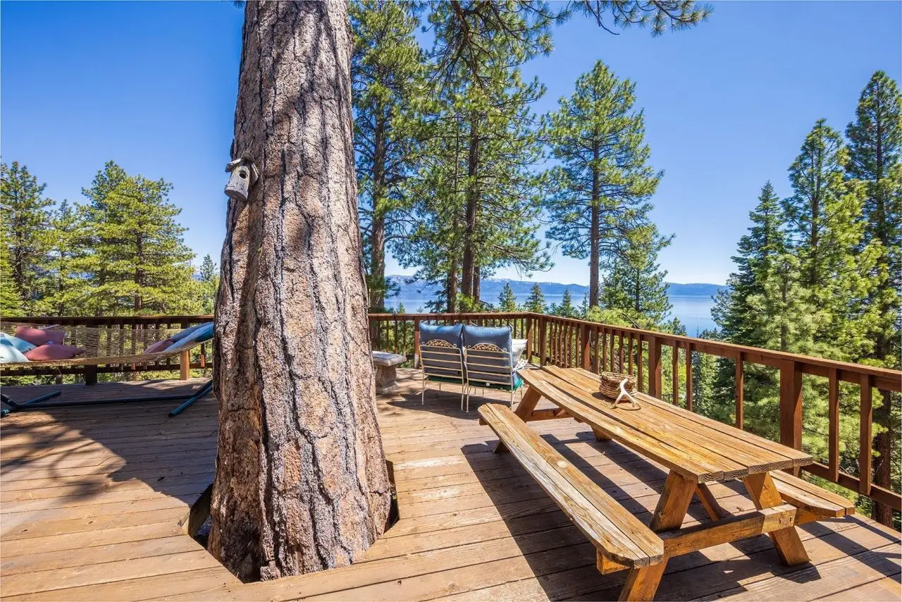 Charming 'Old Tahoe' Style Cabin with Unmatched Lake Views. Perched above the lake in the desirable Cedar Flat neighborhood, this 2-bed, 2-bath cabin is the ultimate Tahoe getaway. With stunning lake views from every room, you'll never lose sight of what brought you here. This 1,037 sq ft home is full of character, featuring a beautiful stone chimney, cozy wood-paneled interiors, and a large deck perfect for soaking in the views. Whether you're curled up by the stone fireplace or sipping your morning coffee outdoors, this cabin delivers the quintessential Tahoe experience. Upstairs, there's a bonus nook - a cozy space perfect for extra sleeping quarters, reading, or a play area. Just a quarter mile away, enjoy access to a well-maintained trail system that connects you to the Tahoe Rim Trail, Dollar Creek multi-use path, Tahoe City, Truckee, and beyond - perfect for hiking, biking, or cross-country skiing. Located in a peaceful, wooded setting with access to the Cedar Flat HOA gated private beach, pier, and buoy field, this is the perfect home base for your mountain lifestyle. Ready to make Tahoe your retreat? This is the one.