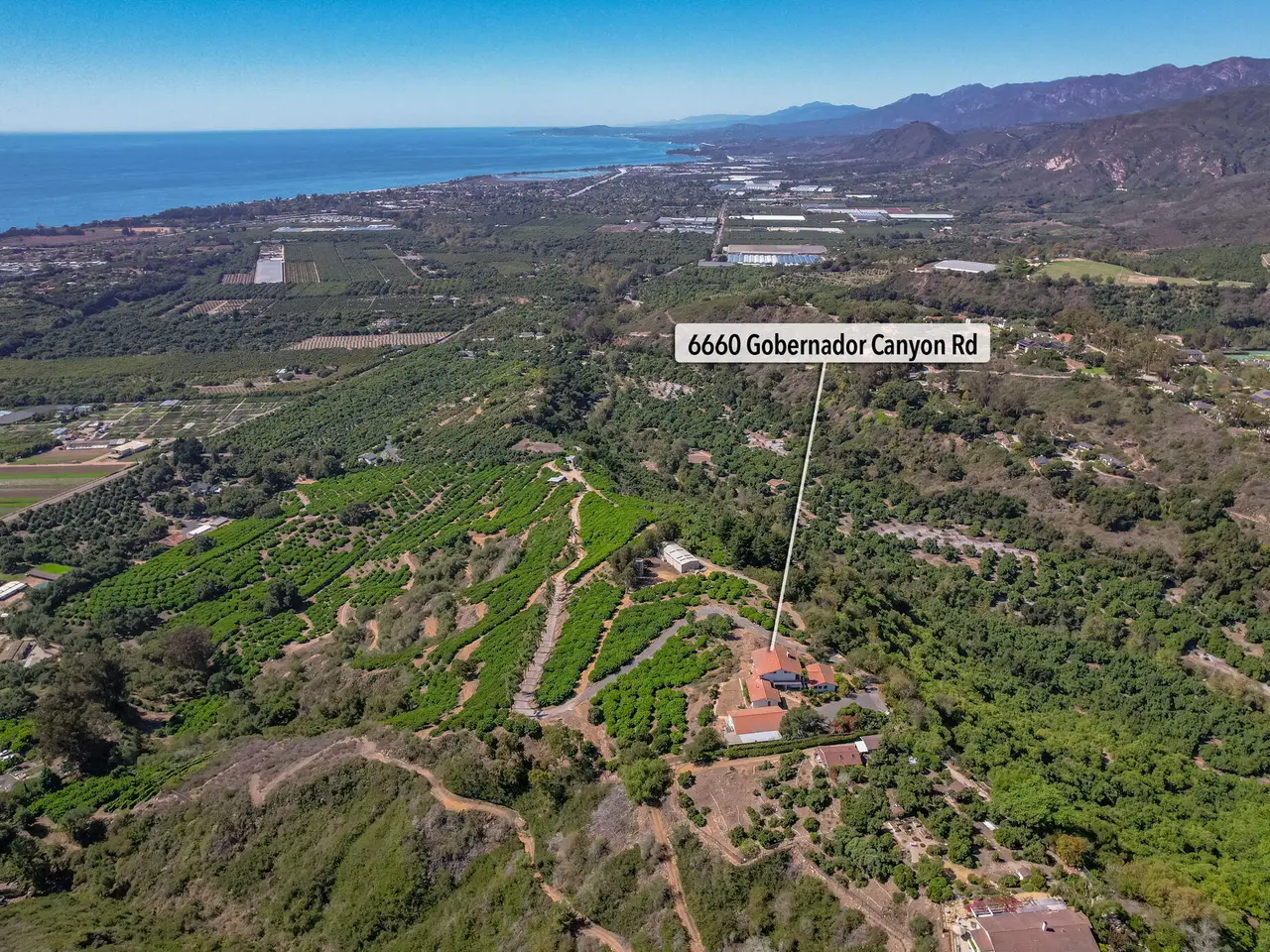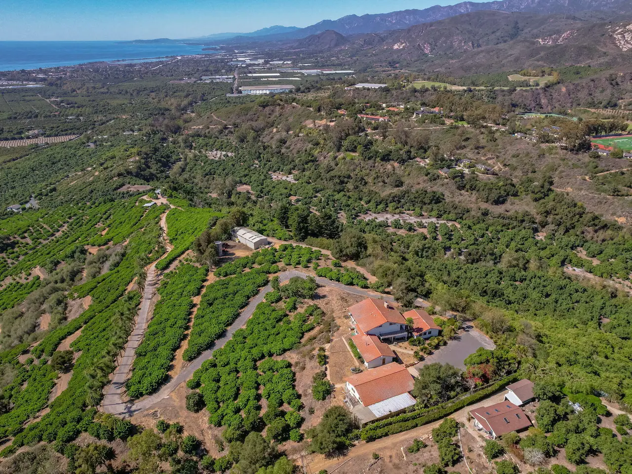 Conveniently located Carpinteria ranch showcasing unobstructed panoramic ocean, island, coastline & mountain views on 28+ acres on 2 parcels (22.5+ & 6 + acres). 1st time offered in 55+ years. This gated & private ranch features approx. 3,000 cherimoya trees, 500 avocado trees & a family orchard. The spacious two-story 5 bed, 3.5 bath home with wraparound patios & decks takes full advantage of the jaw-dropping panoramic vistas. Comfortable as is, or with exciting remodel or reimagining potential. The large motor court has a detached 4+ car garage & large workshop with full bath.The 2nd parcel boasts a large barn perfect for car enthusiasts or hobbies.Currently in an ''Ag preserve''. Come experience the peacefulness, privacy, beauty & lifestyle this exceptional ranch/family compound offers