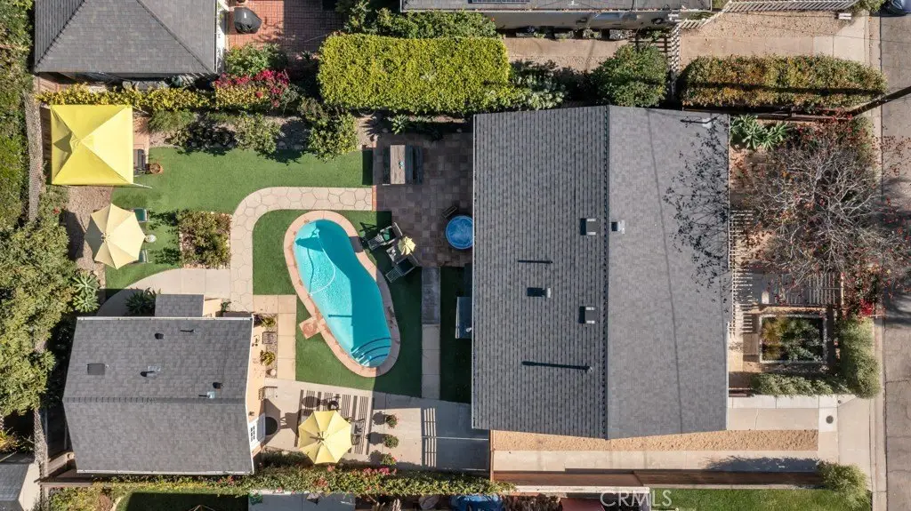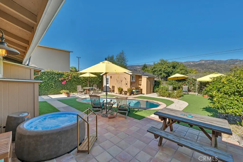 REMODELED TO PERFECTION AND BRAND NEW SECOND COTTAGE (ADU), COMPLETED 2023. TWO COTTAGES ON ONE LOT, 1387 AND 1389 VALLECITO PLACE (two legal addresses) located in the prime historic Vallecito enclave of custom cottages in the scenic Carpinteria by the sea. One mile walk to sandy beach/village, half mile to the many new shops and restaurants. BEACH LIVING with near perfect central coastal climate. Gated and walled mini-compound RARE JEWEL with MOUNTAIN VIEWS and NEW CUSTOM HEATED POOL (COMPLETED 2023) and separate spa. Front house is a custom architectural 2+1 cottage with cathedral beamed ceilings, European black oak hardwood plank floors, recessed lighting, gourmet center island kitchen with honed marble counters, Dutch door, high end designer fixtures/finishes, santori wood working cabinetry with Carrera marble tops, third bedroom and second bath is in the rear BRAND NEW cottage (ADU, completed 2023), also includes a second kitchenette and laundry area for a total of 1, 240 sq ft for front and rear cottages, you could fence off the second house for privacy if so desired. Manicured landscape-architect backyard with the new pool, hot tub, artificial turf, fruit trees, two fountains, TOTAL BEACH SPA-LIKE ambiance to go with the glorious location and climate. Outdoor hot water shower to rinse off sand from the beach, new roof, rent out the back house and live in the front house, QUIET street, great investment opportunity, escape to gorgeous Carpinteria by the sea. All appliances included along with hot tub, fountains and washer/dryer.