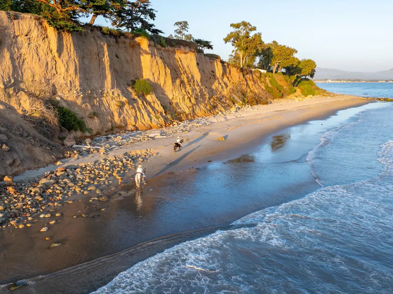 Rancho Carinoso is a one-of-a-kind, 4.2. +/- -acre oceanfront estate on Padaro Lane, offering about an acre of private beach and direct access to the iconic Loon Point surf break. Zoned for 9 horses with a private equestrian trail to the sand, this is one of the only properties on the coast where you can ride freely at any hour. Enjoy rare amenities: dock a yacht offshore and tender in, launch jet skis and kayaks from your backyard, or drive ATVs down to the beach cabana. The single-level 3BD/3.5BA home is bright and modern, with a 1,000-sq-ft detached garage and multiple build-ready sites for a pool, sport court, or guest house. Channel Islands views, avocado and citrus trees, private hiking trail, and full drip irrigation enhance the landscape. Minutes to the Rosewood Miramar, Santa Barbara Polo Club, and private airport. The last true beachfront ranch estate in Southern California--this is legacy property, unmatched.