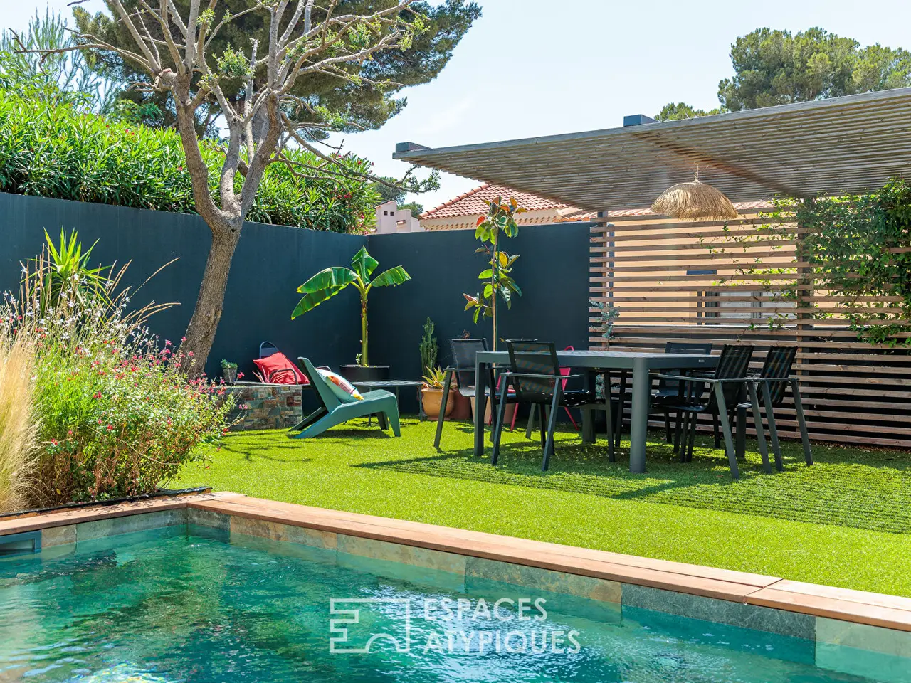 Elegance and refinement - Renovated villa in Carry-le-Rouet Ideally located in a sought-after and peaceful residential area of Carry-Le-Rouet, this elegant 1950s house has been reinvented with contemporary refinement. A complete renovation has preserved the authentic charm while incorporating modern, high-end features. Upon entering, the vast living room, bathed in natural light, reveals itself as a welcoming and welcoming space, enhanced by quality materials and a modern fireplace. The kitchen, adjoining the living room, has been ingeniously designed. Its sleek design, high-end appliances, and long worktop, accentuated by a subtly patterned splashback wall, make it both functional and aesthetically pleasing. The property offers four bedrooms, each designed for optimal comfort and a soothing atmosphere, guaranteeing privacy and serenity. A space flows naturally between the two downstairs bedrooms. Outside, a carefully landscaped garden features a swimming pool surrounded by a large exotic wood terrace and a shaded dining area. This intimate place with a serene atmosphere creates a true haven of peace. 7 minutes' walk from the sea and shops and close to the motorways. ENERGY CLASS: B CLIMATE CLASS: B Estimated average annual energy expenditure for standard use, based on 2021 energy prices: between 1100 and 1550 euros REF. 11616 Additional information * 6 rooms * 4 bedrooms * 2 shower rooms * 1 floor in the building * Outdoor space : 396 SQM * Parking : 3 parking spaces * Property tax : 1 006 € Energy Performance Certificate Primary energy consumption b : 103 kWh/m2.year High performance housing