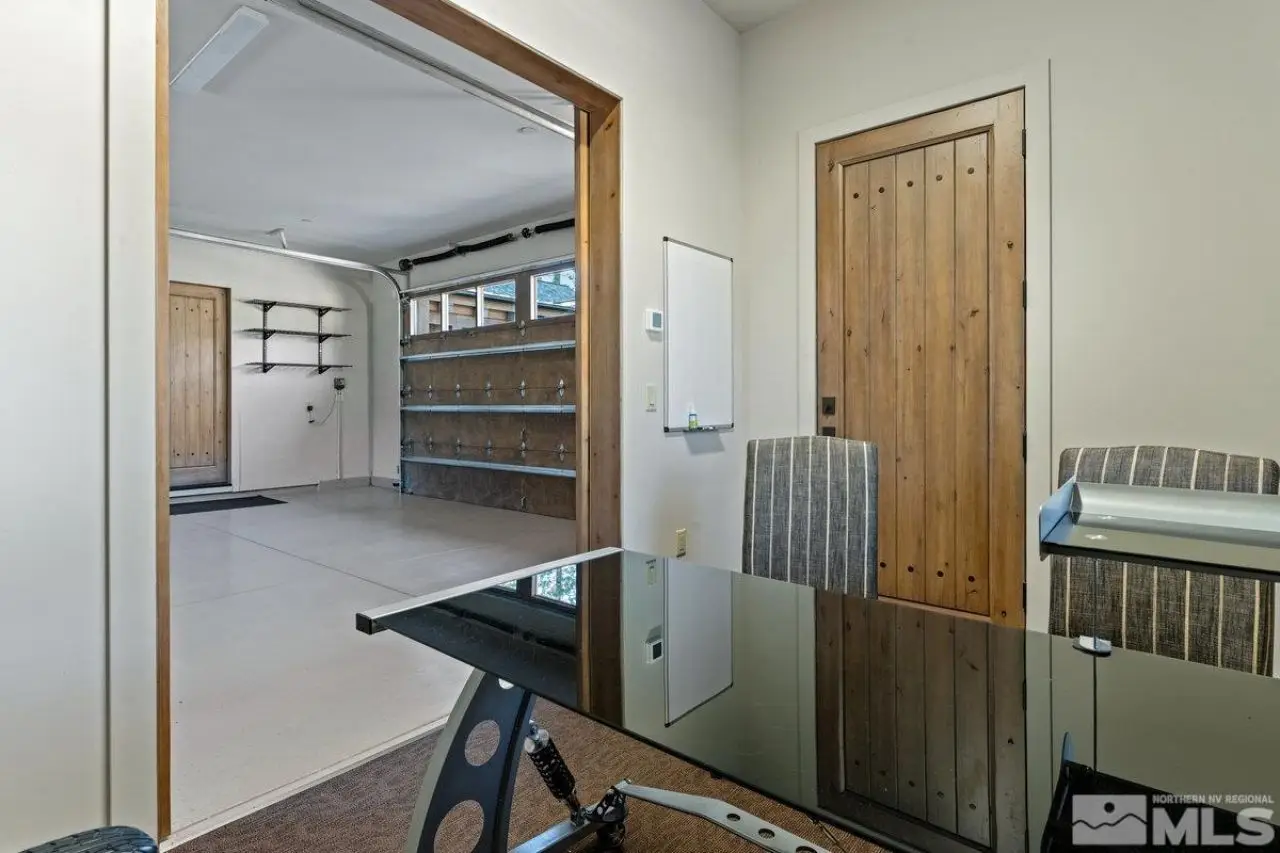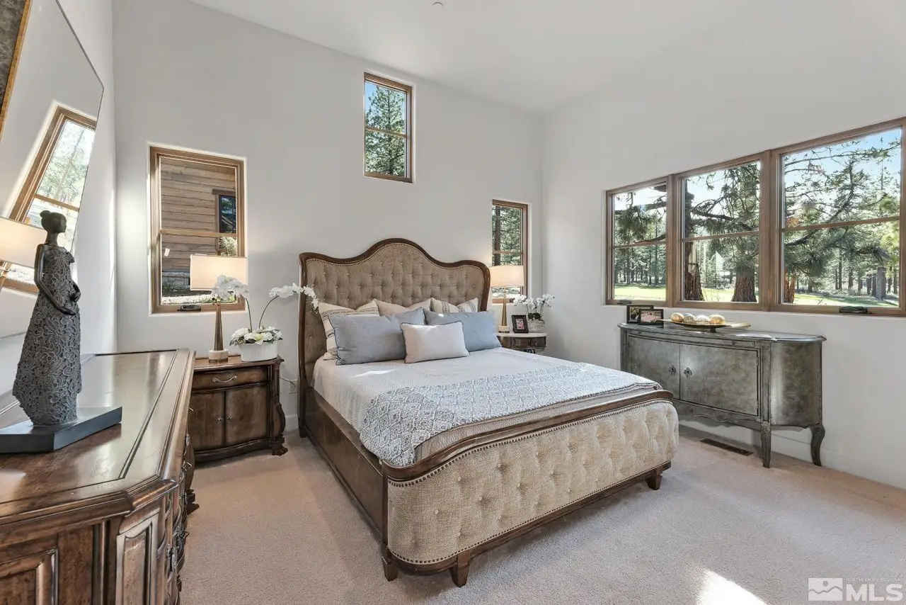 Immerse yourself in the tranquility of nature as you breathe in the crisp mountain air, serenade your senses with the melodies of chirping birds, and witness the graceful deer welcoming you to Clear Creek Tahoe - a haven where natural beauty meets luxury. Nestled amidst towering pines, this charming mountain cottage has sweeping views of the third fairway, as well as the lustrous green on Nevada's premier private golf course. Designed as a single-story custom retreat, this home offers a warm, inviting atmosphere and an open floor plan perfect for hosting gatherings with loved ones or enjoying sunset views from the expansive covered deck. The heart of the home, the Great Room, seamlessly integrates a spacious dining area and a well-appointed kitchen. A towering stone gas fireplace anchors the room, reaching up to a tongue & groove wooden ceiling adorned with elegant beams. The kitchen features a generous island, exquisite cabinetry, a wine refrigerator, and even a Wi-Fi-enabled oven for modern convenience. Equipped with a Lutron Smart Home system, the residence allows effortless control of lighting and HVAC settings via your smartphone. A dedicated office space, complete with barn doors and shutters for privacy and its own HVAC zone, makes remote work a pleasure. The grand master suite boasts a stunning granite fireplace, a private deck perfect for morning coffee amidst vibrant scenery, and a luxurious bathroom offering a garden tub, steam shower, heated floors, and a spacious walk-in closet. Two additional large en-suite bedrooms on the south side of the home offer privacy and panoramic views of the golf course, completing this exceptional retreat. The home has been lovingly cared for and maintained while the owners were building a larger home within the community. The exterior was re-stained in 2023. Clear Creek Tahoe is more than a community?it's a lifestyle. Anchored by Nevada's #1 ranked residential golf course, it offers an unparalleled blend of mountain and lake amenities. The private Lake & Ski House provides 180 feet of sandy beach, water sports, and a shuttle service to Heavenly Ski Resort. Summit Camp is a hub for recreation with a pool, water slide, hot tub, tennis, pickleball, and bocce. At the heart of it all, the spacious Clubhouse features a year-round wellness and fitness center, ensuring adventure and relaxation in every season.