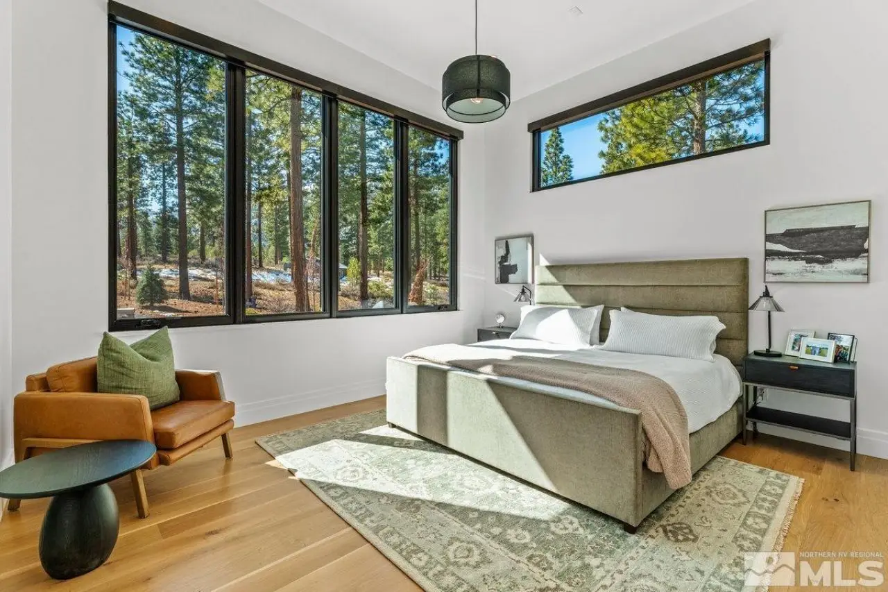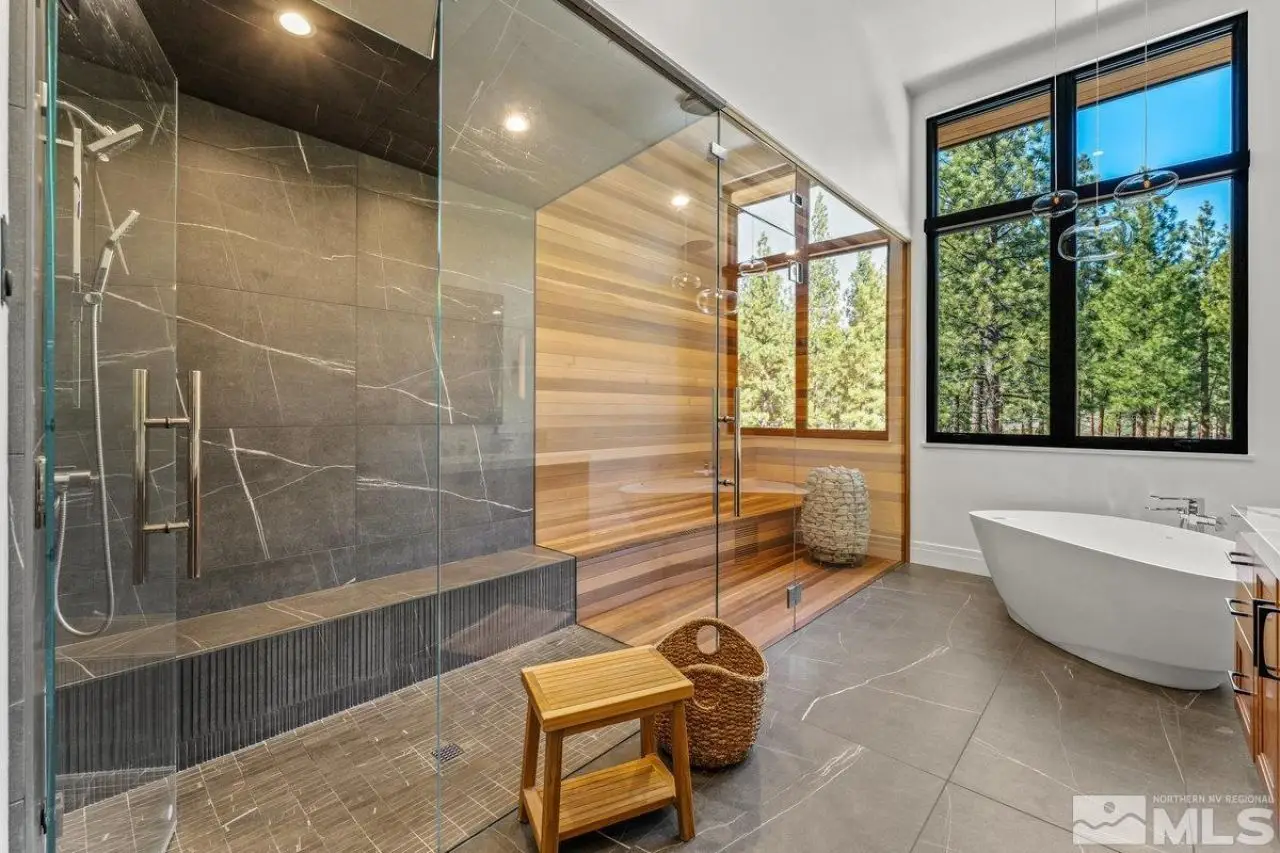 Modern luxury, nestled in mountain serenity. Imagine waking up to crisp mountain air, with the Sierra Mountain range stretching across the horizon and the Clear Creek Tahoe Golf Course just outside your windows. This isn't just a home; it's a lifestyle. Nestled in the private gated community of Clear Creek Tahoe, this Mountain Modern estate invites you to embrace nature's serenity and beauty. Set on over 1.5 acres of land, the home is surrounded by towering pines, offering seclusion and immersion in the outdoors. Inside, the spacious, open-plan design blends modern sophistication with mountain charm. Large, towering windows flood the rooms with light, creating an airy space perfect for relaxing or entertaining. Whether you're unwinding in the living room, preparing a meal in the gourmet kitchen, or hosting a dinner party, sweeping views of the lush greenery and Clear Creek Tahoe Golf Course's 7th fairway surround you. For outdoor enthusiasts, the private gym and sauna provide the perfect spot to recharge after hiking, skiing, or biking. The expansive backyard offers a fire pit, outdoor fireplace, and spa?ideal for enjoying the mountains under the stars or reflecting in peaceful solitude. The home's thoughtful design includes a cozy den and office, ideal for remote work or quiet moments. Every detail reflects a perfect balance of luxury and nature, offering the ideal backdrop for an active, elegant life. Here, each day invites you to explore, unwind, and live in harmony with the mountains. Clear Creek Tahoe is more than a community?it's a lifestyle. Anchored by Nevada's #1 ranked residential golf course, it offers an unparalleled blend of mountain and lake amenities. The private Lake & Ski House provides 180 feet of sandy beach, water sports, and shuttle service to Heavenly Ski Resort. Summit Camp is a hub for recreation with a pool, water slide, hot tub, tennis, pickleball, and bocce. At the heart of it all, the spacious Clubhouse features a year-round wellness and fitness center, ensuring adventure and relaxation in every season.