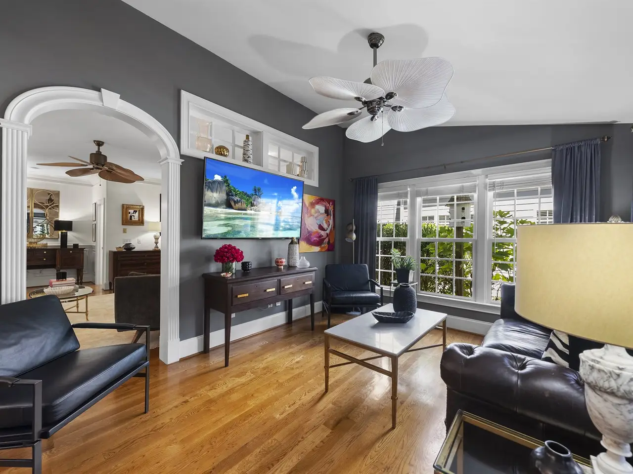 Imagine a custom-built home where every detail feels intentional crafted with care and refined by timeless designer taste. This rare opportunity in Village Square at Amberly offers designer luxury seamlessly paired with the everyday ease of a walkable, amenity-rich community. Step inside and you'll find soaring ceilings, custom millwork, and curated finishes that elevate each space. The kitchen is a statement in itself, with marble counters and backsplash, a Viking range, and double ovens where beauty meets performance. It's more than a kitchen. It's a showpiece. Every room reflects a balance of sophistication and comfort, creating spaces equally suited for lively gatherings and quiet family moments. Outdoors, the home feels like a private retreat, with a brick courtyard and secret gardens that create a sense of secluded charm rarely found in a neighborhood setting. A screened porch extends your living space into the open air year-round. Beyond your door, Village Square at Amberly delivers the lifestyle you crave morning coffee, dining out, pools, fitness, playgrounds, even a dog park all just a short stroll away. Designer homes that offer both privacy and community are rare. This one is waiting for you.