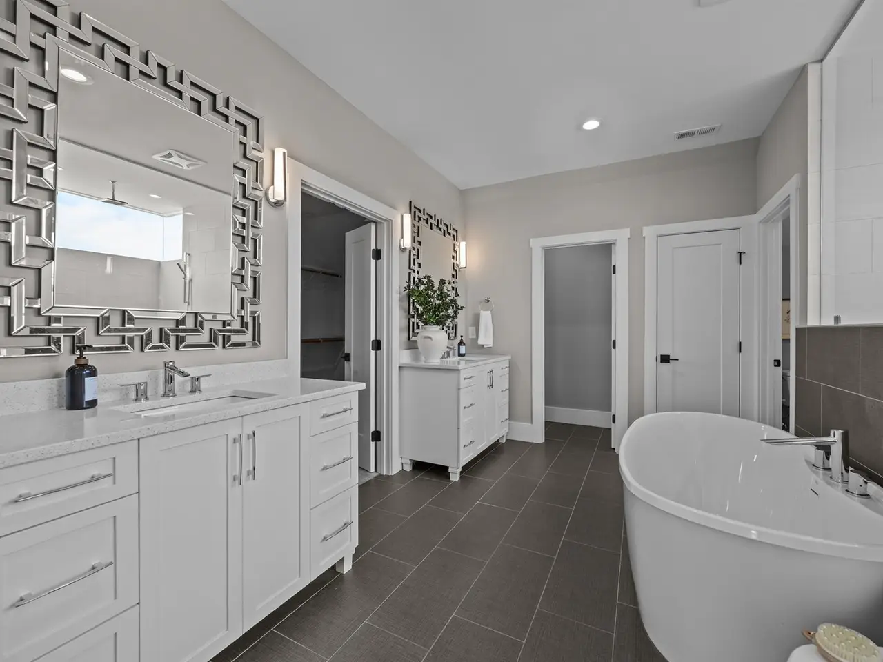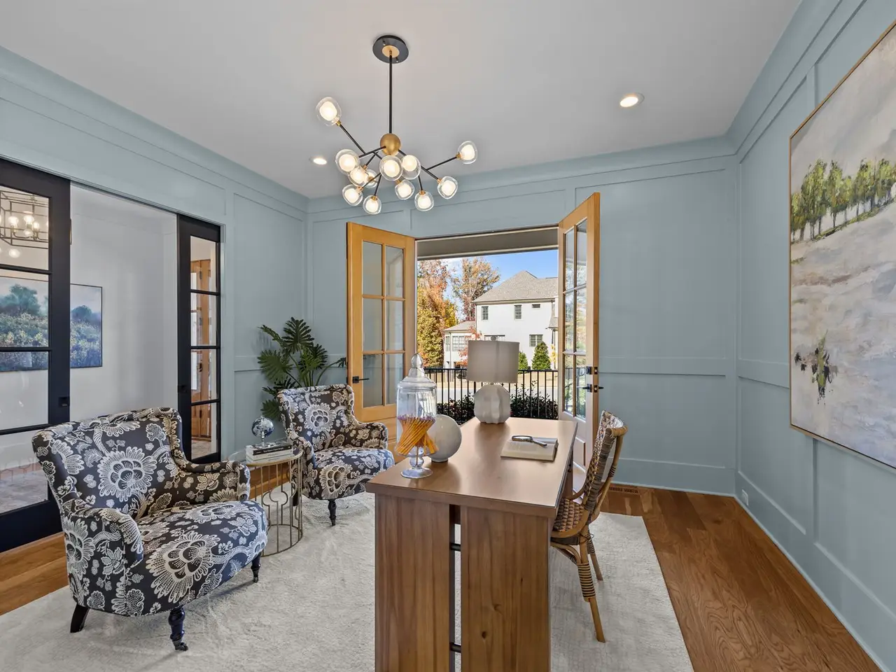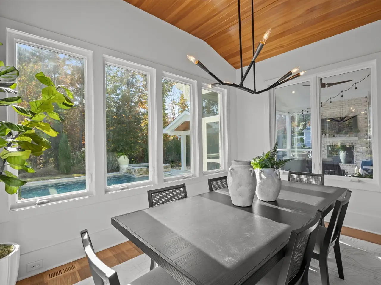 Step beyond the ordinary into a residence that embodies sophistication, craftsmanship, and character. Perfectly positioned on nearly half an acre in the highly sought-after Montvale community, this custom-built home impresses from the moment you arrive. A welcoming front porch leads to an expansive foyer, setting the stage for the home's thoughtful design. The private home office, ideal for today's work-from-home lifestyle, features glass pocket doors for quiet focus and French doors opening onto the porch, filling the space with natural light. The designer kitchen is a true showpiece, showcasing GE Caf? appliances, a walk-in pantry, lighted upper cabinetry, and a butler's pantry complete with a beverage refrigerator. The oversized center island with a single-bowl sink anchors the space, offering a perfect blend of function and style.The open-concept family room is the heart of the home, centered around a gas fireplace and stackable sliding doors that seamlessly extend the living area onto the screened porch?perfect for effortless indoor-outdoor entertaining. A luxurious first-floor guest suite with a spa-inspired bath provides the ideal retreat for visitors or a second primary option. Upstairs, each bedroom boasts a private ensuite, offering comfort and privacy for all. The primary suite is a serene sanctuary tucked away from it all, featuring a zero-entry shower, freestanding soaking tub, dual vanities, dual water closets, and a custom-designed walk-in closet of grand proportions. The upper level also includes a fifth bedroom or exercise room with an attached full bath, adding flexibility to the floor plan. Outdoors, a resort-style in-ground pool framed by lush green space creates a tranquil, private escape for year-round enjoyment. From its refined finishes to its exceptional layout, every detail of this home has been curated for luxury living. Experience the difference the moment you step inside?this Montvale masterpiece is truly one of a kind.