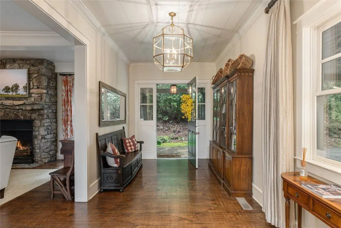 Nestled in the coveted Chattooga Club, one of the most sought-after communities, this delightful partially furnished home (with few exceptions) combines charm, comfort, and stunning mountain views. Ideally located five minutes from the vibrant town of Cashiers - with its shops, restaurants, brewery, and picturesque Village Green - this property offers the perfect blend of privacy and convenience. Designed with spaciousness and comfort in mind, this home boasts multiple ensuite bedrooms, ensuring privacy and relaxation for family and guests. The inviting great room features soaring ceilings, a beautiful stone fireplace with a gas starter, and an open-concept design that flows seamlessly into the dining area - ideal for intimate gatherings and larger entertaining. The galley kitchen, a dream for the home chef, is complemented by a covered porch with its own wood-burning fireplace, perfect for year-round enjoyment. The primary suite is a true sanctuary, offering a private sitting area with built-in bookcases, a luxurious bathroom with a garden tub, a separate shower, dual vanities, and a spacious walk-in closet. Upstairs, additional sitting areas, a media room/study, and generously sized guest rooms with their own ensuite bathrooms ensure comfort and privacy for all. Step outside to take in the breathtaking views of Rock Mountain and Chimney Top, two of Cashiers' most iconic vistas. The expansive deck and covered porch provide the ideal setting to unwind and savor the beauty of the home's surroundings. The property is beautifully landscaped, with a moss garden adding to the serene and tranquil atmosphere. Additional features include a circular driveway, a porte cochere, ample guest parking, and a generator for added peace of mind. The home's cedar shake siding and stone accents create a welcoming curb appeal, while the interior boasts hardwood floors, generous closet space, and plenty of storage. As an invited member of Chattooga Club, enjoy a wealth of amenities, including fine dining, croquet, tennis, pickleball, bocce ball, a putting green, spa treatments, and a heated saline pool with a covered pavilion. Families can take advantage of children's play areas, and members can relax at Mac's View scenic overlook and the Victory residential garden. This exceptional home offers the perfect combination of privacy, space, and mountain living - minutes from Cashiers.