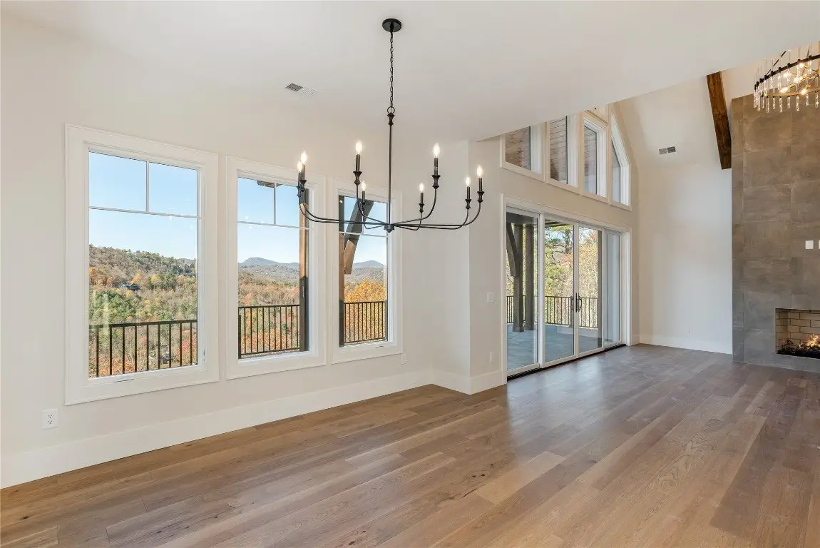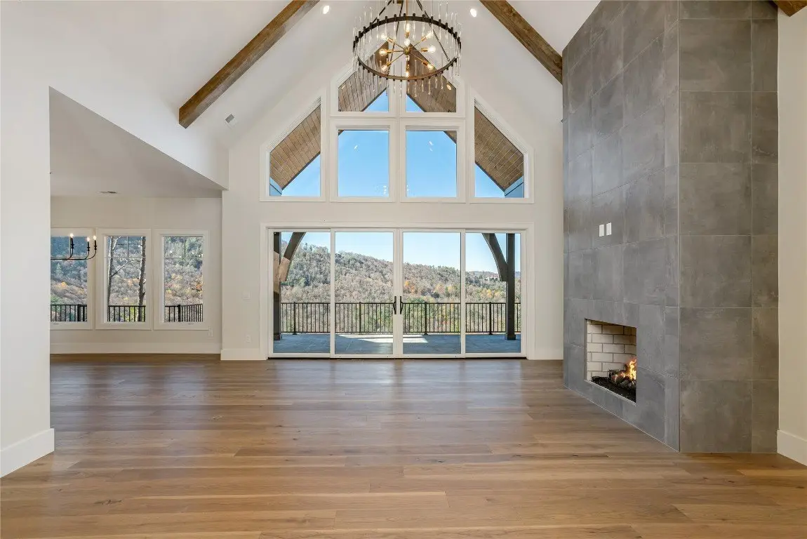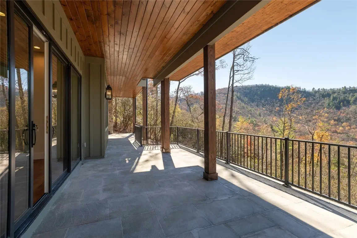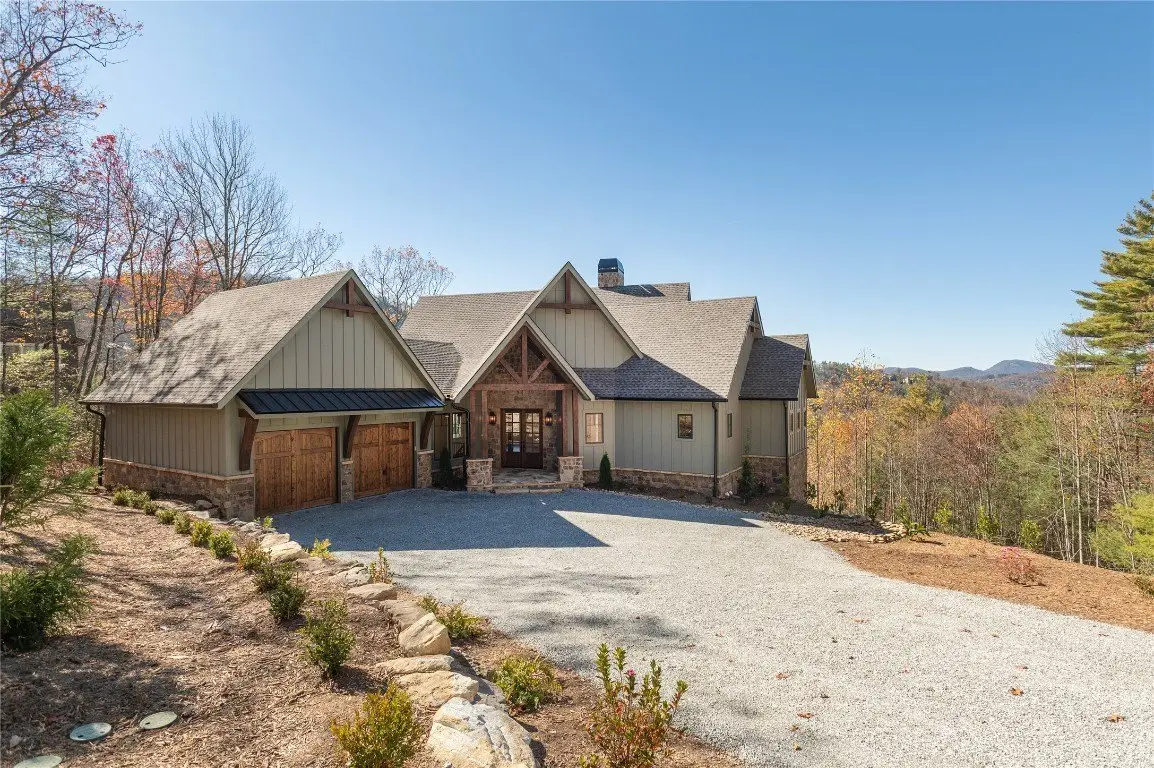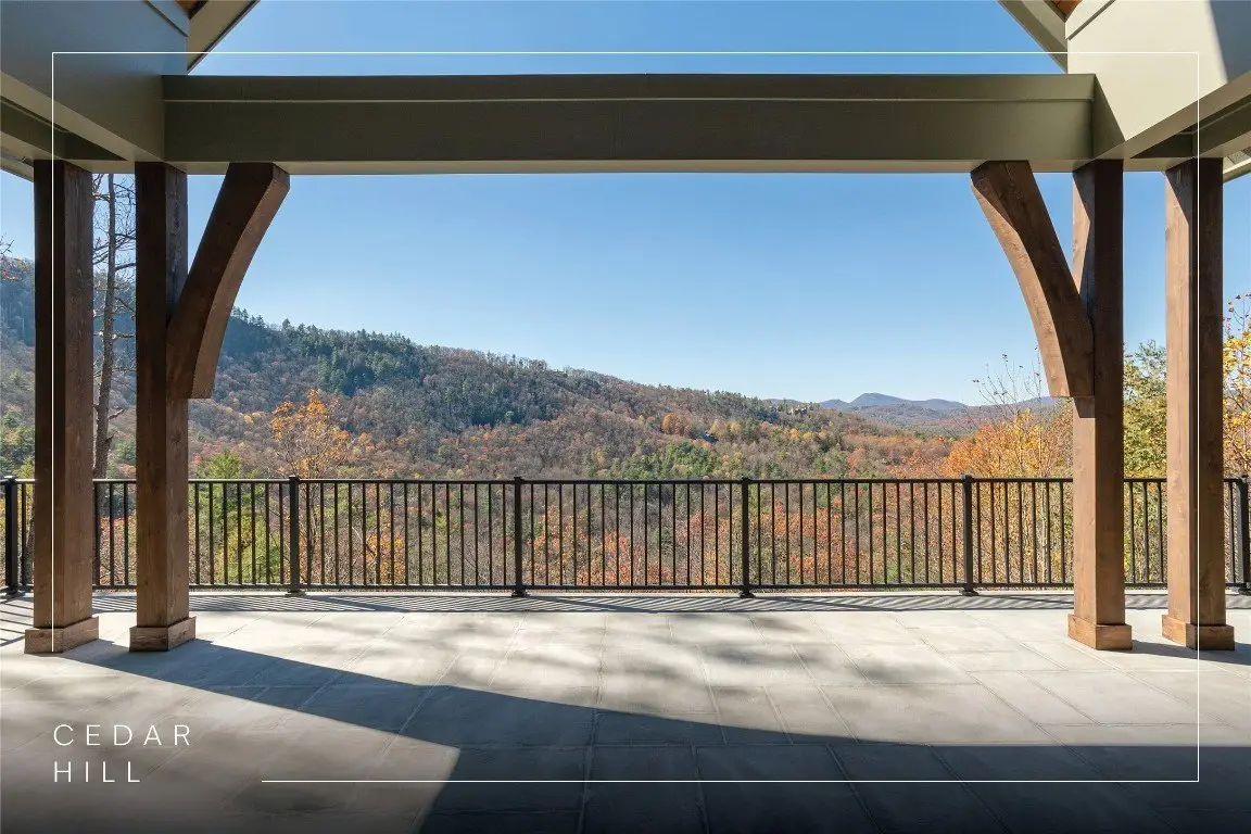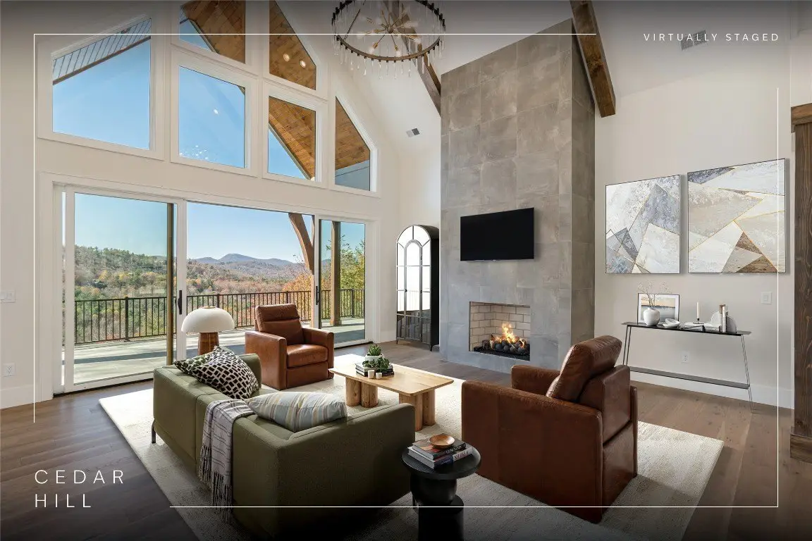 Discover a newly completed, custom-designed residence in Cedar Hill - one of the Highlands-Cashiers Plateau's most sought-after gated communities - that offers refined mountain living at its finest. Perfectly positioned just minutes from both Cashiers and Sapphire, this move-in-ready home combines sophisticated design, exceptional craftsmanship, and a seamless floor plan tailored for modern comfort and entertaining. Clean architectural lines, curated landscaping, and a welcoming mountain aesthetic set the stage for what awaits inside. Expansive windows and glass doors fill the interiors with natural light, framing breathtaking long-range views across the valley, with Big Sheepcliff Mountain rising as a dramatic backdrop. The main level features an open-concept living area with soaring vaulted ceilings, a striking fireplace, and a chef's kitchen with premium finishes and appliances. Two distinct outdoor living spaces extend this level - a covered porch with a wood-burning fireplace for year-round enjoyment, and a covered veranda perfect for relaxing in the cool mountain air. The primary suite on the main level offers a serene retreat, thoughtfully designed for privacy and comfort. The lower level includes a spacious family room with a wet bar, three guest bedrooms, and a bonus room. Multiple covered decks, all featuring stone floors, including one with an additional wood-burning fireplace, create a true indoor-outdoor lifestyle. A two-car garage enhances both the home's architectural appeal and everyday functionality. Blending timeless mountain design with modern luxury, this Cedar Hill retreat embodies mountain living at its finest. Virtually staged photos are included to showcase the potential of the property.