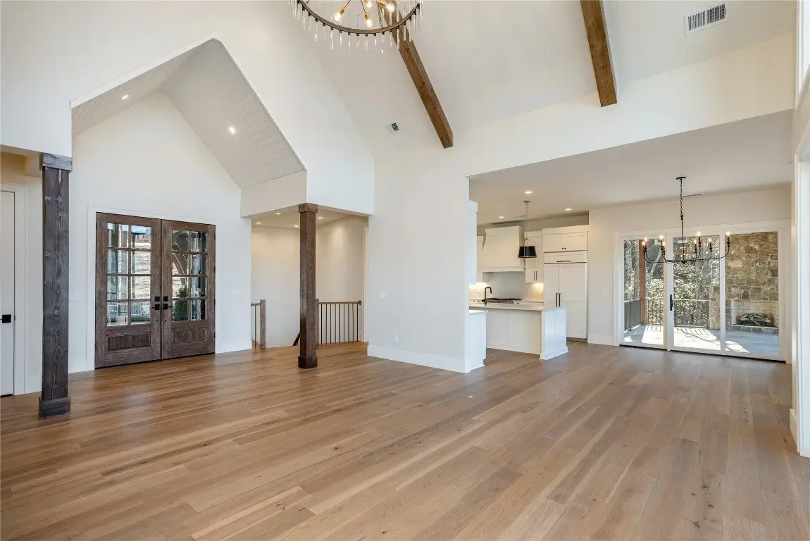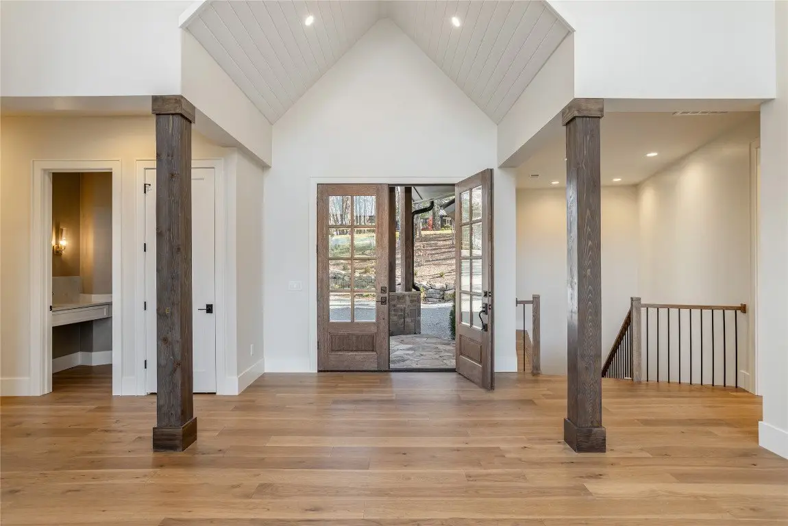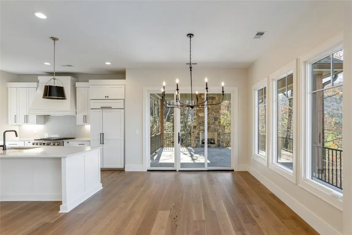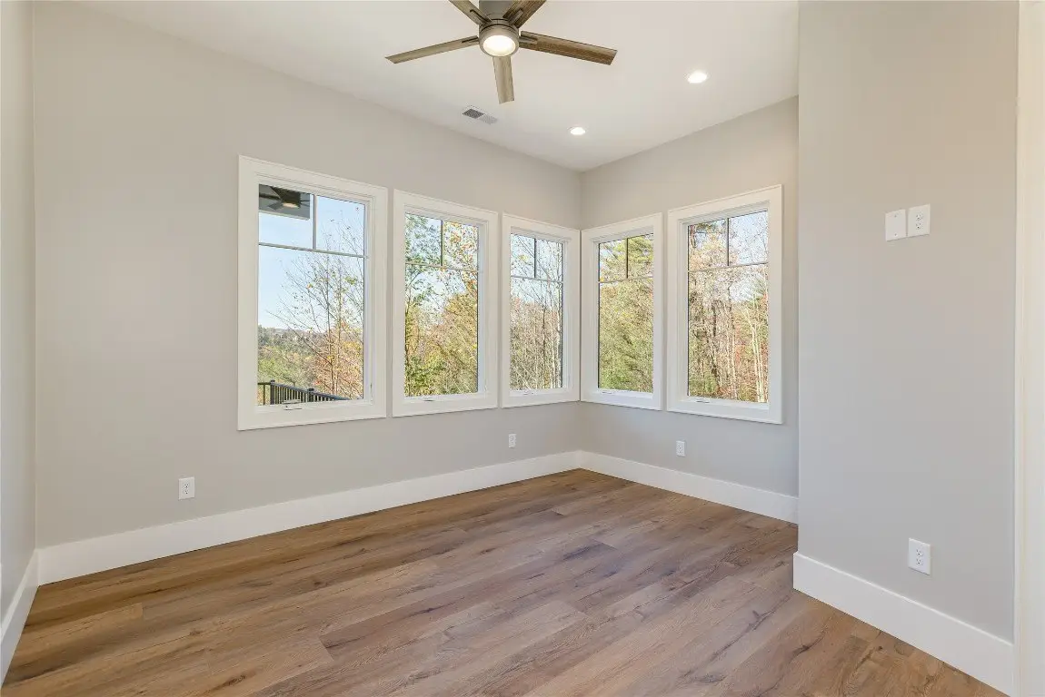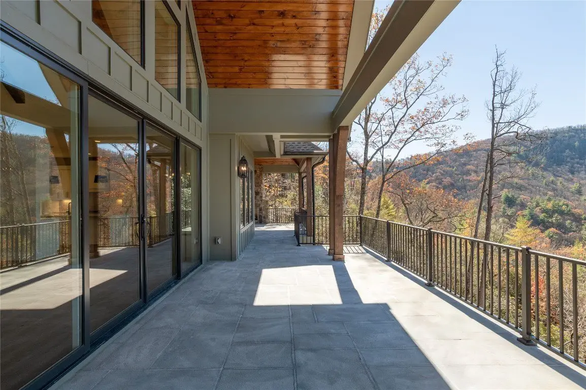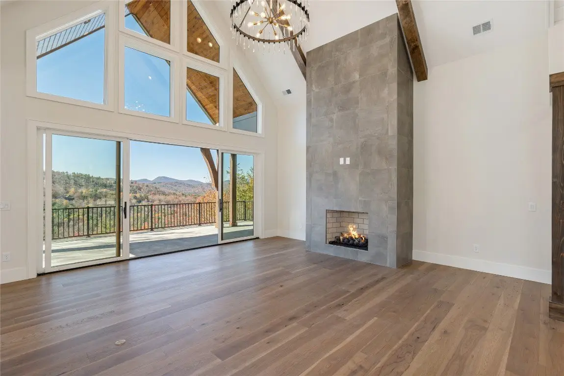 Discover a newly completed, custom-designed residence in Cedar Hill - one of the Highlands-Cashiers Plateau's most sought-after gated communities - that offers refined mountain living at its finest. Perfectly positioned just minutes from both Cashiers and Sapphire, this move-in-ready home combines sophisticated design, exceptional craftsmanship, and a seamless floor plan tailored for modern comfort and entertaining. Clean architectural lines, curated landscaping, and a welcoming mountain aesthetic set the stage for what awaits inside. Expansive windows and glass doors fill the interiors with natural light, framing breathtaking long-range views across the valley, with Big Sheepcliff Mountain rising as a dramatic backdrop. The main level features an open-concept living area with soaring vaulted ceilings, a striking fireplace, and a chef's kitchen with premium finishes and appliances. Two distinct outdoor living spaces extend this level - a covered porch with a wood-burning fireplace for year-round enjoyment, and a covered veranda perfect for relaxing in the cool mountain air. The primary suite on the main level offers a serene retreat, thoughtfully designed for privacy and comfort. The lower level includes a spacious family room with a wet bar, three guest bedrooms, and a bonus room. Multiple covered decks, all featuring stone floors, including one with an additional wood-burning fireplace, create a true indoor-outdoor lifestyle. A two-car garage enhances both the home's architectural appeal and everyday functionality. Blending timeless mountain design with modern luxury, this Cedar Hill retreat embodies mountain living at its finest. Virtually staged photos are included to showcase the potential of the property.