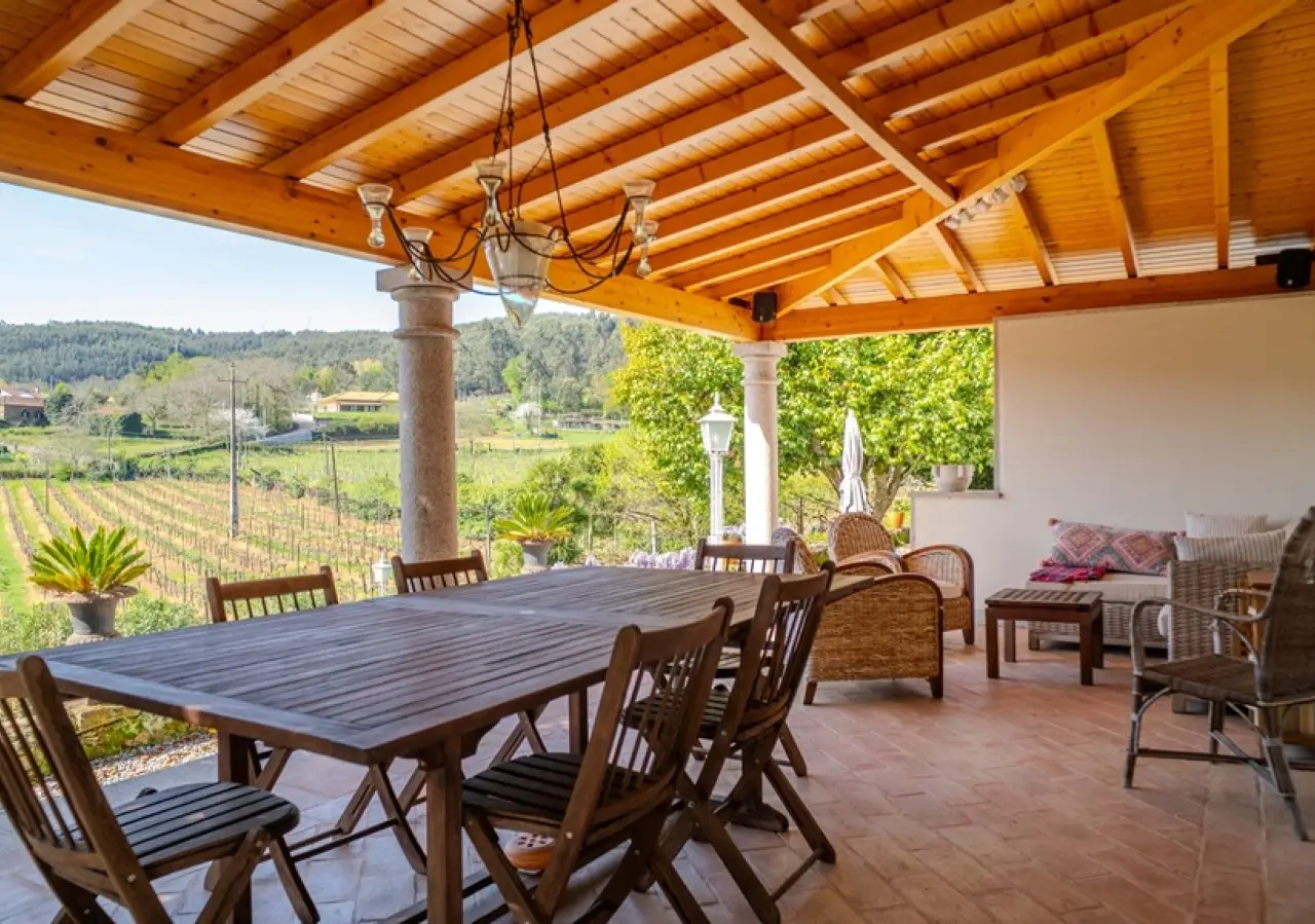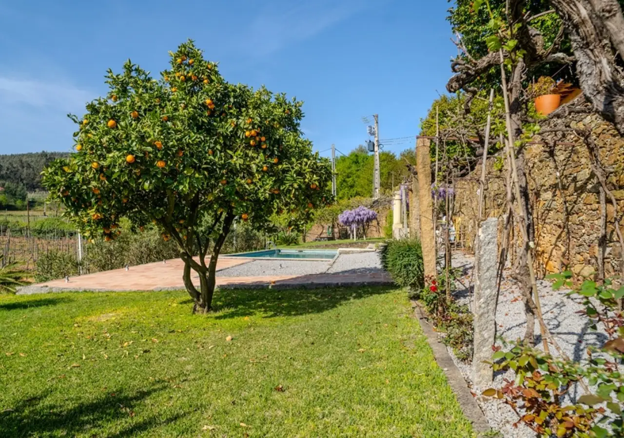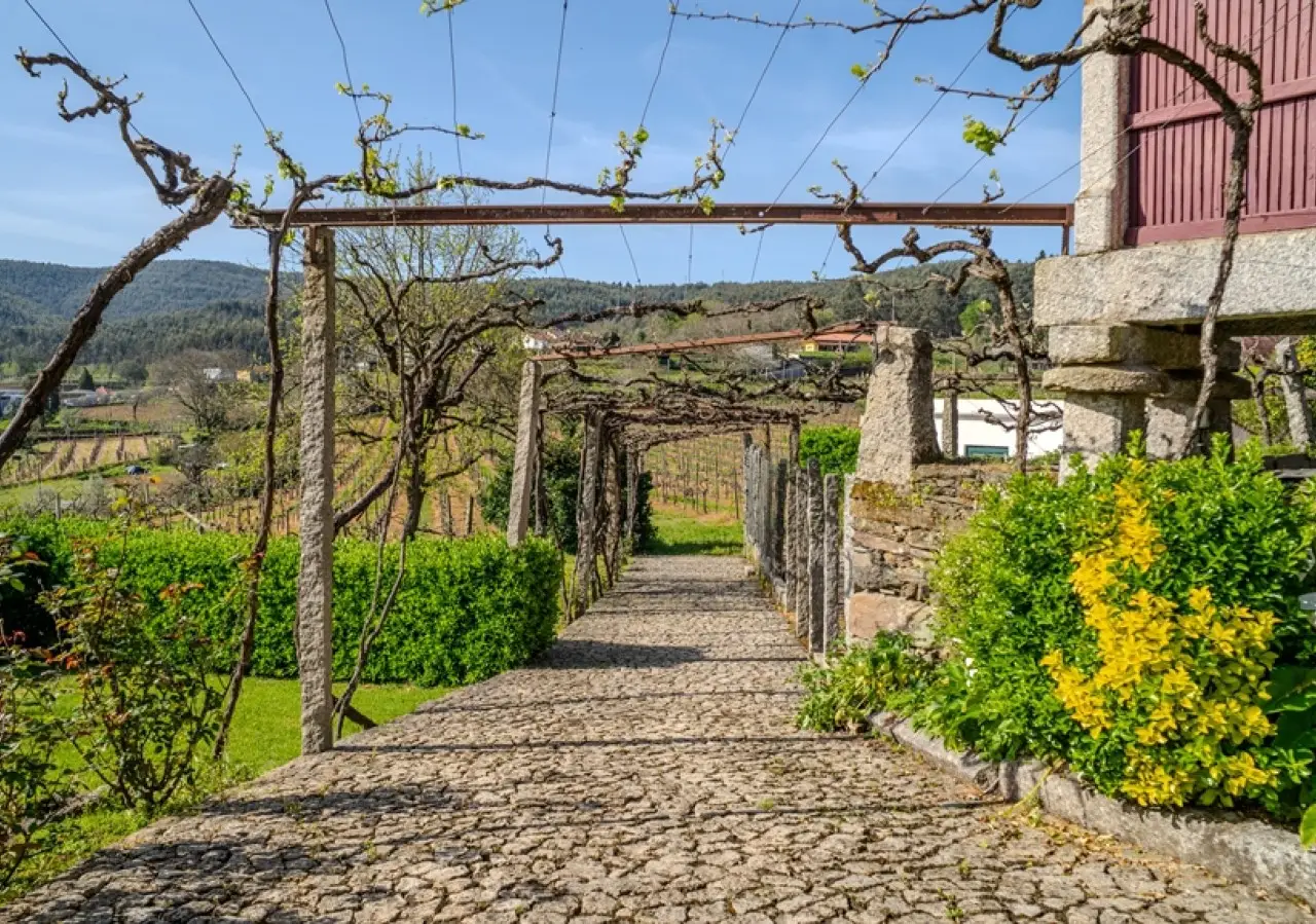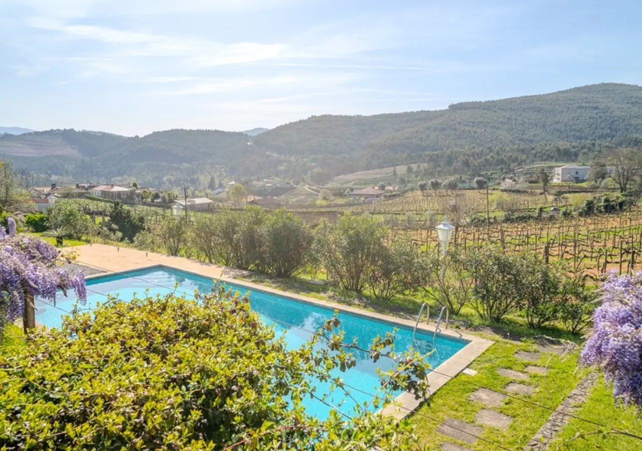 Beautifully renovated country house, part of a wine estate, for sale in Castelo de Paiva, in the Vinho Verde demarced region. A peaceful location in a 100% bucolic setting with panoramic views over 15,770m2 of vineyards and orchards. Rustic architecture typical of this area, very well suited to its surroundings and with all the modern comforts that privilege well-being. The materials used and the well-structured layout provide all the interior comfort for daily living. In addition to the main house with three bedrooms, there is also a studio, a one-bedroom house and a two-bedroom house that are independent and separate from each other, making a total of 7 bedrooms. It benefits from beautiful gardens and an outdoor swimming pool. The property is located 5 minutes from the center of Castelo de Paiva, 40 km from Porto and 50 km from Francisco Sá Carneiro airport. A great business opportunity for those looking for a peaceful environment or as an investment for tourism. CHARACTERISTICS: Plot Area: 17 041 m2 | 183 422 sq ft Building Area: 710 m2 | 7 642 sq ft Bedrooms: 7 Bathrooms: 6 Garage: 6 Energy efficiency: C