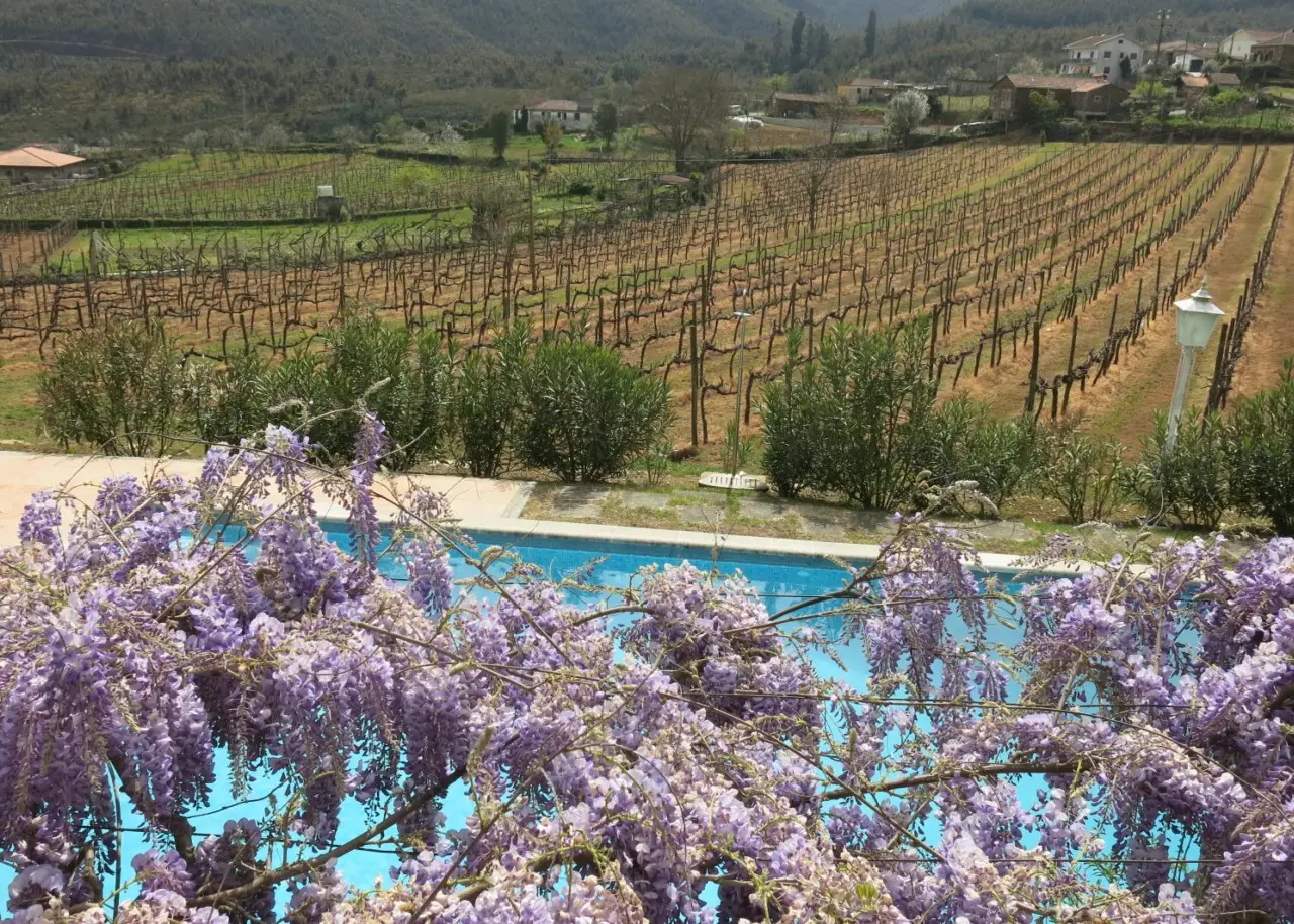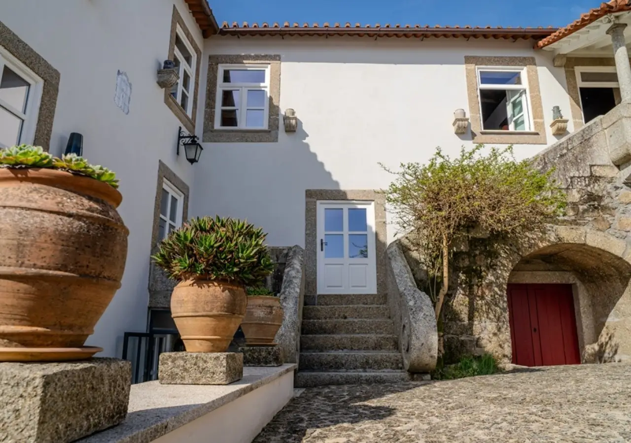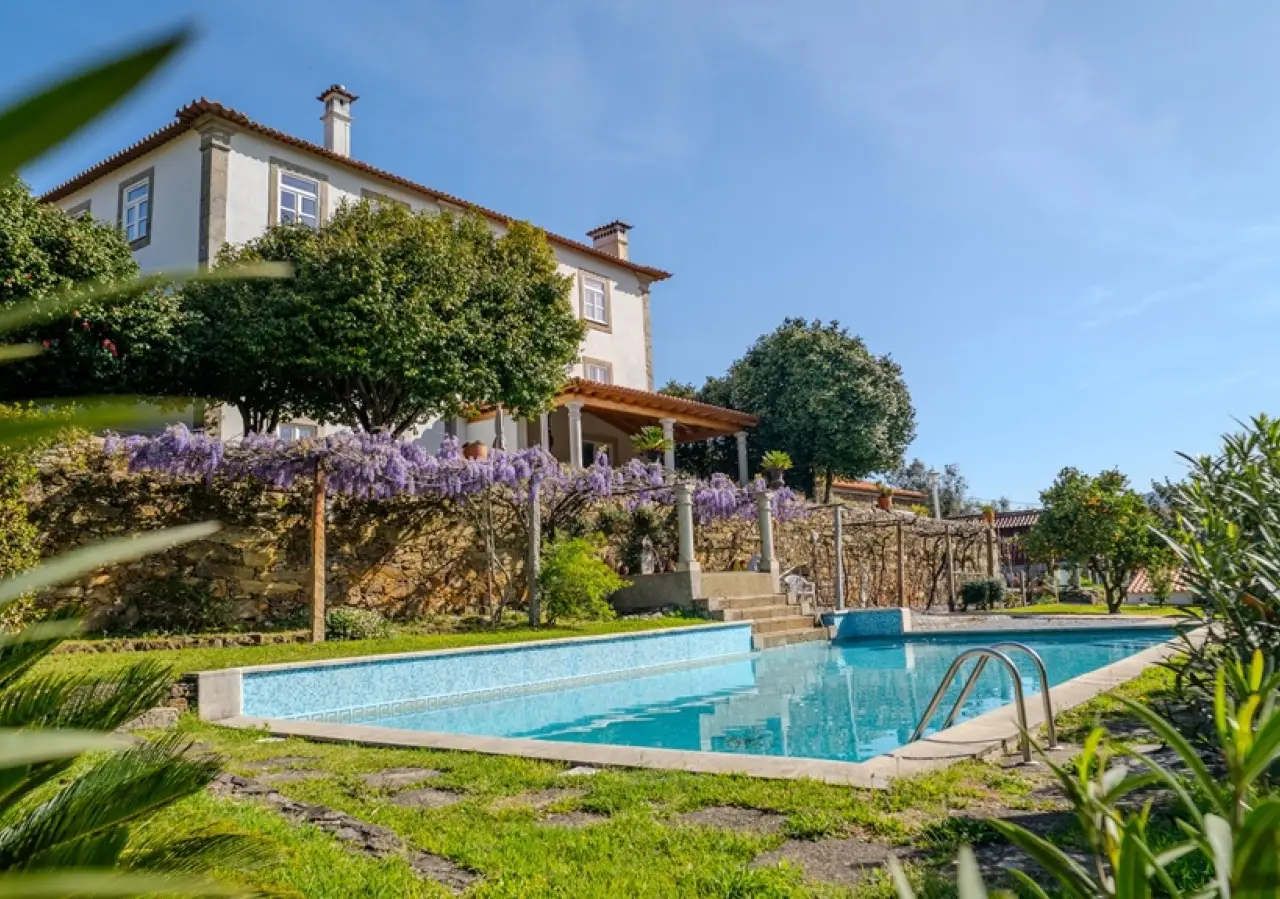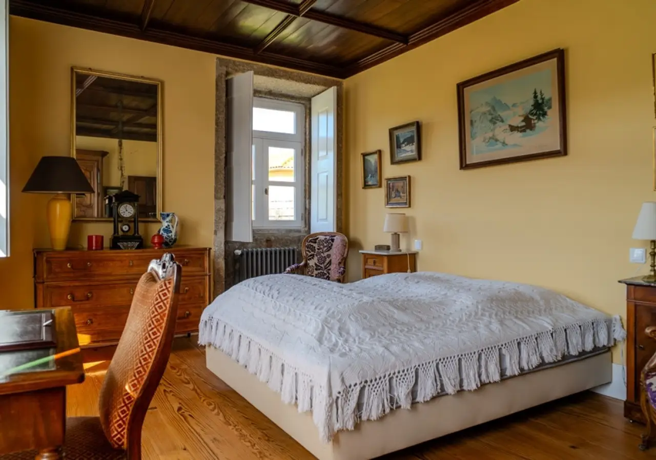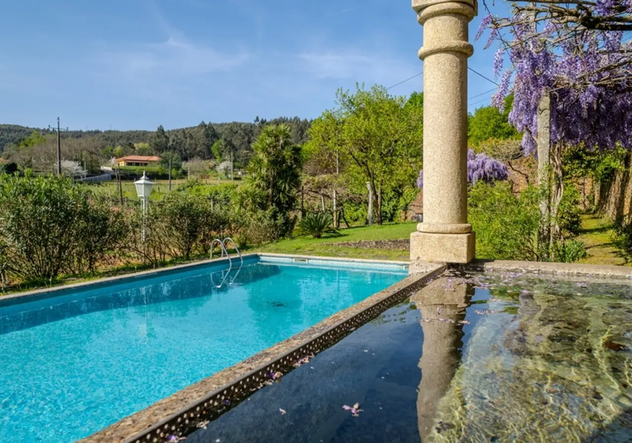 Beautifully renovated country house, part of a wine estate, for sale in Castelo de Paiva, in the Vinho Verde demarced region. A peaceful location in a 100% bucolic setting with panoramic views over 15,770m2 of vineyards and orchards. Rustic architecture typical of this area, very well suited to its surroundings and with all the modern comforts that privilege well-being. The materials used and the well-structured layout provide all the interior comfort for daily living. In addition to the main house with three bedrooms, there is also a studio, a one-bedroom house and a two-bedroom house that are independent and separate from each other, making a total of 7 bedrooms. It benefits from beautiful gardens and an outdoor swimming pool. The property is located 5 minutes from the center of Castelo de Paiva, 40 km from Porto and 50 km from Francisco Sá Carneiro airport. A great business opportunity for those looking for a peaceful environment or as an investment for tourism. CHARACTERISTICS: Plot Area: 17 041 m2 | 183 422 sq ft Building Area: 710 m2 | 7 642 sq ft Bedrooms: 7 Bathrooms: 6 Garage: 6 Energy efficiency: C