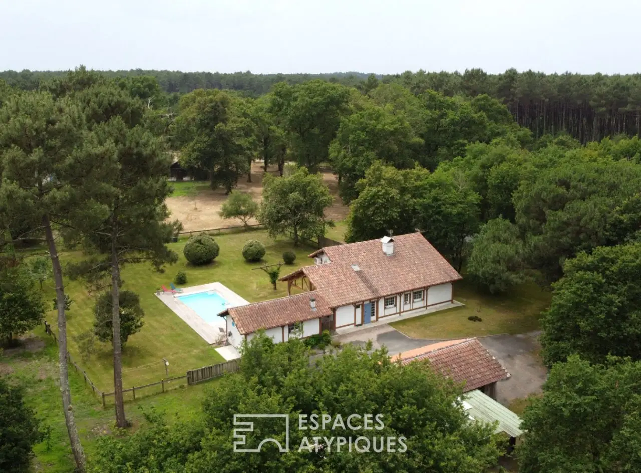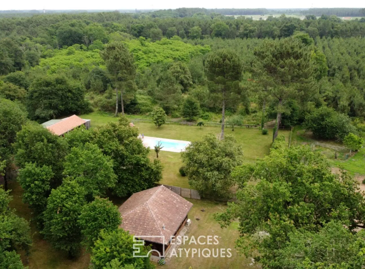 Nestled in a green setting, sheltered from view, this property located in Castets offers a peaceful and confidential living environment, combining nature and comfort. The complex consists of a main house and a separate gite, set on a wooded plot of over 4,700 sqm with a swimming pool and large garage. Upon entering, the generous volumes and exposed timbers create a warm and authentic atmosphere. The light-filled living room opens onto a vast terrace with unobstructed views of the garden. The open-plan kitchen, dining area, and six bedrooms spread between the two dwellings offer ideal flexibility for welcoming family and friends, or developing a seasonal rental business. The fully equipped gite benefits from independent access and excellent privacy, while the exteriors are designed for relaxation: a sunny swimming pool, shaded terrace, landscaped areas, and more. A living space in harmony with nature, ideal for convivial moments. This rare property seduces with its layout, its preserved environment, and its diverse potential. A unique address, ideal for those seeking an art of living combining authenticity and comfort, in a privileged setting in the Landes. ENERGY CLASS: C / CLIMATE CLASS: A Estimated average amount of annual energy expenditure for standard use, established from 2015 energy prices: 839 euros/year. Contact: Stephan DE VALK at 06 33 03 98 65 RSAC: 533 152 955 Dax REF. 11481EALD Additional information * 9 rooms * 6 bedrooms * 2 shower rooms * Outdoor space : 4759 SQM * Property tax : 1 832 € Energy Performance Certificate Primary energy consumption c : 101 kWh/m2.year High performance housing