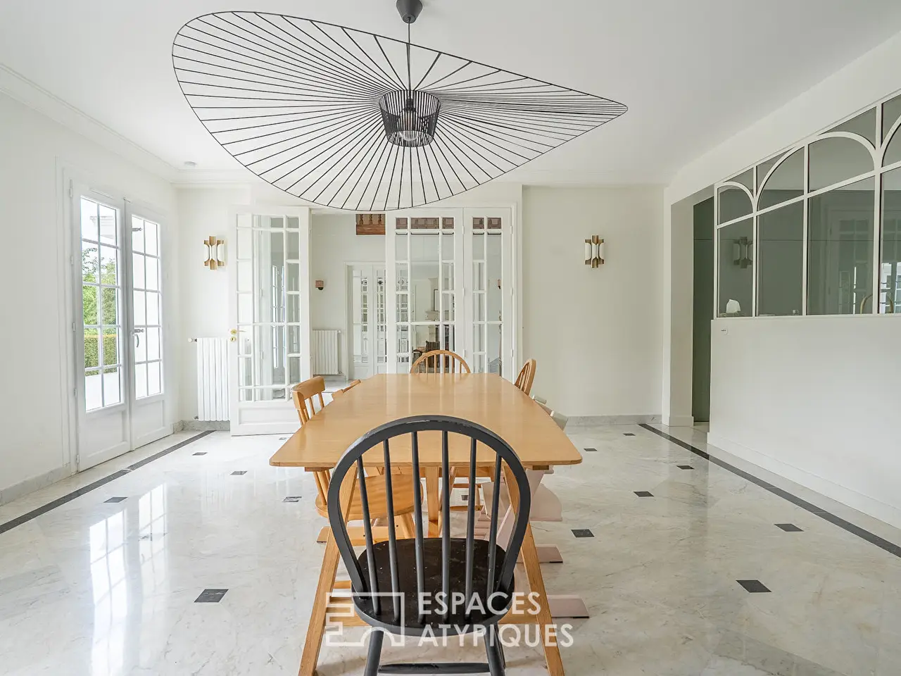 In the heart of the Caudan countryside, just two minutes from the village, lies this exceptional property with over 420 sqm of living space. This rare property, both spacious and elegant, offers an incomparable living environment in a peaceful setting. Its generous grounds include a large heated outdoor swimming pool, a tennis court, and a covered garage, all enhanced by numerous green spaces and a charming landscaped garden. The interior layout highlights spacious and bright spaces. The ground floor comprises an entrance hall, a living room with a fireplace, a veranda, and a fitted and equipped kitchen. A bedroom with a bathroom/shower room, a separate toilet, and additional spaces such as a laundry room and dressing room complete this floor. Upstairs, a master suite with a dressing room and private bathroom is located alongside three other bedrooms, each equipped with its own shower room and toilet. A terrace, accessible from one of the bedrooms, invites you to enjoy the natural outdoor setting. The basement houses a garage, a cellar, a boiler room, a reception room, and an annex, as well as a clay section, ideal for conversion as needed. This exceptional property, with its quality materials and high-end services, represents a real opportunity for those seeking a unique and atypical living environment. The landscaped garden around the house offers a serene and intimate living environment, with space to relax by the pool, play tennis, or garden in the greenhouse. Located close to Caudan's schools and shops, this house offers both tranquility and practicality. Unique in its architecture, high-end services, and exceptional setting, this property stands out as a real favorite for those seeking a refined and atypical living environment.ENERGY CLASS: D / CLIMATE CLASS: DEstimated average amount of annual energy expenditure for standard use, established from average energy prices indexed for the years 2021, 2022, 2023: between EURxxx and EURxxx/yearInformation on the risks to which this property is exposed is available on the georisques website: www.georisques.gouv.frSimon JOUANNORSAC Lorient 929 999 31606 31 35 17 70REF. 521EAMAdditional information* 8 rooms* 5 bedrooms* 3 bathrooms* 1 bathroom* Outdoor space : 20300 SQM* Property tax : 3 688 €Energy Performance CertificateEPC : 175 kWhEP/m2.year* A 450GHG : 47 kgeqCO2/m2.year* A 80Agency feesThe fees include VAT and are payable by the vendorMediatorMediation Franchise-Consommateurswww.mediation-franchise.com29 Boulevard de Courcelles 75008 ParisInformation on the risks to which this property is exposed is available on the Geohazards website : www.georisques.gouv.fr