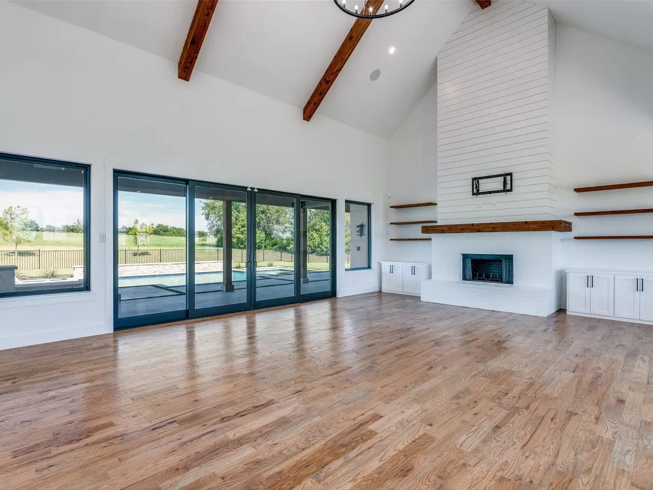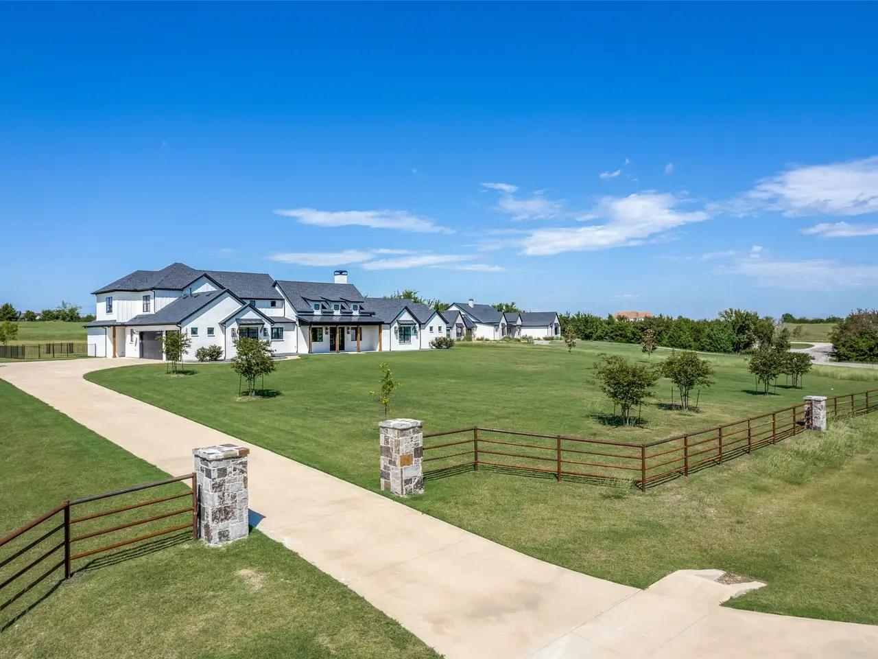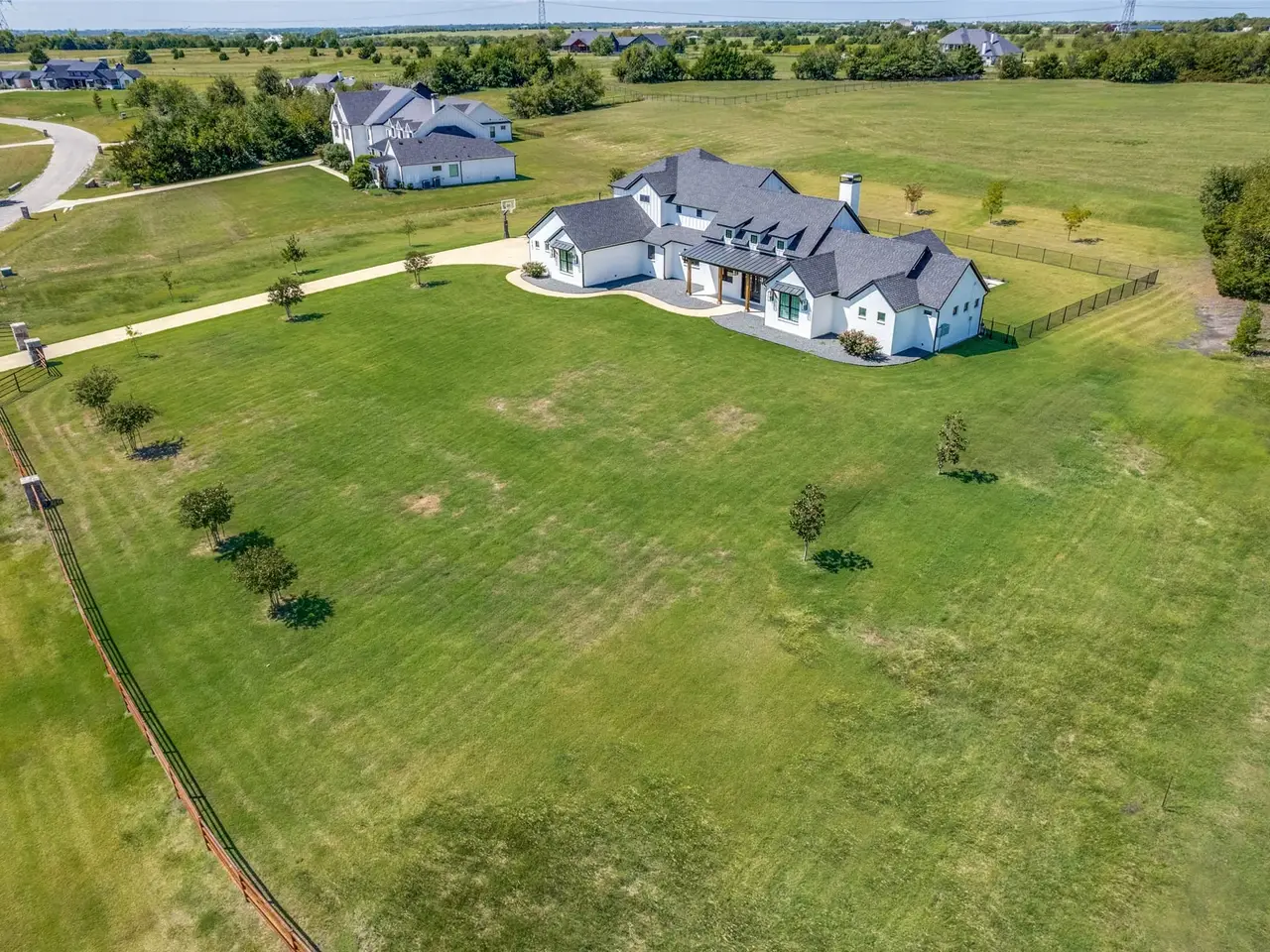 Enjoy the serenity and privacy of your own slice of a Texas ranch, all while maintaining a strong sense of community. This beautiful five-bedroom, four and a half-bath home is ideally situated on 2.2 acres. Upon entering through the double doors, you'll be greeted by a light-filled Great Room where attention to detail and design is immediately evident. The modern aesthetic of white counters and walls contrasts beautifully with black cupboards and woodwork, while warm wood floors and beams provide a traditional touch. This spacious room, large enough to accommodate additional dining, features a cozy fireplace and a wall of windows overlooking the tranquil, oasis-like backyard. The kitchen, open to the Great Room, is a chef's dream with a six-burner Wolf Range, double ovens, a built-in refrigerator and a farmhouse sink. Ample kitchen storage is further enhanced by an extra-large pantry. An attached Breakfast Room and Breakfast Bar offers plenty of space for casual dining. The first floor Primary Bedroom boasts panoramic views of and direct access to the pool area, complete with a convenient coffee bar and drink refrigerator. The Primary Bath is a luxurious retreat, featuring a free-standing tub and a double shower. Remarkably, a discreet safe room is tucked away within the Primary Suite. A dedicated study is located adjacent to the Primary Bedroom, and another first floor bedroom with an en-suite bath provides privacy for guests. The first floor is completed by a Media Room, a separate office space, and a utility room. Upstairs, you'll find a light and airy space offering three additional bedrooms, two baths, and a spacious Game Room. Step outside to discover an inviting outdoor living space with a covered patio & a built-in grill. Your private resort is complete with a tanning deck in the pool, a relaxing spa, & an elegant water feature. Finally, a three-car attached garage with additional storage provides easy access. This exceptional home is also zoned for award-winning Celina schools. Welcome to the Hills of Lone Star.