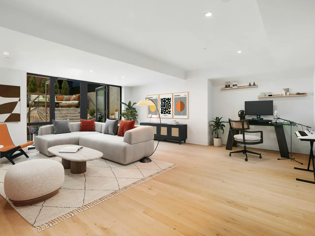 Experience sustainable luxury in this abundant and oversized 2 bed 2.5 bath duplex residence with a cavernous and flexible recreation room and glorious private outdoor spaces at The Dovecote, where design, functionality, and Passive House converge seamlessly. This home features two levels of pin drop quiet living with premium interior finishes, sound-attenuating windows for natural light, timeless white oak flooring, and an efficient VRF HVAC system. The heart of the home includes a cook's kitchen with Caesarstone countertops, Porcelanosa backsplash, custom lacquered cabinetry, and a prominent Bosch stainless steel appliance suite. The recirculating hot water system adds efficiency and reduces waste. The primary bath is a clean design sanctuary with Persian white Porcelanosa floor tiles, Carrera Blanco wall tiles, a custom lacquered vanity with a Caesarstone countertop, and a walk-in shower with Grohe fixtures. The secondary bath combines Travertine-look porcelain floor tile, Italian glazed white porcelain wall tile, and a spacious soaking tub with polished chrome Kohler fixtures. Indulge in unparalleled sustainable living at The Dovecote. The Dovecote embraces innovative Passive-House design and construction techniques, aiming to maximize energy conservation and create a healthy, comfortable living environment. These upgrades include thick exterior insulation, an airtight building seal, highly efficient triple-paned windows, and the removal of heat-conducting materials from exterior walls. This blend of science and ingenuity not only contributes to environmental sustainability but also brings cost-saving benefits to homeowners by stabilizing interior temperatures and reducing dependency on climate control. In a seamless fusion of art and architecture, The Dovecote stands as a testament to the transformative power of creativity. The facade features an engraved stone panel with an original poem by Rita Dove, a site specific mosaic by Emmett Wigglesworth and ornamental panels by Kent Bloomer. The Dovecote offers essential amenities for a streamlined day-to-day, enhancing residents" quality of life with modern conveniences. The boutique fitness studio provides top-of-the-line equipment, and a virtual doorman ensures secure access, complemented by a secure package room for effortless deliveries. Private storage options cater to every organizational need. Exclusive Sales and Marketing Agent: Brown Harris Stevens Development Marketing The complete offering terms are available in an offering plan from Sponsor. File No. CD16-0401 Sponsor: 11 West 126th Street Holdings LLC, 90-11 160th Street, Jamaica, N.Y. 11432 Property Address: 11 West 126th Street, New York, New York 10017. Equal Housing Opportunity