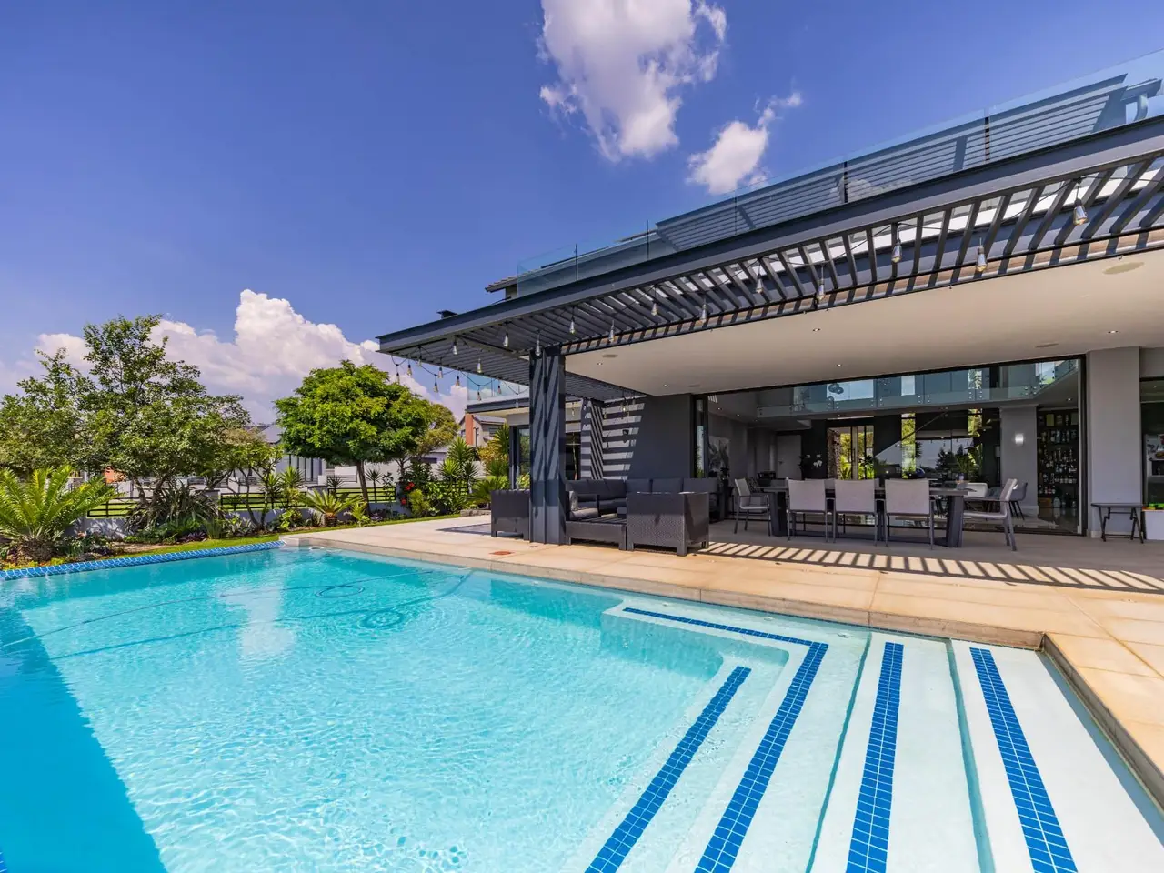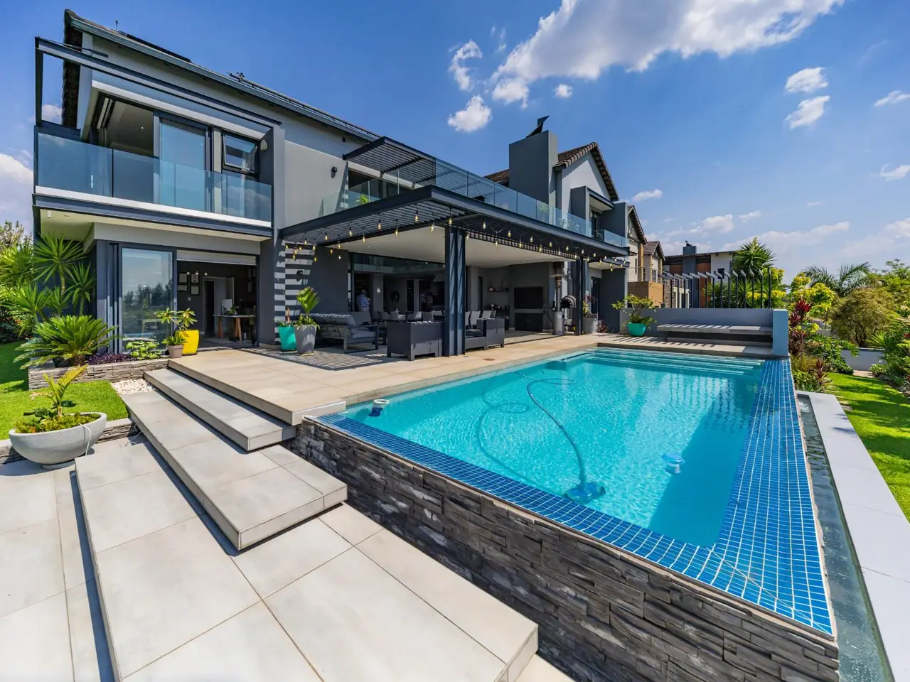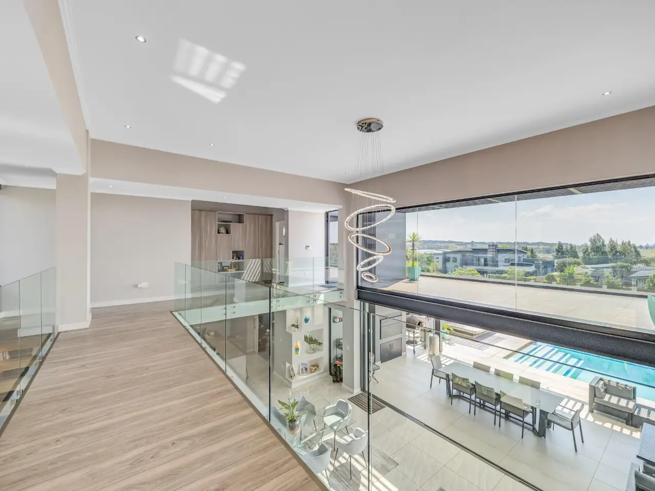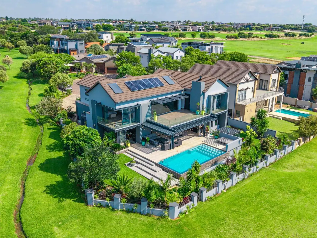 Discover an architectural masterpiece nestled within the prestigious Copperleaf Estate, home to the renowned Ernie Els designed 18-hole championship golf course. Surrounded by natural beauty and world-class lifestyle amenities, this ultra-modern residence offers sophistication, comfort, and seamless indoor-outdoor living ESTATE LIFESTYLE & AMENITIES Copperleaf Estate is one of Gauteng's premier residential golf estates, boasting: -Four scenic lakes with catch-and-release fishing --¦6 km of mountain-bike trails, also ideal for hiking -A fully equipped gym and luxury spa -A modern clubhouse overlooking the course -The estateGÇÖs own signature eatery, The Deli This exceptional environment combines nature, wellness, and recreation within a secure, family-friendly community THE RESIDENCE Positioned on a -¦1,000 m-¦ stand, this contemporary showpiece offers -¦480 m-¦ of refined living space, designed to maximize natural light, modern comforts, and sweeping greenbelt views BEDROOMS & BATHROOMS -4 spacious en-suite bedrooms, each beautifully finished -6 bathrooms in total, including a stylish cloakroom -Luxurious master suite with glass sliding doors revealing breathtaking valley vistas -A walk-through dressing room leading to a generously sized main bathroom KEY INTERIOR FEATURES -Grand double-volume entrance with abundant natural light -Striking feature ring chandelier suspended over a skywalk-style upper-level walkway -A flowing open-plan living area connecting the lounge, dining space, and kitchen -Separate, private TV lounge with sliding doors -Exceptional scullery, unusually large and practical, hidden behind the designer kitchen KITCHEN & FINISHES -High-end Caesarstone countertops throughout -Bosch double electric oven paired with a gas hob -Abundant cabinetry and seamless integration with the living spaces -Premium Geberit taps and wall-hung toilets ENERGY EFFICIENCY AND SUSTAINABILITY This home is built for modern sustainable living and energy independence: -12 solar panels -5 kW inverter with 10 kW battery backup -Two solar geysers with smart control -JoJo water storage tank (2,250 litres) for added utility -Low-E north-facing windows, helping retain warmth in winter and reduce heat in summer -Network hardpoints in every room -Piped music on the patio for effortless entertainment OUTDOOR LIVING & FEATURES Designed for relaxation and entertainment, the outdoor area is nothing short of exceptional: -Magnificent infinity pool with two pump motors -Thoughtfully landscaped garden creating a serene backdrop -Built-in braai area perfect for gatherings -Elegant fire pit positioned near the pool -Raised poolside platform with an overhang, ideal for sun lounging GARAGE & STORAGE -3-car garage -Ample driveway parking -Modern storage solutions integrated throughout A HOME DESIGNED TO IMPRESS
