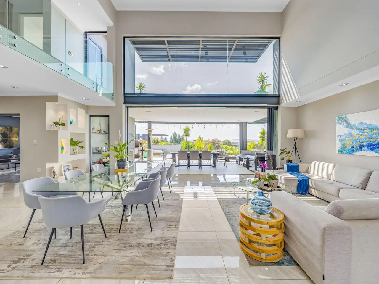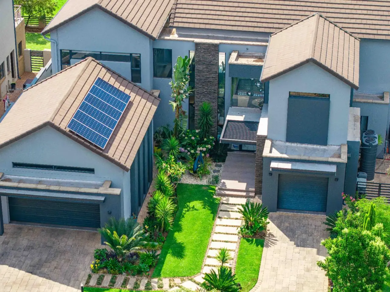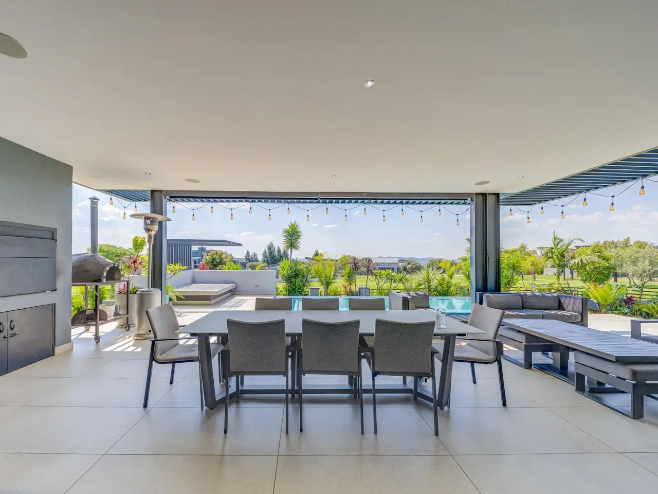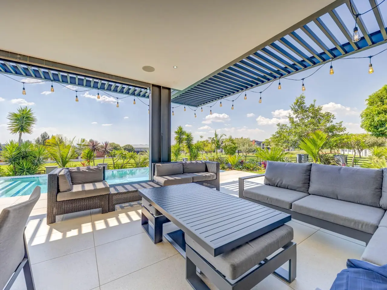 Discover an architectural masterpiece nestled within the prestigious Copperleaf Estate, home to the renowned Ernie Els designed 18-hole championship golf course. Surrounded by natural beauty and world-class lifestyle amenities, this ultra-modern residence offers sophistication, comfort, and seamless indoor-outdoor living ESTATE LIFESTYLE & AMENITIES Copperleaf Estate is one of Gauteng's premier residential golf estates, boasting: -Four scenic lakes with catch-and-release fishing --¦6 km of mountain-bike trails, also ideal for hiking -A fully equipped gym and luxury spa -A modern clubhouse overlooking the course -The estateGÇÖs own signature eatery, The Deli This exceptional environment combines nature, wellness, and recreation within a secure, family-friendly community THE RESIDENCE Positioned on a -¦1,000 m-¦ stand, this contemporary showpiece offers -¦480 m-¦ of refined living space, designed to maximize natural light, modern comforts, and sweeping greenbelt views BEDROOMS & BATHROOMS -4 spacious en-suite bedrooms, each beautifully finished -6 bathrooms in total, including a stylish cloakroom -Luxurious master suite with glass sliding doors revealing breathtaking valley vistas -A walk-through dressing room leading to a generously sized main bathroom KEY INTERIOR FEATURES -Grand double-volume entrance with abundant natural light -Striking feature ring chandelier suspended over a skywalk-style upper-level walkway -A flowing open-plan living area connecting the lounge, dining space, and kitchen -Separate, private TV lounge with sliding doors -Exceptional scullery, unusually large and practical, hidden behind the designer kitchen KITCHEN & FINISHES -High-end Caesarstone countertops throughout -Bosch double electric oven paired with a gas hob -Abundant cabinetry and seamless integration with the living spaces -Premium Geberit taps and wall-hung toilets ENERGY EFFICIENCY AND SUSTAINABILITY This home is built for modern sustainable living and energy independence: -12 solar panels -5 kW inverter with 10 kW battery backup -Two solar geysers with smart control -JoJo water storage tank (2,250 litres) for added utility -Low-E north-facing windows, helping retain warmth in winter and reduce heat in summer -Network hardpoints in every room -Piped music on the patio for effortless entertainment OUTDOOR LIVING & FEATURES Designed for relaxation and entertainment, the outdoor area is nothing short of exceptional: -Magnificent infinity pool with two pump motors -Thoughtfully landscaped garden creating a serene backdrop -Built-in braai area perfect for gatherings -Elegant fire pit positioned near the pool -Raised poolside platform with an overhang, ideal for sun lounging GARAGE & STORAGE -3-car garage -Ample driveway parking -Modern storage solutions integrated throughout A HOME DESIGNED TO IMPRESS