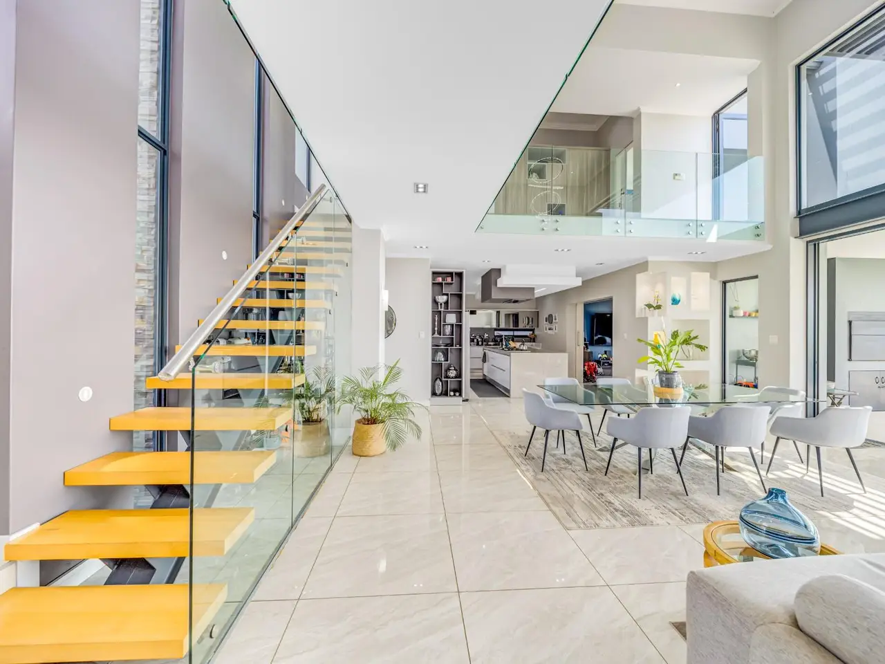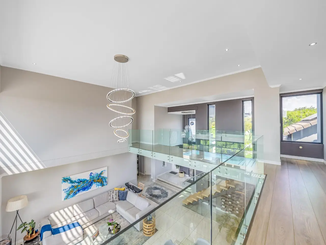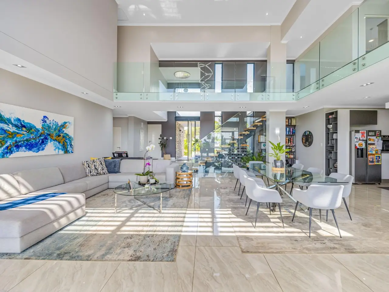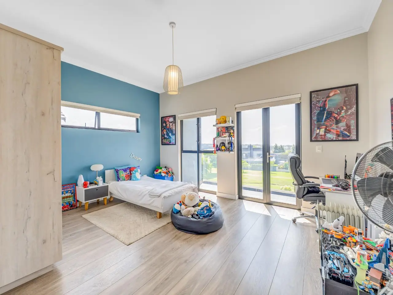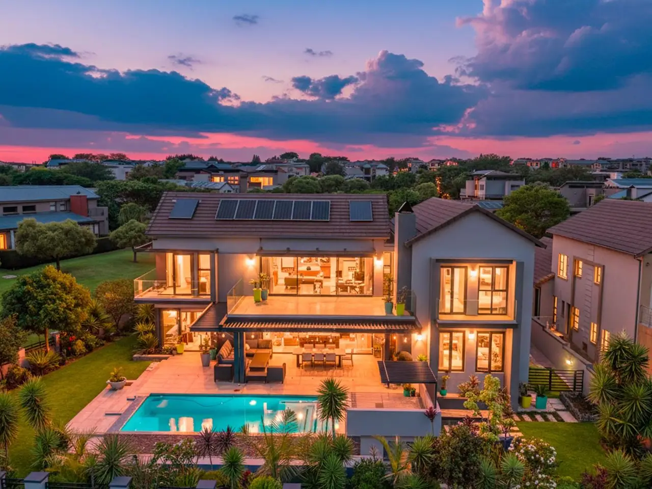 Discover an architectural masterpiece nestled within the prestigious Copperleaf Estate, home to the renowned Ernie Els designed 18-hole championship golf course. Surrounded by natural beauty and world-class lifestyle amenities, this ultra-modern residence offers sophistication, comfort, and seamless indoor-outdoor living ESTATE LIFESTYLE & AMENITIES Copperleaf Estate is one of Gauteng's premier residential golf estates, boasting: -Four scenic lakes with catch-and-release fishing --¦6 km of mountain-bike trails, also ideal for hiking -A fully equipped gym and luxury spa -A modern clubhouse overlooking the course -The estateGÇÖs own signature eatery, The Deli This exceptional environment combines nature, wellness, and recreation within a secure, family-friendly community THE RESIDENCE Positioned on a -¦1,000 m-¦ stand, this contemporary showpiece offers -¦480 m-¦ of refined living space, designed to maximize natural light, modern comforts, and sweeping greenbelt views BEDROOMS & BATHROOMS -4 spacious en-suite bedrooms, each beautifully finished -6 bathrooms in total, including a stylish cloakroom -Luxurious master suite with glass sliding doors revealing breathtaking valley vistas -A walk-through dressing room leading to a generously sized main bathroom KEY INTERIOR FEATURES -Grand double-volume entrance with abundant natural light -Striking feature ring chandelier suspended over a skywalk-style upper-level walkway -A flowing open-plan living area connecting the lounge, dining space, and kitchen -Separate, private TV lounge with sliding doors -Exceptional scullery, unusually large and practical, hidden behind the designer kitchen KITCHEN & FINISHES -High-end Caesarstone countertops throughout -Bosch double electric oven paired with a gas hob -Abundant cabinetry and seamless integration with the living spaces -Premium Geberit taps and wall-hung toilets ENERGY EFFICIENCY AND SUSTAINABILITY This home is built for modern sustainable living and energy independence: -12 solar panels -5 kW inverter with 10 kW battery backup -Two solar geysers with smart control -JoJo water storage tank (2,250 litres) for added utility -Low-E north-facing windows, helping retain warmth in winter and reduce heat in summer -Network hardpoints in every room -Piped music on the patio for effortless entertainment OUTDOOR LIVING & FEATURES Designed for relaxation and entertainment, the outdoor area is nothing short of exceptional: -Magnificent infinity pool with two pump motors -Thoughtfully landscaped garden creating a serene backdrop -Built-in braai area perfect for gatherings -Elegant fire pit positioned near the pool -Raised poolside platform with an overhang, ideal for sun lounging GARAGE & STORAGE -3-car garage -Ample driveway parking -Modern storage solutions integrated throughout A HOME DESIGNED TO IMPRESS