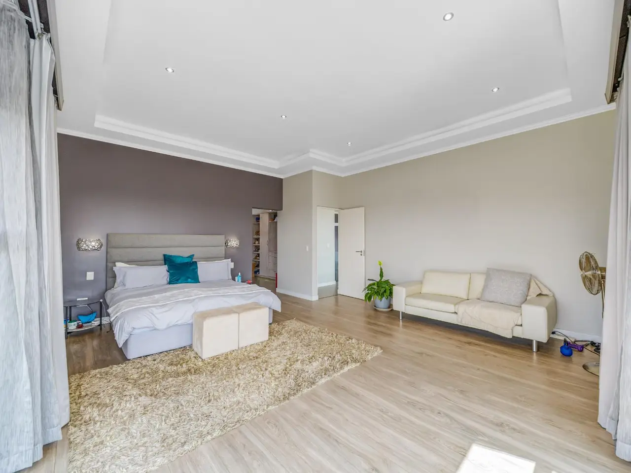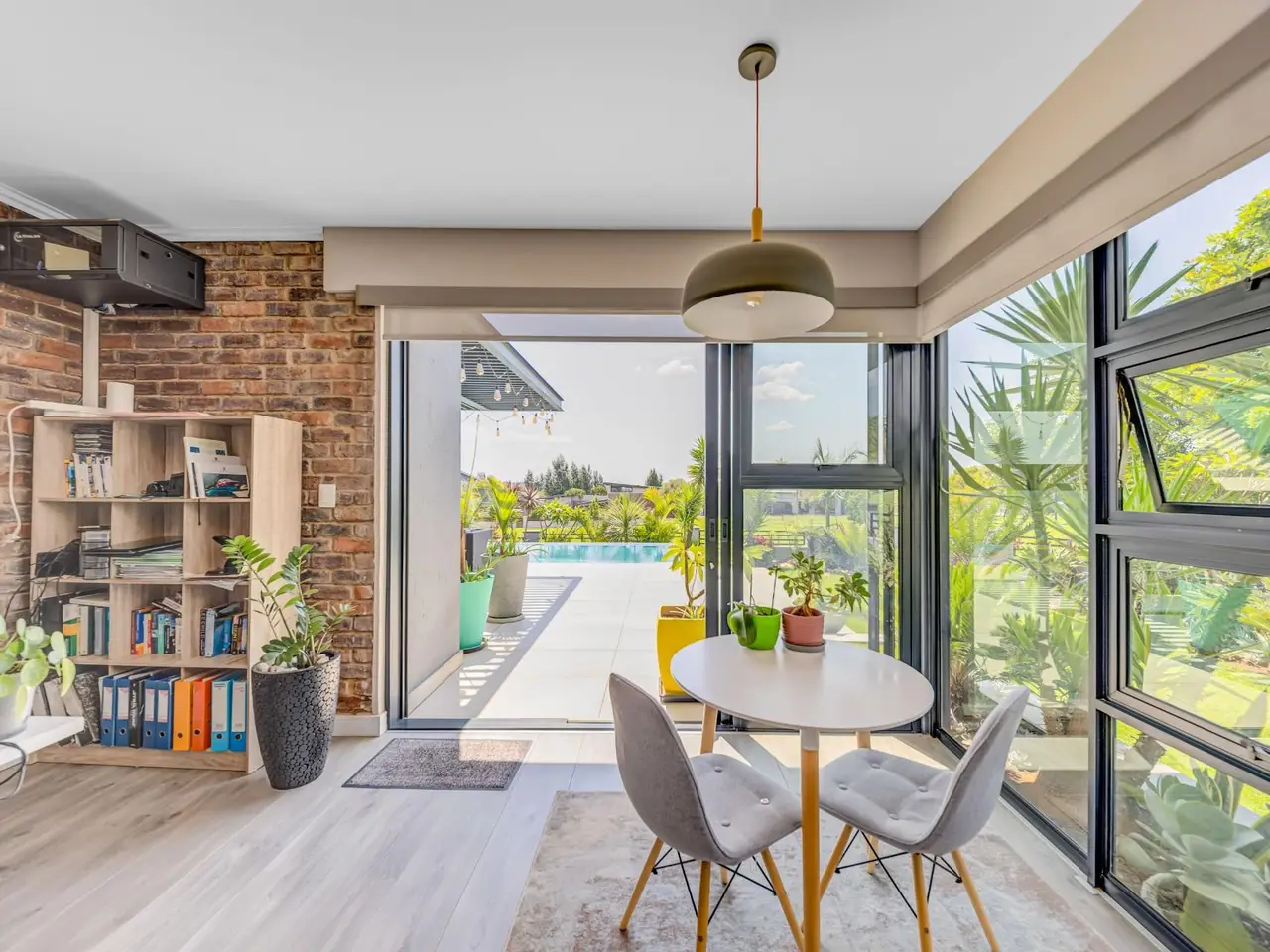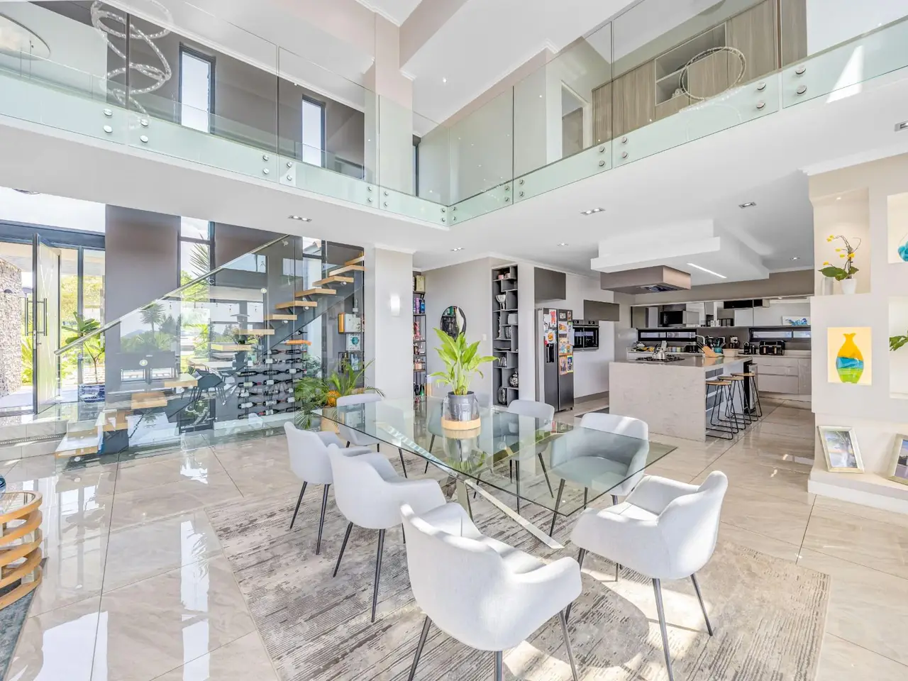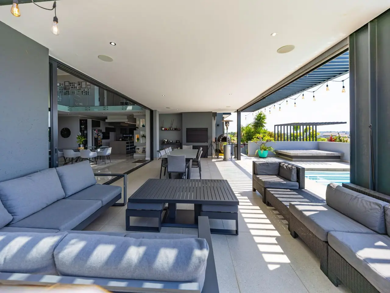Discover an architectural masterpiece nestled within the prestigious Copperleaf Estate, home to the renowned Ernie Els designed 18-hole championship golf course. Surrounded by natural beauty and world-class lifestyle amenities, this ultra-modern residence offers sophistication, comfort, and seamless indoor-outdoor living ESTATE LIFESTYLE & AMENITIES Copperleaf Estate is one of Gauteng's premier residential golf estates, boasting: -Four scenic lakes with catch-and-release fishing --¦6 km of mountain-bike trails, also ideal for hiking -A fully equipped gym and luxury spa -A modern clubhouse overlooking the course -The estateGÇÖs own signature eatery, The Deli This exceptional environment combines nature, wellness, and recreation within a secure, family-friendly community THE RESIDENCE Positioned on a -¦1,000 m-¦ stand, this contemporary showpiece offers -¦480 m-¦ of refined living space, designed to maximize natural light, modern comforts, and sweeping greenbelt views BEDROOMS & BATHROOMS -4 spacious en-suite bedrooms, each beautifully finished -6 bathrooms in total, including a stylish cloakroom -Luxurious master suite with glass sliding doors revealing breathtaking valley vistas -A walk-through dressing room leading to a generously sized main bathroom KEY INTERIOR FEATURES -Grand double-volume entrance with abundant natural light -Striking feature ring chandelier suspended over a skywalk-style upper-level walkway -A flowing open-plan living area connecting the lounge, dining space, and kitchen -Separate, private TV lounge with sliding doors -Exceptional scullery, unusually large and practical, hidden behind the designer kitchen KITCHEN & FINISHES -High-end Caesarstone countertops throughout -Bosch double electric oven paired with a gas hob -Abundant cabinetry and seamless integration with the living spaces -Premium Geberit taps and wall-hung toilets ENERGY EFFICIENCY AND SUSTAINABILITY This home is built for modern sustainable living and energy independence: -12 solar panels -5 kW inverter with 10 kW battery backup -Two solar geysers with smart control -JoJo water storage tank (2,250 litres) for added utility -Low-E north-facing windows, helping retain warmth in winter and reduce heat in summer -Network hardpoints in every room -Piped music on the patio for effortless entertainment OUTDOOR LIVING & FEATURES Designed for relaxation and entertainment, the outdoor area is nothing short of exceptional: -Magnificent infinity pool with two pump motors -Thoughtfully landscaped garden creating a serene backdrop -Built-in braai area perfect for gatherings -Elegant fire pit positioned near the pool -Raised poolside platform with an overhang, ideal for sun lounging GARAGE & STORAGE -3-car garage -Ample driveway parking -Modern storage solutions integrated throughout A HOME DESIGNED TO IMPRESS
