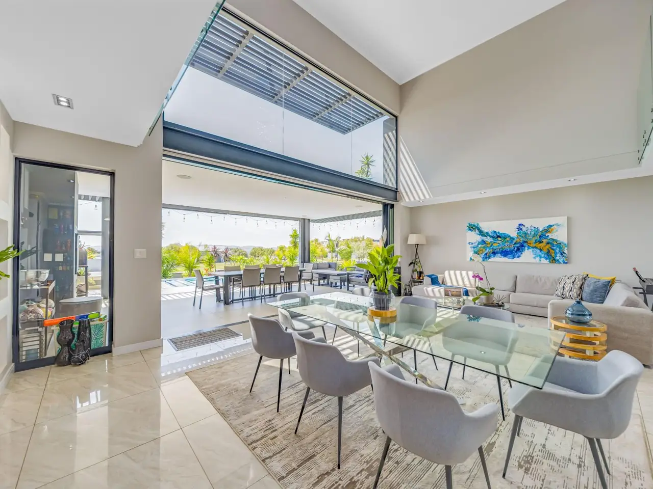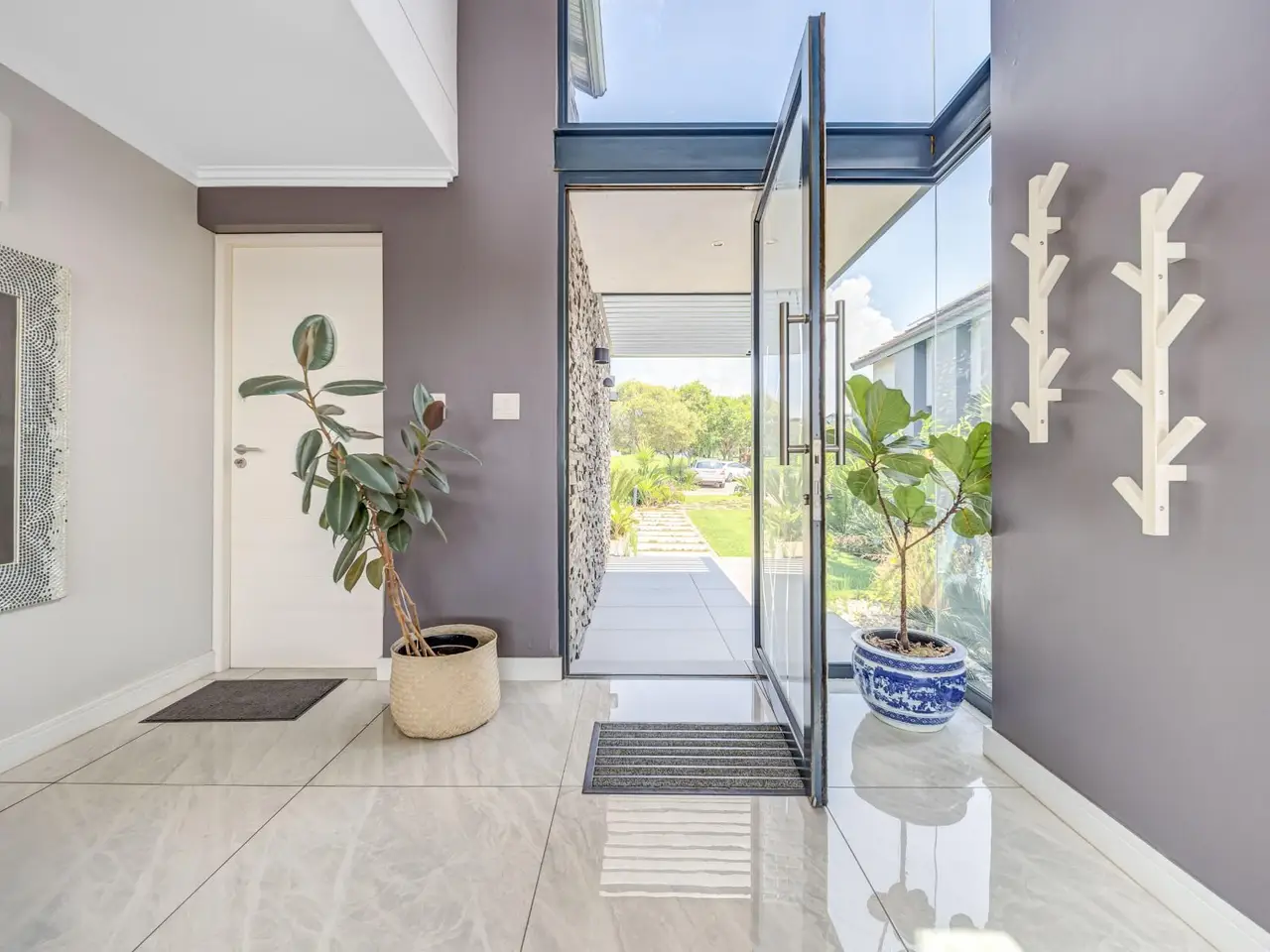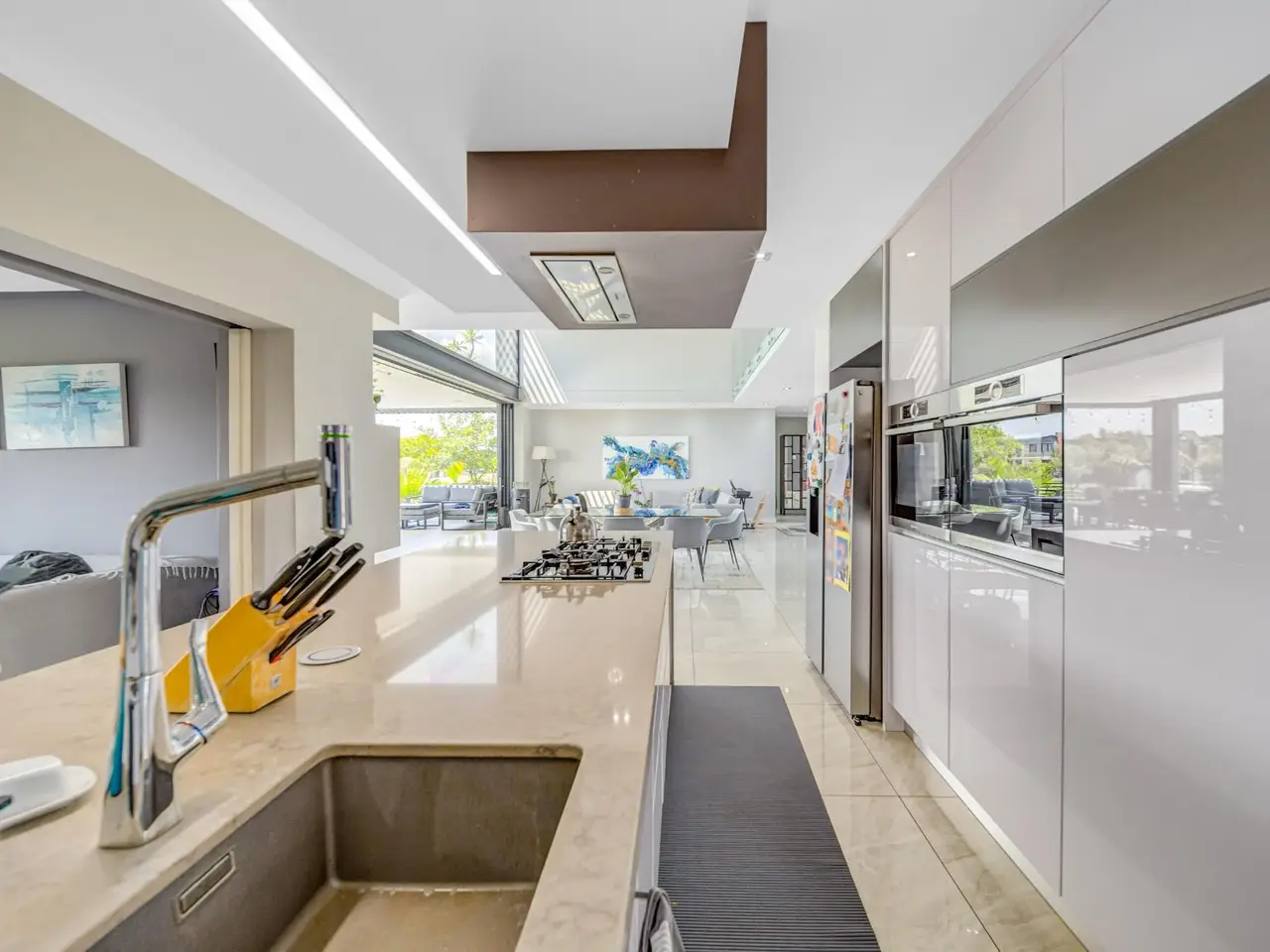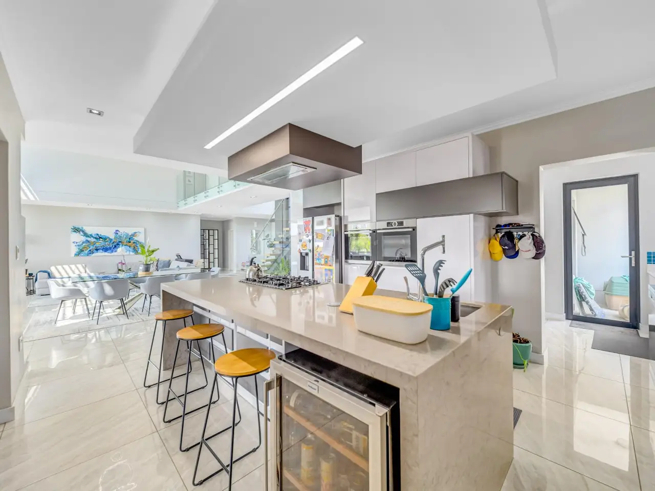 Discover an architectural masterpiece nestled within the prestigious Copperleaf Estate, home to the renowned Ernie Els designed 18-hole championship golf course. Surrounded by natural beauty and world-class lifestyle amenities, this ultra-modern residence offers sophistication, comfort, and seamless indoor-outdoor living ESTATE LIFESTYLE & AMENITIES Copperleaf Estate is one of Gauteng's premier residential golf estates, boasting: -Four scenic lakes with catch-and-release fishing --¦6 km of mountain-bike trails, also ideal for hiking -A fully equipped gym and luxury spa -A modern clubhouse overlooking the course -The estateGÇÖs own signature eatery, The Deli This exceptional environment combines nature, wellness, and recreation within a secure, family-friendly community THE RESIDENCE Positioned on a -¦1,000 m-¦ stand, this contemporary showpiece offers -¦480 m-¦ of refined living space, designed to maximize natural light, modern comforts, and sweeping greenbelt views BEDROOMS & BATHROOMS -4 spacious en-suite bedrooms, each beautifully finished -6 bathrooms in total, including a stylish cloakroom -Luxurious master suite with glass sliding doors revealing breathtaking valley vistas -A walk-through dressing room leading to a generously sized main bathroom KEY INTERIOR FEATURES -Grand double-volume entrance with abundant natural light -Striking feature ring chandelier suspended over a skywalk-style upper-level walkway -A flowing open-plan living area connecting the lounge, dining space, and kitchen -Separate, private TV lounge with sliding doors -Exceptional scullery, unusually large and practical, hidden behind the designer kitchen KITCHEN & FINISHES -High-end Caesarstone countertops throughout -Bosch double electric oven paired with a gas hob -Abundant cabinetry and seamless integration with the living spaces -Premium Geberit taps and wall-hung toilets ENERGY EFFICIENCY AND SUSTAINABILITY This home is built for modern sustainable living and energy independence: -12 solar panels -5 kW inverter with 10 kW battery backup -Two solar geysers with smart control -JoJo water storage tank (2,250 litres) for added utility -Low-E north-facing windows, helping retain warmth in winter and reduce heat in summer -Network hardpoints in every room -Piped music on the patio for effortless entertainment OUTDOOR LIVING & FEATURES Designed for relaxation and entertainment, the outdoor area is nothing short of exceptional: -Magnificent infinity pool with two pump motors -Thoughtfully landscaped garden creating a serene backdrop -Built-in braai area perfect for gatherings -Elegant fire pit positioned near the pool -Raised poolside platform with an overhang, ideal for sun lounging GARAGE & STORAGE -3-car garage -Ample driveway parking -Modern storage solutions integrated throughout A HOME DESIGNED TO IMPRESS