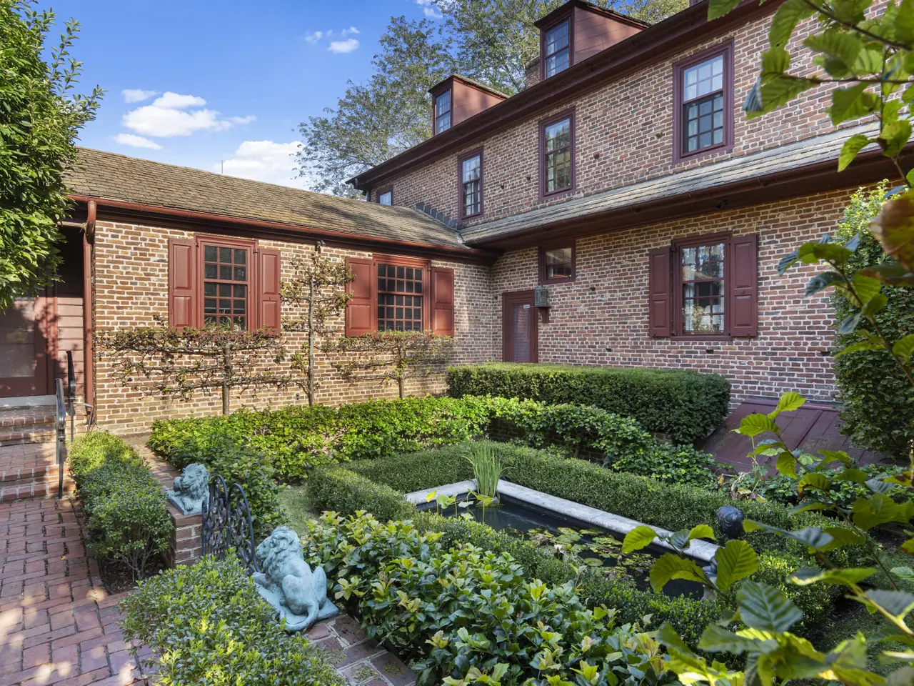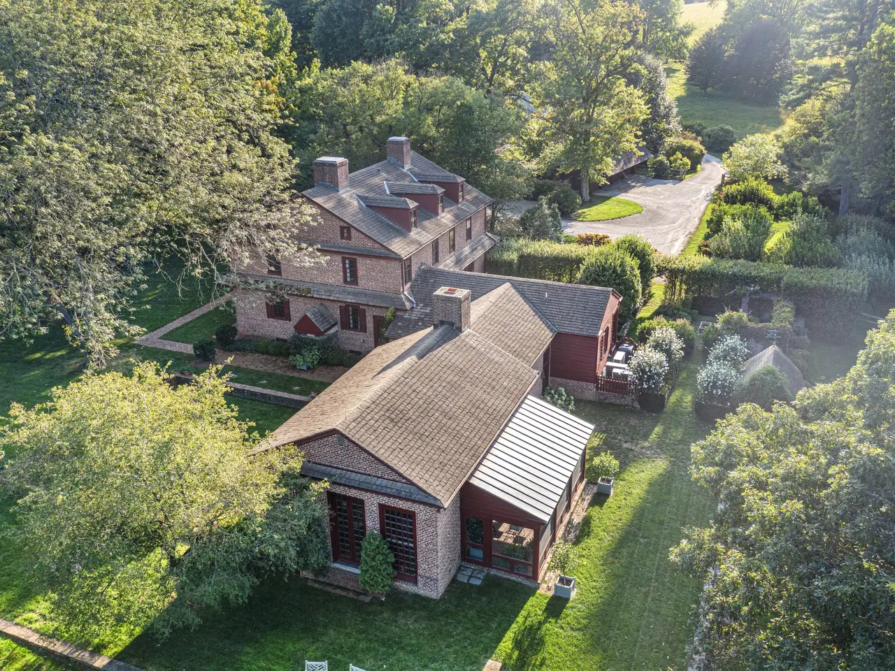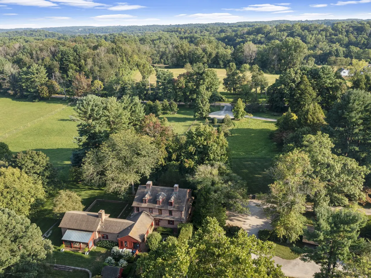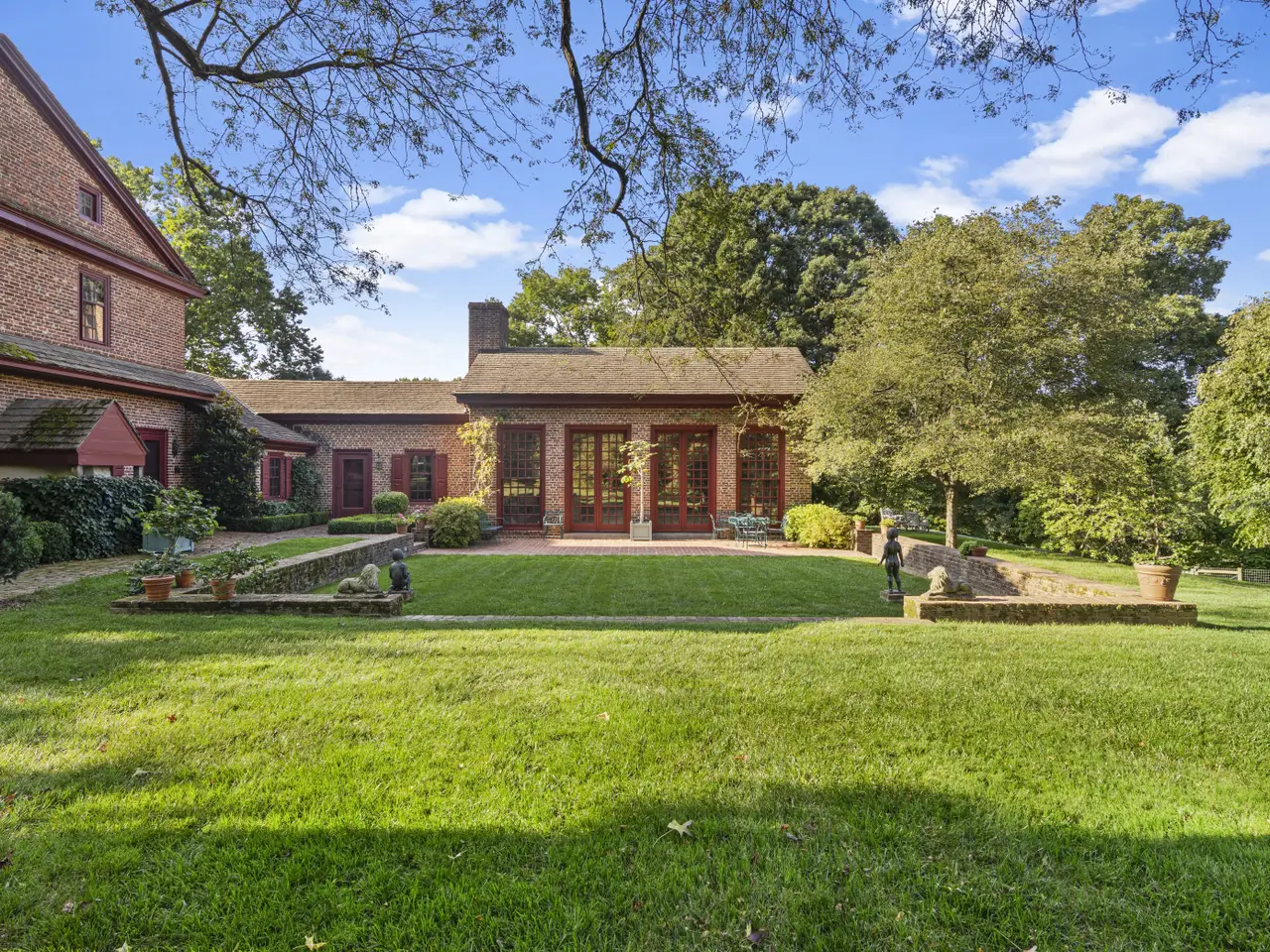 Located on 22 bucolic acres in Chester County, the William Peters House offers authentic 18th-century features with cleverly camouflaged 21st-century amenities. Originally constructed in 1750 and now on the market for the first time in 60 years, this prestigious Georgian-style home awaits the next stewards in its long and storied history. At 6,046 square feet, the three-story home offers six bedrooms and four and a half baths, a cozy library with built-in bookcases, a formal dining and living room, and an original 18th-century kitchen with a large, walk-in fireplace. A total of nine wood-burning fireplaces have been meticulously restored, and the more modern amenities, such as the multi-zoned heating and cooling systems and a full house generator, are all invisible under the house's historic interior. Original wood paneling throughout includes unusual recessed panels, restored mantels, and multiple built-in display cupboards, while the windows contain wavy, handmade glass. Outlets and registers are hidden in baseboards and light switches concealed below chair rails for an authentic 18th-century experience. In 1963, the Georgian-style house was relocated and lovingly reconstructed to exact replication by Judith and John Herdeg. John, who served on the board of Winterthur for 50 years, and Judith worked with local historical architect Albert Kruse. Listed on the National Register of Historic Places, the property includes period-appropriate gardens of native plants, planned in coordination with world-renowned Belgian landscape architect Francois Goffinet. In 1994, an orangerie was added with soaring ceilings, heated terracotta floors, a large fireplace, and 10-foot tall glass-paneled doors that allow in great swells of natural light. An ideal space for entertaining, the orangerie contains an intimate bar, French doors that open into a sunken lawn, and a brick patio with a screened-in porch overlooking alighted allee of maple trees to the north. More recent additions to the house include an expansive, renovated chef's kitchen with a large island and curved bank of cabinets offering amenities to accommodate modern living, including abundant storage. A room-sized cedar closet and an elevator with basement, first and second floor access additional modern conveniences. Despite its august provenance, the Herdegs' raised an active family who thrived in the secluded setting. Homeowners and visitors enter the property via a large, floral iron entrance gate, then proceed down the long, curved drive. An eight-foot-tall deer fence protects the native gardens and encircles some forest and a back stream. Within the fencing there is ample space for a horse barn and livestock grazing.