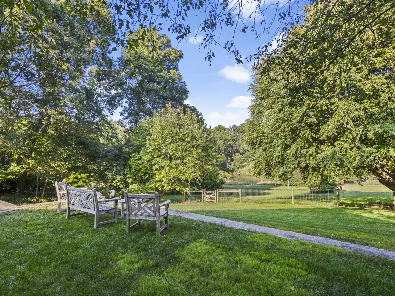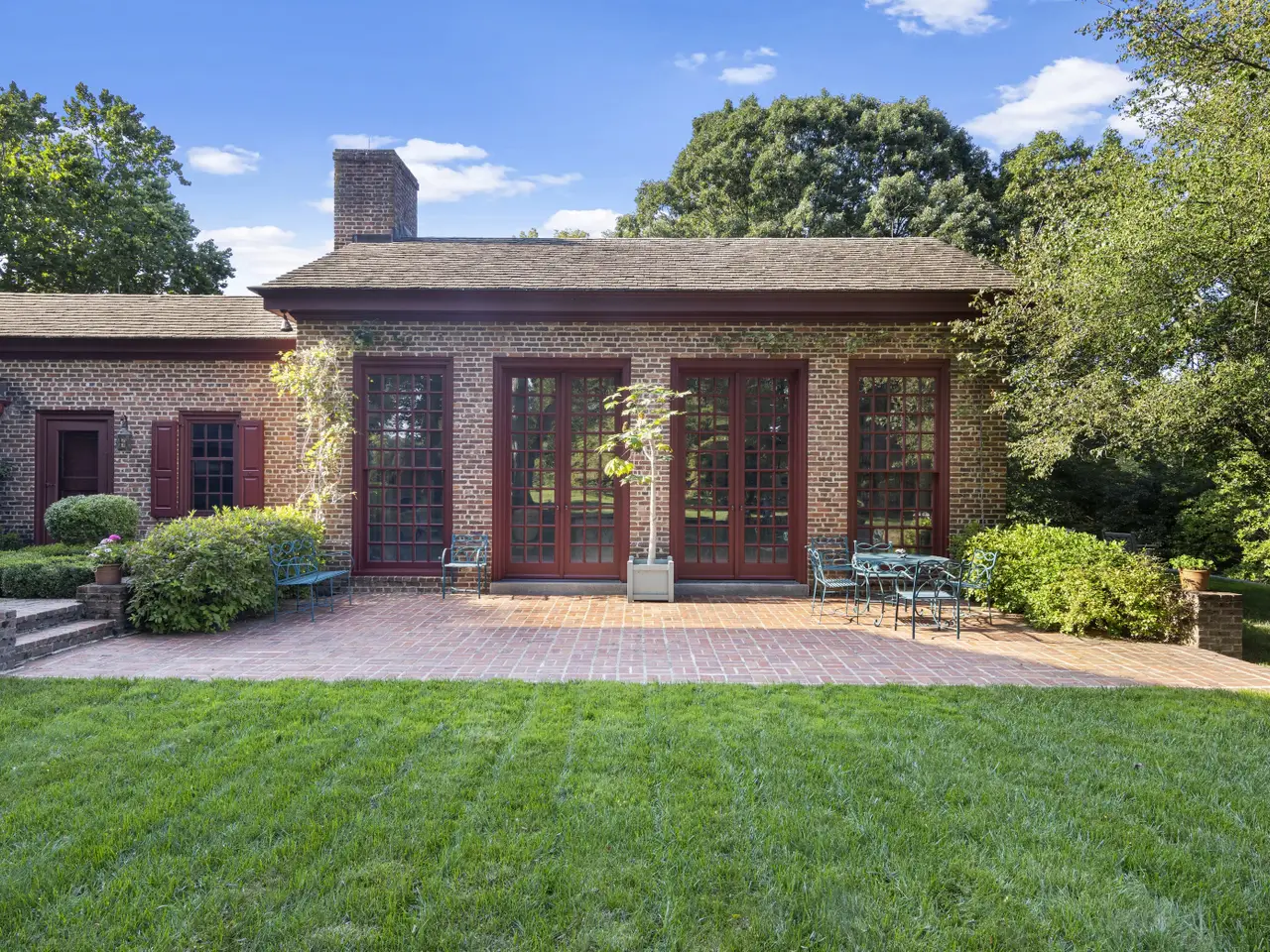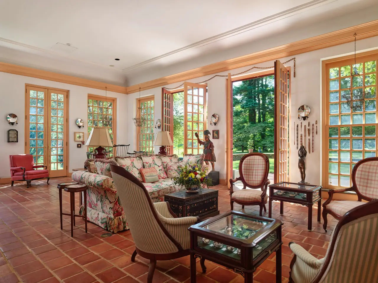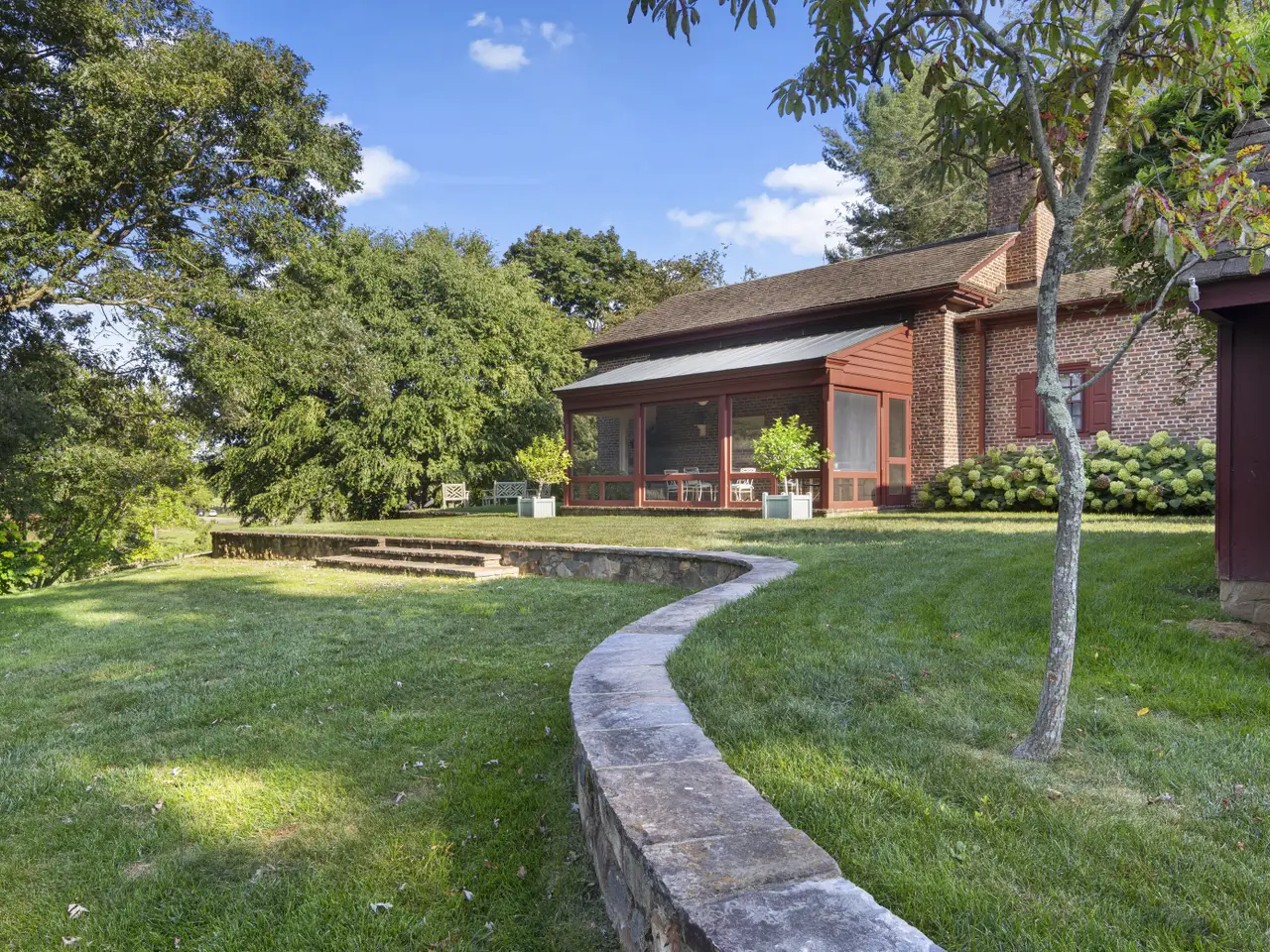Located on 22 bucolic acres in Chester County, the William Peters House offers authentic 18th-century features with cleverly camouflaged 21st-century amenities. Originally constructed in 1750 and now on the market for the first time in 60 years, this prestigious Georgian-style home awaits the next stewards in its long and storied history. At 6,046 square feet, the three-story home offers six bedrooms and four and a half baths, a cozy library with built-in bookcases, a formal dining and living room, and an original 18th-century kitchen with a large, walk-in fireplace. A total of nine wood-burning fireplaces have been meticulously restored, and the more modern amenities, such as the multi-zoned heating and cooling systems and a full house generator, are all invisible under the house's historic interior. Original wood paneling throughout includes unusual recessed panels, restored mantels, and multiple built-in display cupboards, while the windows contain wavy, handmade glass. Outlets and registers are hidden in baseboards and light switches concealed below chair rails for an authentic 18th-century experience. In 1963, the Georgian-style house was relocated and lovingly reconstructed to exact replication by Judith and John Herdeg. John, who served on the board of Winterthur for 50 years, and Judith worked with local historical architect Albert Kruse. Listed on the National Register of Historic Places, the property includes period-appropriate gardens of native plants, planned in coordination with world-renowned Belgian landscape architect Francois Goffinet. In 1994, an orangerie was added with soaring ceilings, heated terracotta floors, a large fireplace, and 10-foot tall glass-paneled doors that allow in great swells of natural light. An ideal space for entertaining, the orangerie contains an intimate bar, French doors that open into a sunken lawn, and a brick patio with a screened-in porch overlooking alighted allee of maple trees to the north. More recent additions to the house include an expansive, renovated chef's kitchen with a large island and curved bank of cabinets offering amenities to accommodate modern living, including abundant storage. A room-sized cedar closet and an elevator with basement, first and second floor access additional modern conveniences. Despite its august provenance, the Herdegs' raised an active family who thrived in the secluded setting. Homeowners and visitors enter the property via a large, floral iron entrance gate, then proceed down the long, curved drive. An eight-foot-tall deer fence protects the native gardens and encircles some forest and a back stream. Within the fencing there is ample space for a horse barn and livestock grazing.