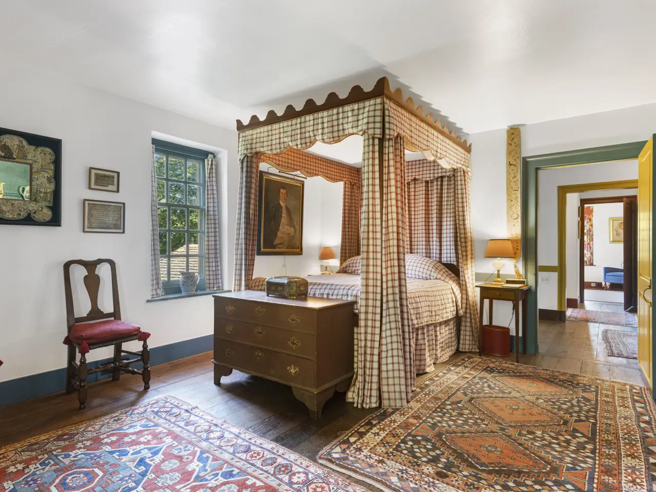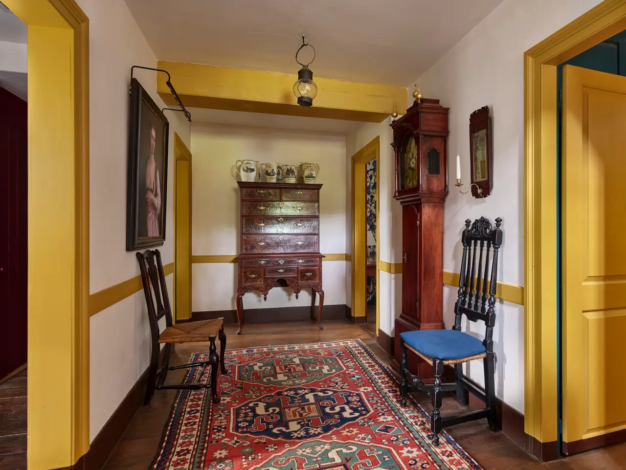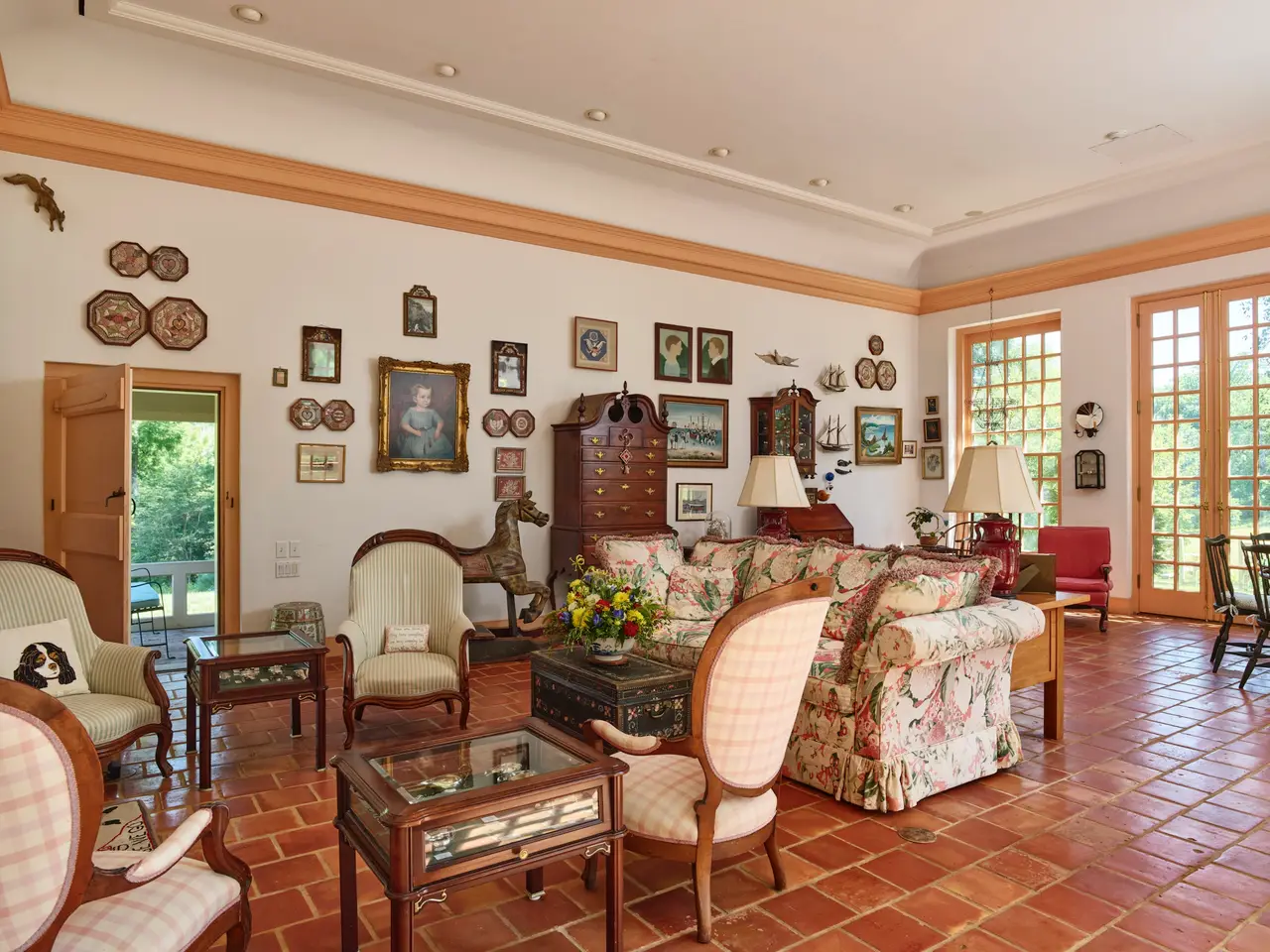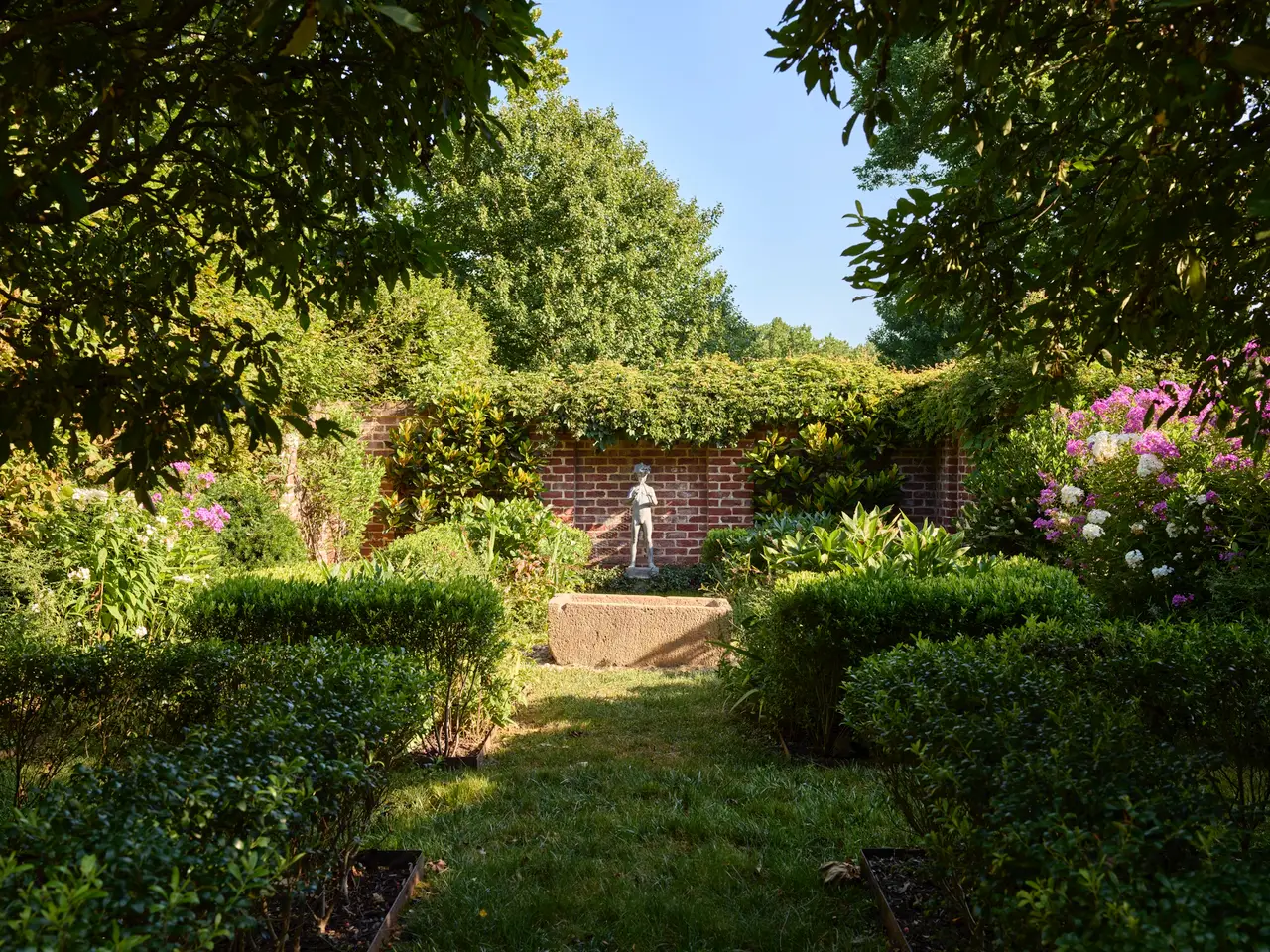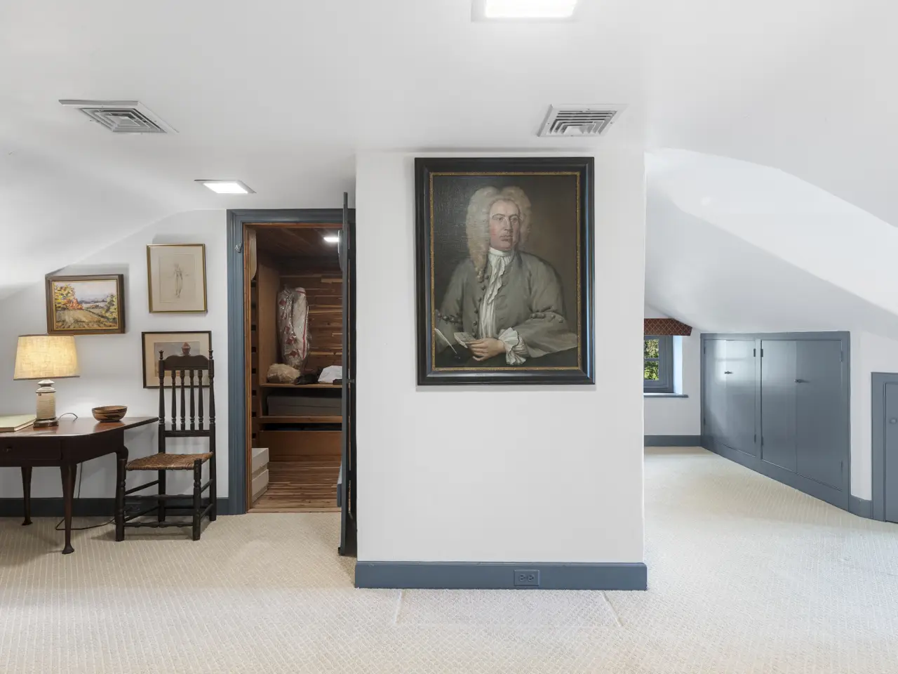 Located on 22 bucolic acres in Chester County, the William Peters House offers authentic 18th-century features with cleverly camouflaged 21st-century amenities. Originally constructed in 1750 and now on the market for the first time in 60 years, this prestigious Georgian-style home awaits the next stewards in its long and storied history. At 6,046 square feet, the three-story home offers six bedrooms and four and a half baths, a cozy library with built-in bookcases, a formal dining and living room, and an original 18th-century kitchen with a large, walk-in fireplace. A total of nine wood-burning fireplaces have been meticulously restored, and the more modern amenities, such as the multi-zoned heating and cooling systems and a full house generator, are all invisible under the house's historic interior. Original wood paneling throughout includes unusual recessed panels, restored mantels, and multiple built-in display cupboards, while the windows contain wavy, handmade glass. Outlets and registers are hidden in baseboards and light switches concealed below chair rails for an authentic 18th-century experience. In 1963, the Georgian-style house was relocated and lovingly reconstructed to exact replication by Judith and John Herdeg. John, who served on the board of Winterthur for 50 years, and Judith worked with local historical architect Albert Kruse. Listed on the National Register of Historic Places, the property includes period-appropriate gardens of native plants, planned in coordination with world-renowned Belgian landscape architect Francois Goffinet. In 1994, an orangerie was added with soaring ceilings, heated terracotta floors, a large fireplace, and 10-foot tall glass-paneled doors that allow in great swells of natural light. An ideal space for entertaining, the orangerie contains an intimate bar, French doors that open into a sunken lawn, and a brick patio with a screened-in porch overlooking alighted allee of maple trees to the north. More recent additions to the house include an expansive, renovated chef's kitchen with a large island and curved bank of cabinets offering amenities to accommodate modern living, including abundant storage. A room-sized cedar closet and an elevator with basement, first and second floor access additional modern conveniences. Despite its august provenance, the Herdegs' raised an active family who thrived in the secluded setting. Homeowners and visitors enter the property via a large, floral iron entrance gate, then proceed down the long, curved drive. An eight-foot-tall deer fence protects the native gardens and encircles some forest and a back stream. Within the fencing there is ample space for a horse barn and livestock grazing.