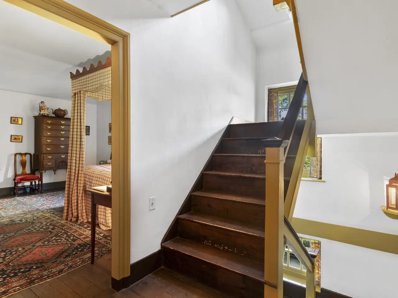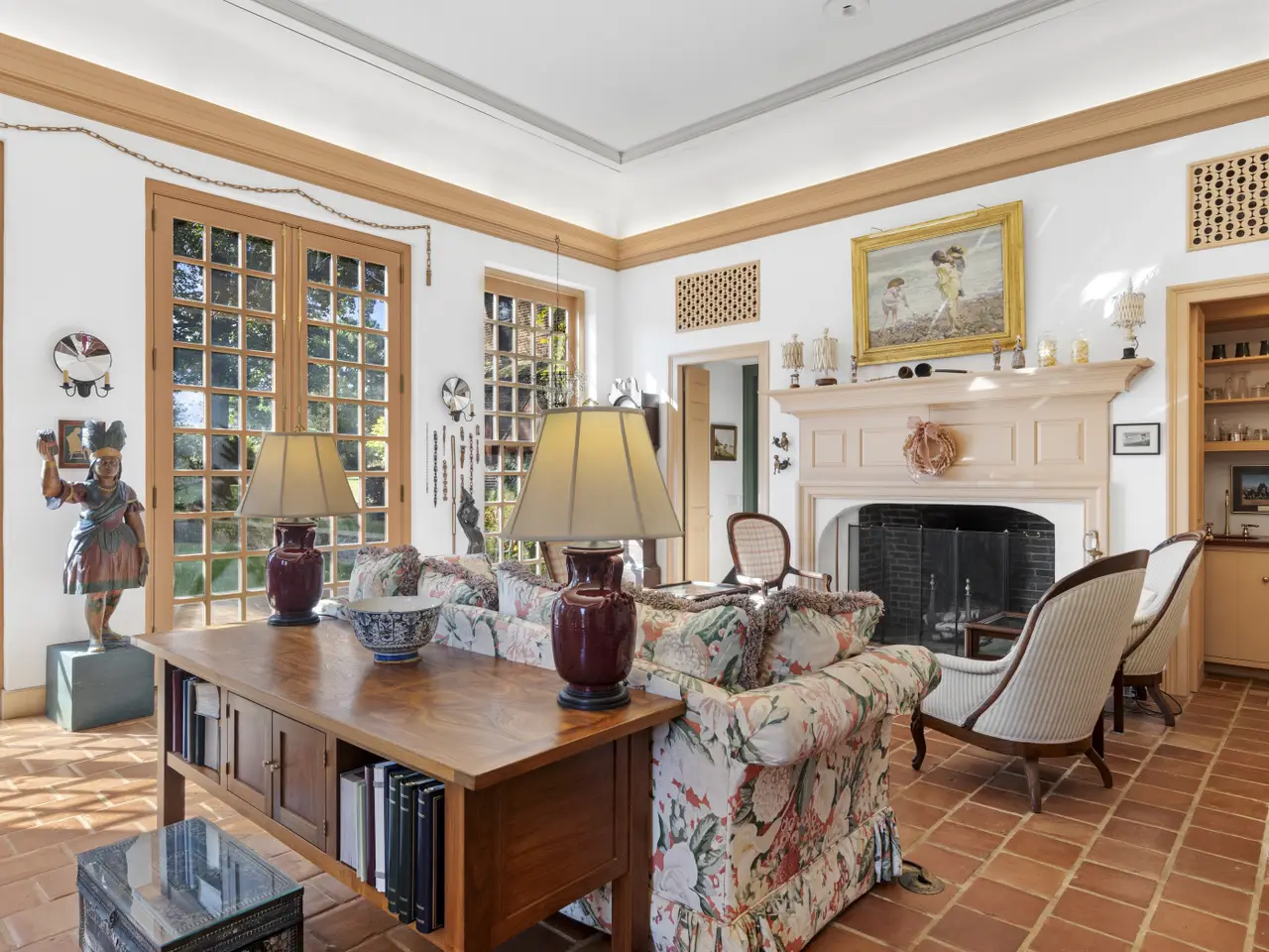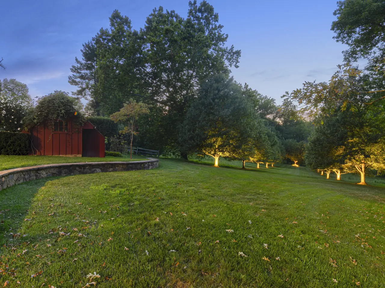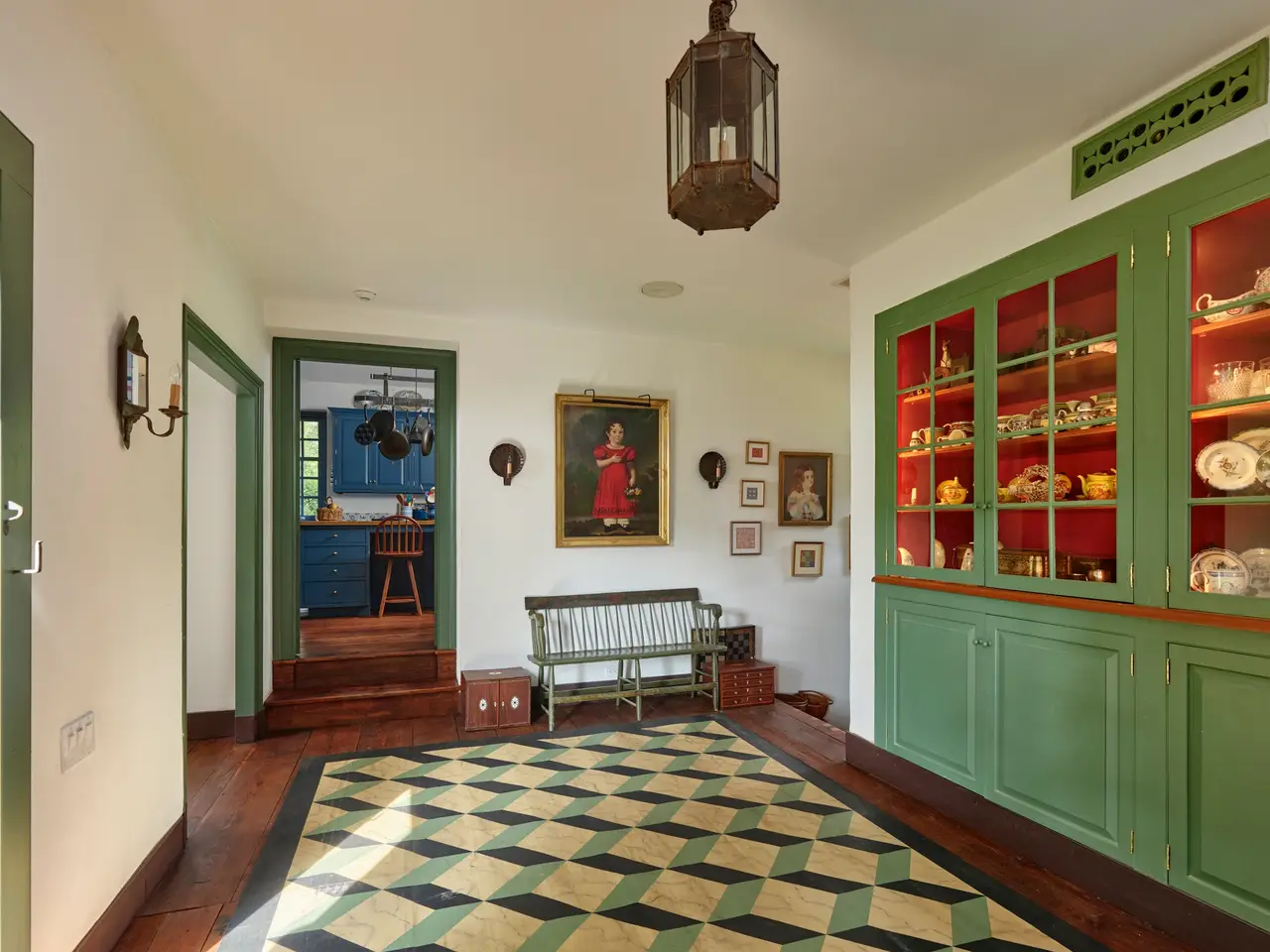 Located on 22 bucolic acres in Chester County, the William Peters House offers authentic 18th-century features with cleverly camouflaged 21st-century amenities. Originally constructed in 1750 and now on the market for the first time in 60 years, this prestigious Georgian-style home awaits the next stewards in its long and storied history. At 6,046 square feet, the three-story home offers six bedrooms and four and a half baths, a cozy library with built-in bookcases, a formal dining and living room, and an original 18th-century kitchen with a large, walk-in fireplace. A total of nine wood-burning fireplaces have been meticulously restored, and the more modern amenities, such as the multi-zoned heating and cooling systems and a full house generator, are all invisible under the house's historic interior. Original wood paneling throughout includes unusual recessed panels, restored mantels, and multiple built-in display cupboards, while the windows contain wavy, handmade glass. Outlets and registers are hidden in baseboards and light switches concealed below chair rails for an authentic 18th-century experience. In 1963, the Georgian-style house was relocated and lovingly reconstructed to exact replication by Judith and John Herdeg. John, who served on the board of Winterthur for 50 years, and Judith worked with local historical architect Albert Kruse. Listed on the National Register of Historic Places, the property includes period-appropriate gardens of native plants, planned in coordination with world-renowned Belgian landscape architect Francois Goffinet. In 1994, an orangerie was added with soaring ceilings, heated terracotta floors, a large fireplace, and 10-foot tall glass-paneled doors that allow in great swells of natural light. An ideal space for entertaining, the orangerie contains an intimate bar, French doors that open into a sunken lawn, and a brick patio with a screened-in porch overlooking alighted allee of maple trees to the north. More recent additions to the house include an expansive, renovated chef's kitchen with a large island and curved bank of cabinets offering amenities to accommodate modern living, including abundant storage. A room-sized cedar closet and an elevator with basement, first and second floor access additional modern conveniences. Despite its august provenance, the Herdegs' raised an active family who thrived in the secluded setting. Homeowners and visitors enter the property via a large, floral iron entrance gate, then proceed down the long, curved drive. An eight-foot-tall deer fence protects the native gardens and encircles some forest and a back stream. Within the fencing there is ample space for a horse barn and livestock grazing.