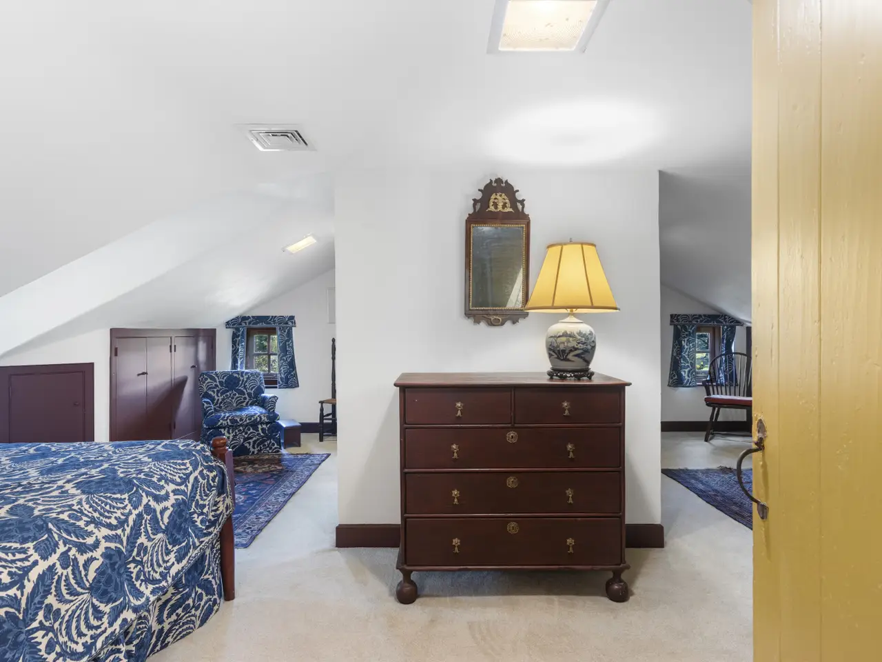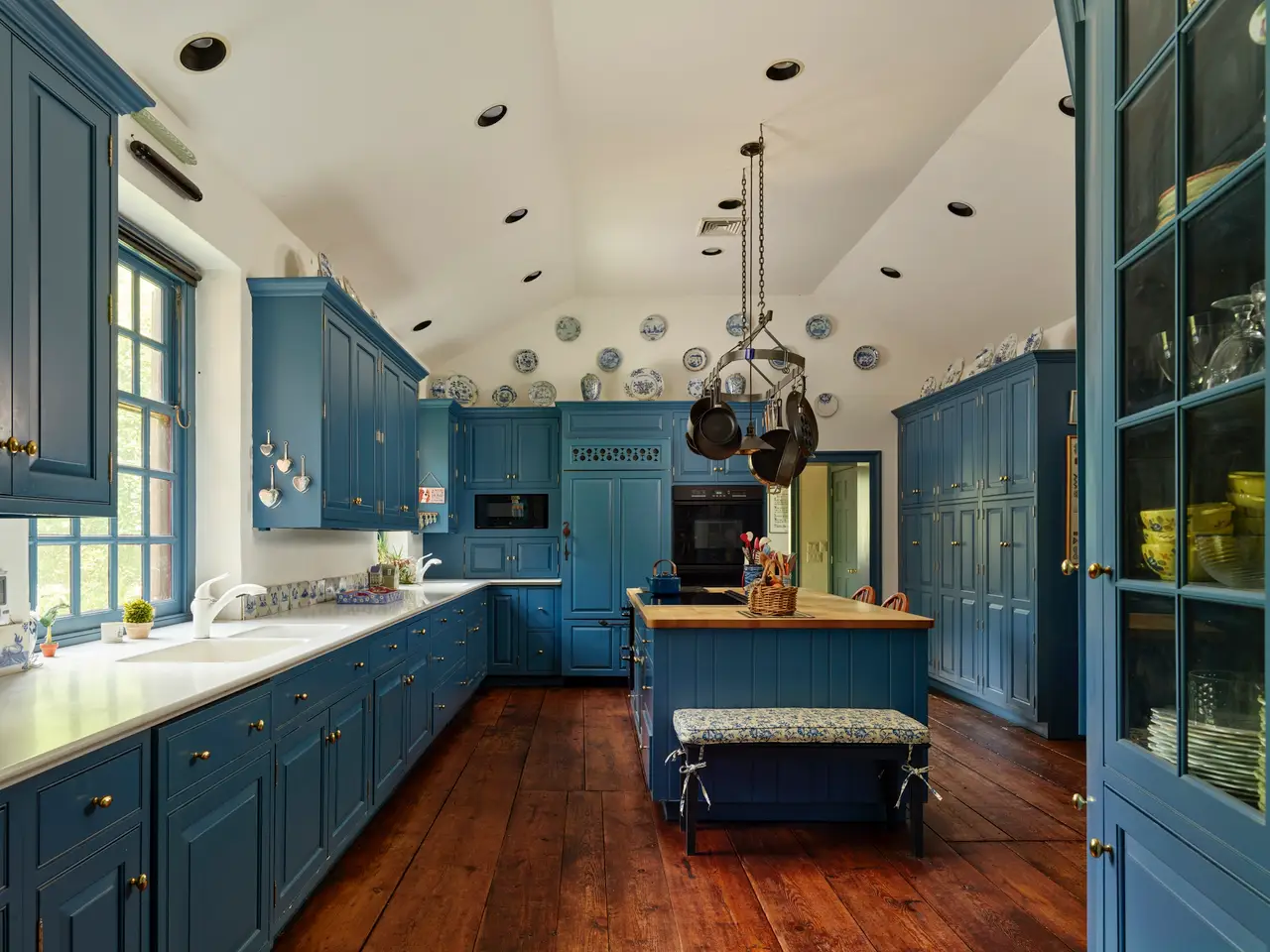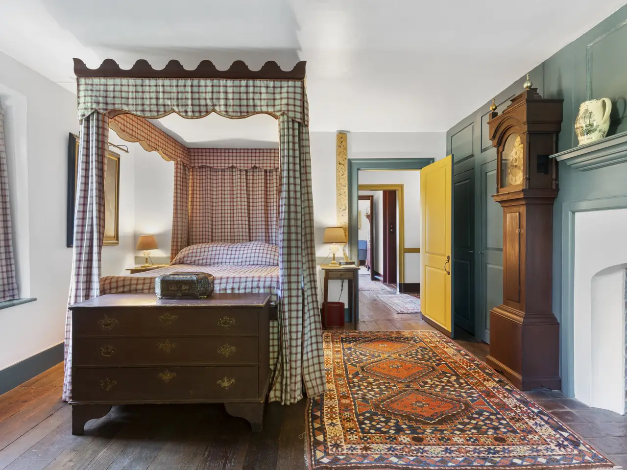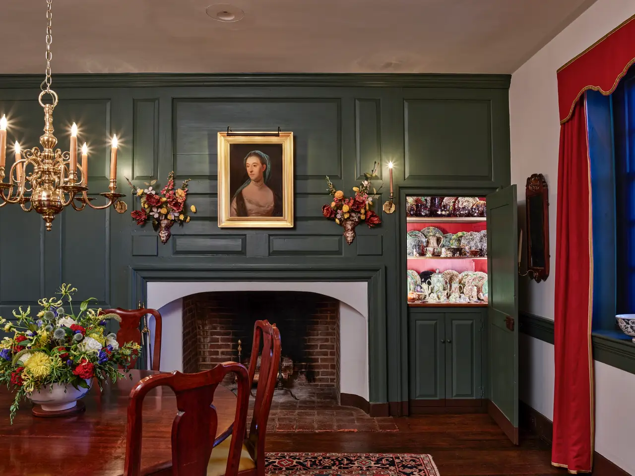 Located on 22 bucolic acres in Chester County, the William Peters House offers authentic 18th-century features with cleverly camouflaged 21st-century amenities. Originally constructed in 1750 and now on the market for the first time in 60 years, this prestigious Georgian-style home awaits the next stewards in its long and storied history. At 6,046 square feet, the three-story home offers six bedrooms and four and a half baths, a cozy library with built-in bookcases, a formal dining and living room, and an original 18th-century kitchen with a large, walk-in fireplace. A total of nine wood-burning fireplaces have been meticulously restored, and the more modern amenities, such as the multi-zoned heating and cooling systems and a full house generator, are all invisible under the house's historic interior. Original wood paneling throughout includes unusual recessed panels, restored mantels, and multiple built-in display cupboards, while the windows contain wavy, handmade glass. Outlets and registers are hidden in baseboards and light switches concealed below chair rails for an authentic 18th-century experience. In 1963, the Georgian-style house was relocated and lovingly reconstructed to exact replication by Judith and John Herdeg. John, who served on the board of Winterthur for 50 years, and Judith worked with local historical architect Albert Kruse. Listed on the National Register of Historic Places, the property includes period-appropriate gardens of native plants, planned in coordination with world-renowned Belgian landscape architect Francois Goffinet. In 1994, an orangerie was added with soaring ceilings, heated terracotta floors, a large fireplace, and 10-foot tall glass-paneled doors that allow in great swells of natural light. An ideal space for entertaining, the orangerie contains an intimate bar, French doors that open into a sunken lawn, and a brick patio with a screened-in porch overlooking alighted allee of maple trees to the north. More recent additions to the house include an expansive, renovated chef's kitchen with a large island and curved bank of cabinets offering amenities to accommodate modern living, including abundant storage. A room-sized cedar closet and an elevator with basement, first and second floor access additional modern conveniences. Despite its august provenance, the Herdegs' raised an active family who thrived in the secluded setting. Homeowners and visitors enter the property via a large, floral iron entrance gate, then proceed down the long, curved drive. An eight-foot-tall deer fence protects the native gardens and encircles some forest and a back stream. Within the fencing there is ample space for a horse barn and livestock grazing.