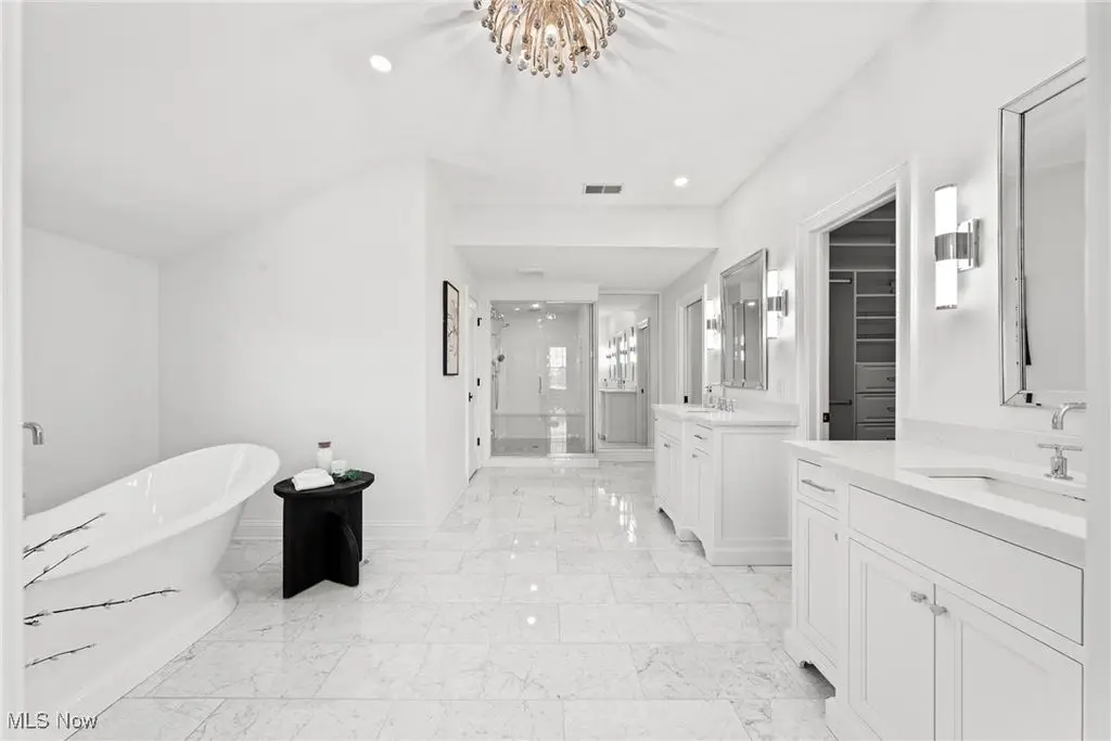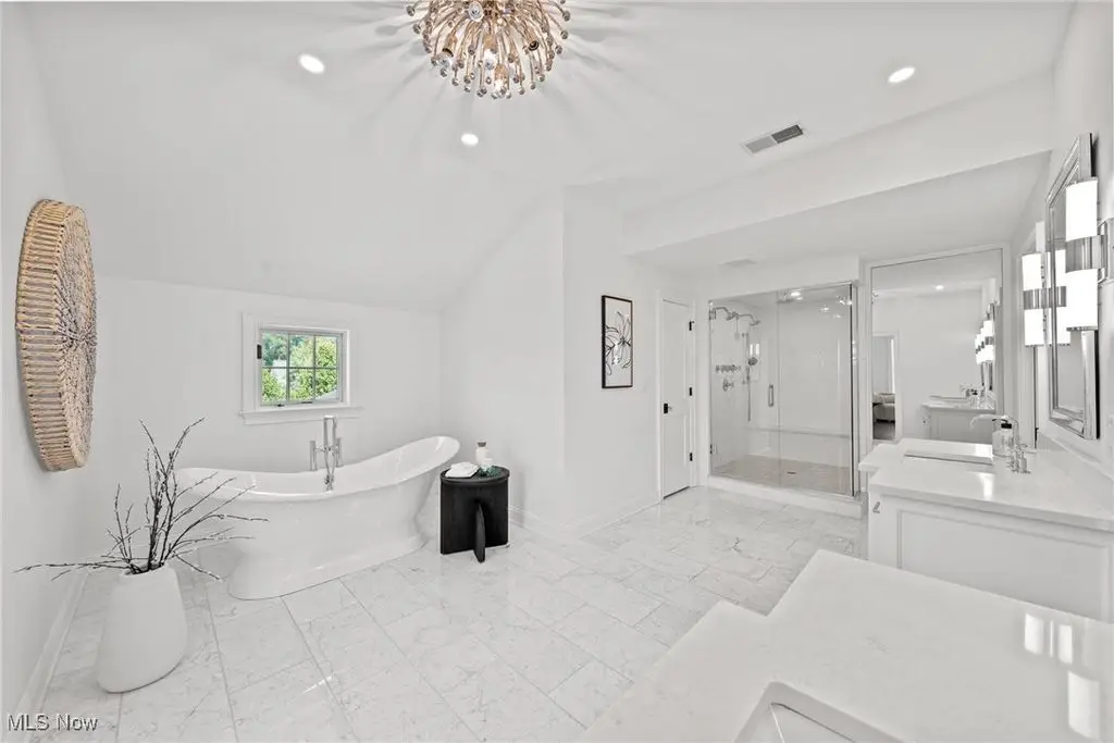One of the most iconic and spectacular historic homes in Chagrin Falls, the "Sears-Adams," house was built in 1845 and has been restored to utter perfection! Just steps from the Village and located in sought after Falls Walk, this Greek Revival home is architecturally stunning. Prominently positioned on a knoll with sweeping views, this home has every conceivable luxury coupled with a fabulous floor plan! Upon entering the home, one will notice the exquisite millwork and rich hardwood floors. At the heart of this home is the gourmet dream kitchen which is simply second to none! Custom cabinetry, high end stainless steel appliances, a huge center-island, and marble countertops are highlights! Open to the kitchen is the fabulous great room which features a coffered ceiling and handsome fireplace. Summers will be enjoyed in the screened in porch with fireplace that opens onto the expansive deck. There is a library with an additional fireplace, banquet size dining room, and a lovely lounge area with built-in bar. The second floor is accessed via a front and rear staircase and has 4 large bedrooms, 3 full bathrooms, and a laundry room. The owner's suite is the definition of luxury with the most magnificent marble bathroom and walk-in dressing room. Additionally, there is a finished walkout lower level, huge mud room, and 3+ car attached garage. Every inch of this house has been redone from top to bottom including mechanicals, windows, plumbing, electrical, and more. This property is located within the Falls Walk HOA which includes landscaping and snow removal. Here is your chance to own one of the truly coveted and sought after historic homes in beautiful Chagrin Falls.