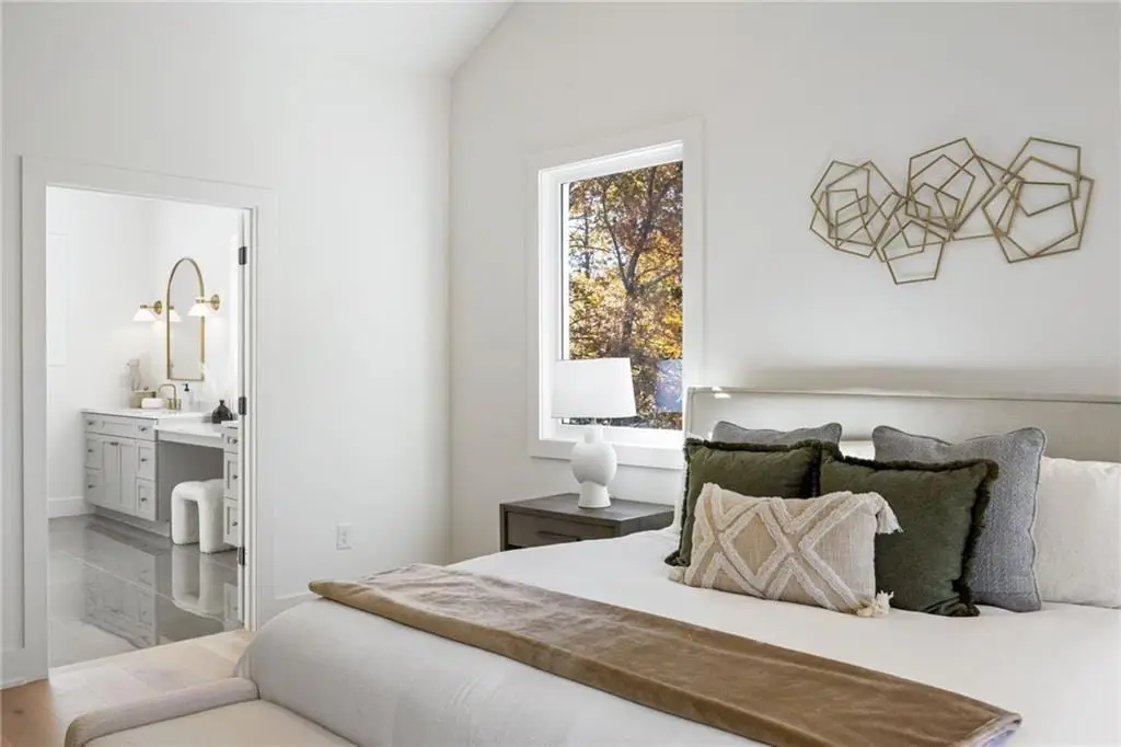 Welcome to 1887 Harts Mill Road. Striking curb appeal showcases a stained wood double front doors and windows that wrap around two sides of the front study. Enter into a wide foyer with lighting and trim accents that flows into a beautiful and open layout with incredible afternoon sunlight. The main level offers a high-end kitchen with a 48 gas range, microwave drawer, cabinet matching panels on the refrigerator and dishwasher, a long seating island, custom vent hood and designer lighting. Enjoy loads of cabinet space and a big walk-in pantry. A dedicated and cozy breakfast area is positioned perfectly for backyard views and warming sunlight. The kitchen is open to the living room accented by a quartz and stained wood surround fireplace and a spacious dining room displaying a custom bar. Dual slider doors disappear into the back wall creating a huge opening that walks directly onto the covered back porch with a 2nd fireplace and seating for outdoor dining, living and more. The covered porch views the backyard which is just a few steps away. In addition to the main level study, there is a bed and bath suite tucked away very privately on this floor. A mudroom with custom cabinet and powder room with a custom, reeded panel vanity and wall-mounted faucet complete the main level. Upstairs, the owner's suite offers a vaulted ceiling and spa bath set up, distinct tile finishes, freestanding tub, 2 walk-in closets and double vanities with additional make up counter space. 3 additional en-suite bedrooms offer customized bathroom finishes. Expand your living space with a nearly 2000 square foot daylight basement! Easy access to incredible dining options, shopping, grocery, highways, Chamblee Rail Trail and Sexton Woods tennis courts, playground and other amenities!