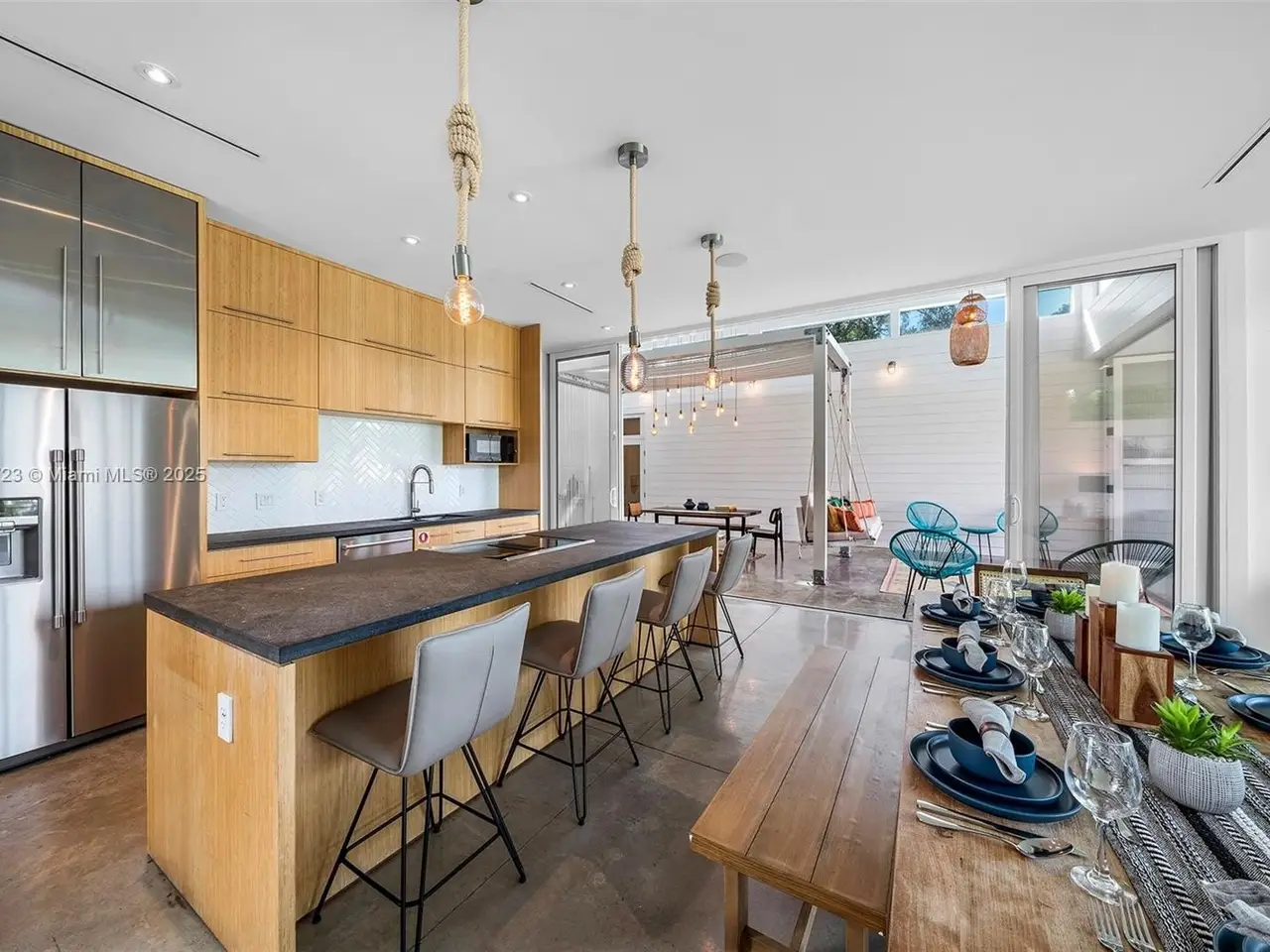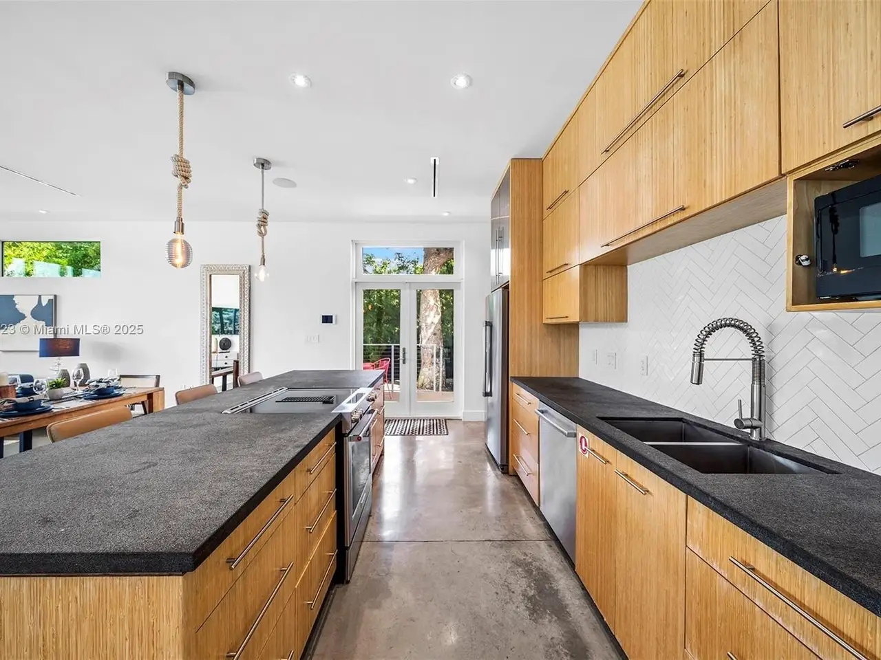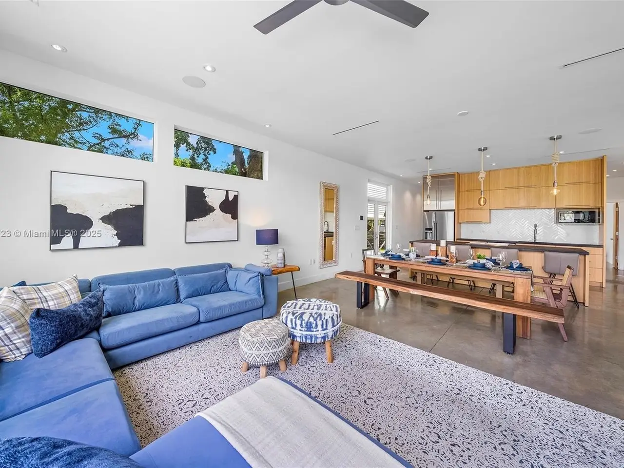 Villa Tulum is a waterfront retreat in Miami’s sought-after Upper East Side, where modern comfort blends with a tropical lifestyle. Located on an 11,000 square foot lot, this 2017-built estate is designed for seamless indoor-outdoor living. The main residence offers an airy open-plan living and dining area, sleek kitchen, four bedrooms, and a breezy covered patio. A detached two-story guest house includes a two bedroom loft with kitchen and bath plus maid’s quarters and storage. Outdoors, lush gardens surround an infinity pool overlooking the Miami River, complemented by a new private dock for boats up to 65 feet with direct access to the bay. Ready to move in, this property is perfect for those seeking a tranquil primary home, a vacation escape, or a smart investment in a rapidly growing neighborhood.