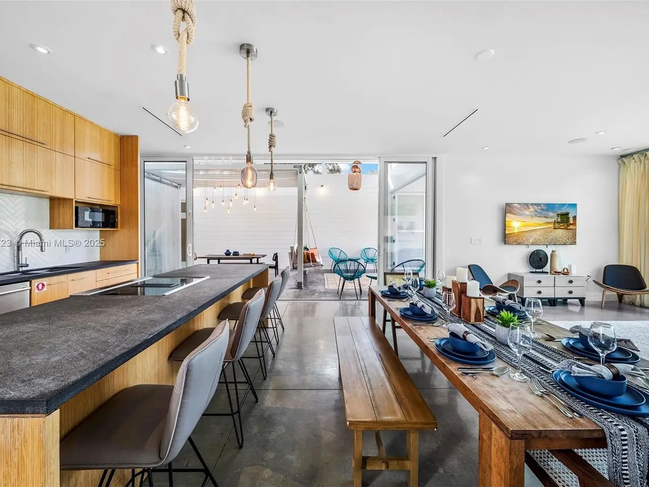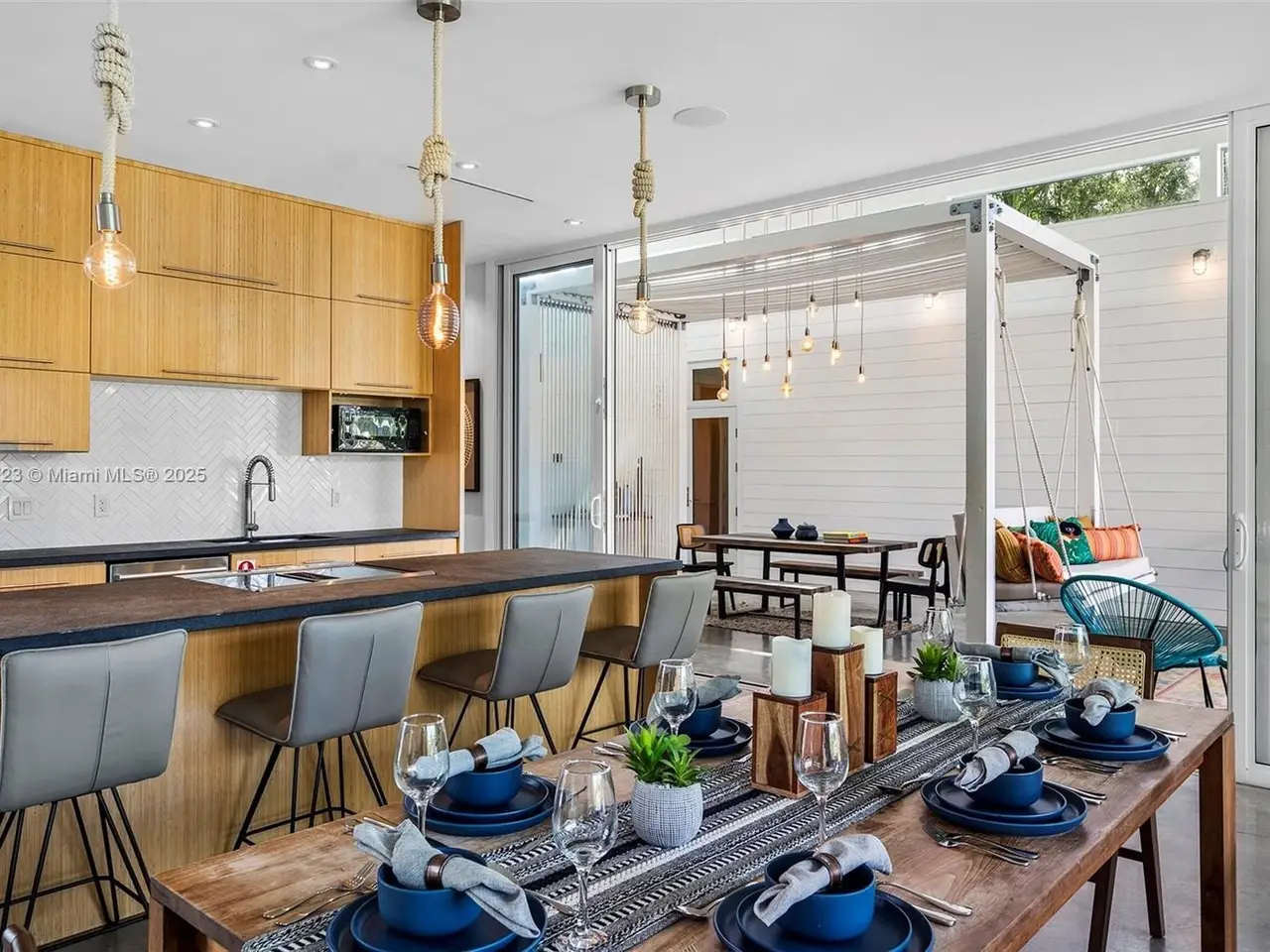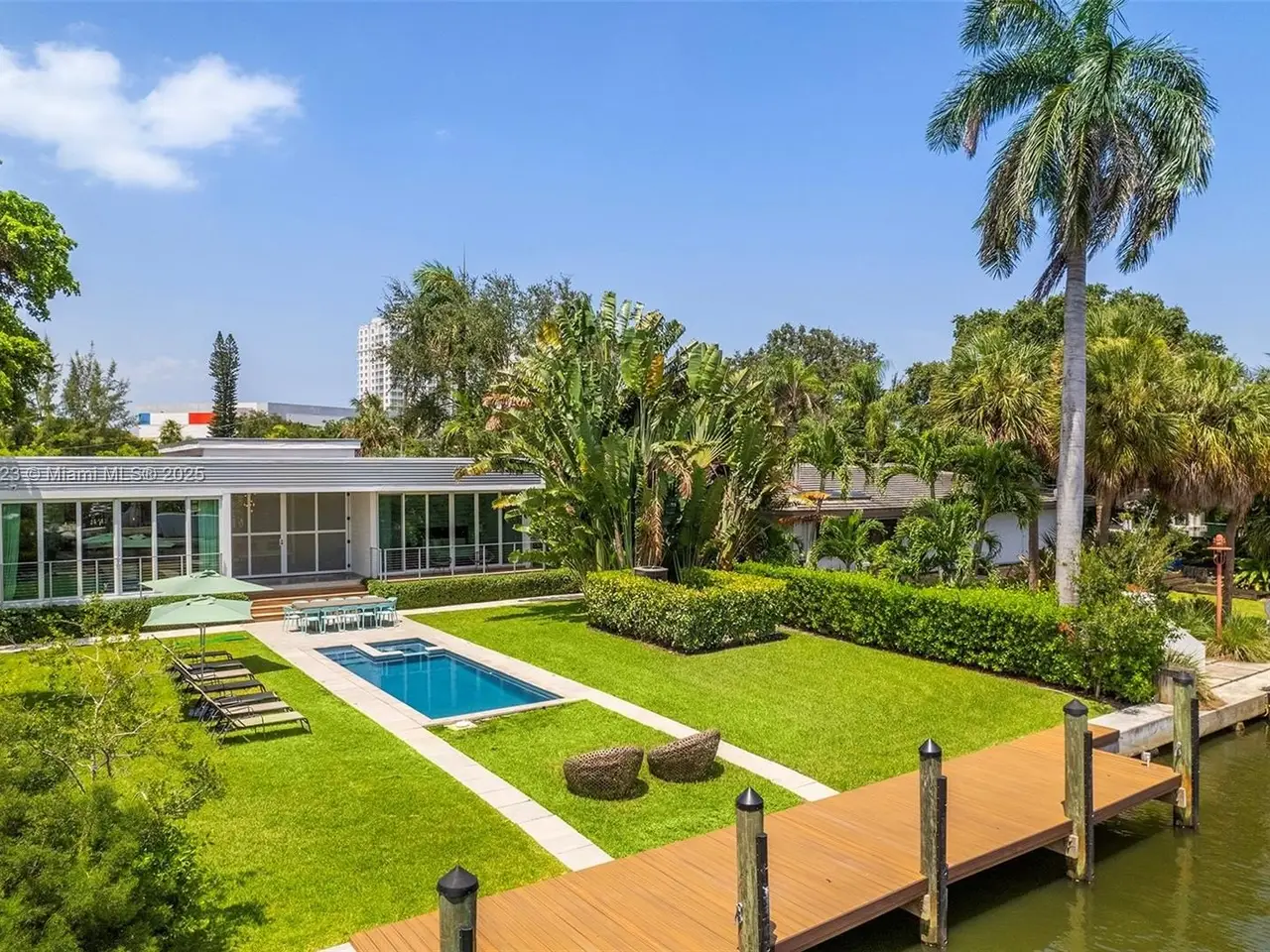 Villa Tulum is a waterfront retreat in Miami’s sought-after Upper East Side, where modern comfort blends with a tropical lifestyle. Located on an 11,000 square foot lot, this 2017-built estate is designed for seamless indoor-outdoor living. The main residence offers an airy open-plan living and dining area, sleek kitchen, four bedrooms, and a breezy covered patio. A detached two-story guest house includes a two bedroom loft with kitchen and bath plus maid’s quarters and storage. Outdoors, lush gardens surround an infinity pool overlooking the Miami River, complemented by a new private dock for boats up to 65 feet with direct access to the bay. Ready to move in, this property is perfect for those seeking a tranquil primary home, a vacation escape, or a smart investment in a rapidly growing neighborhood.