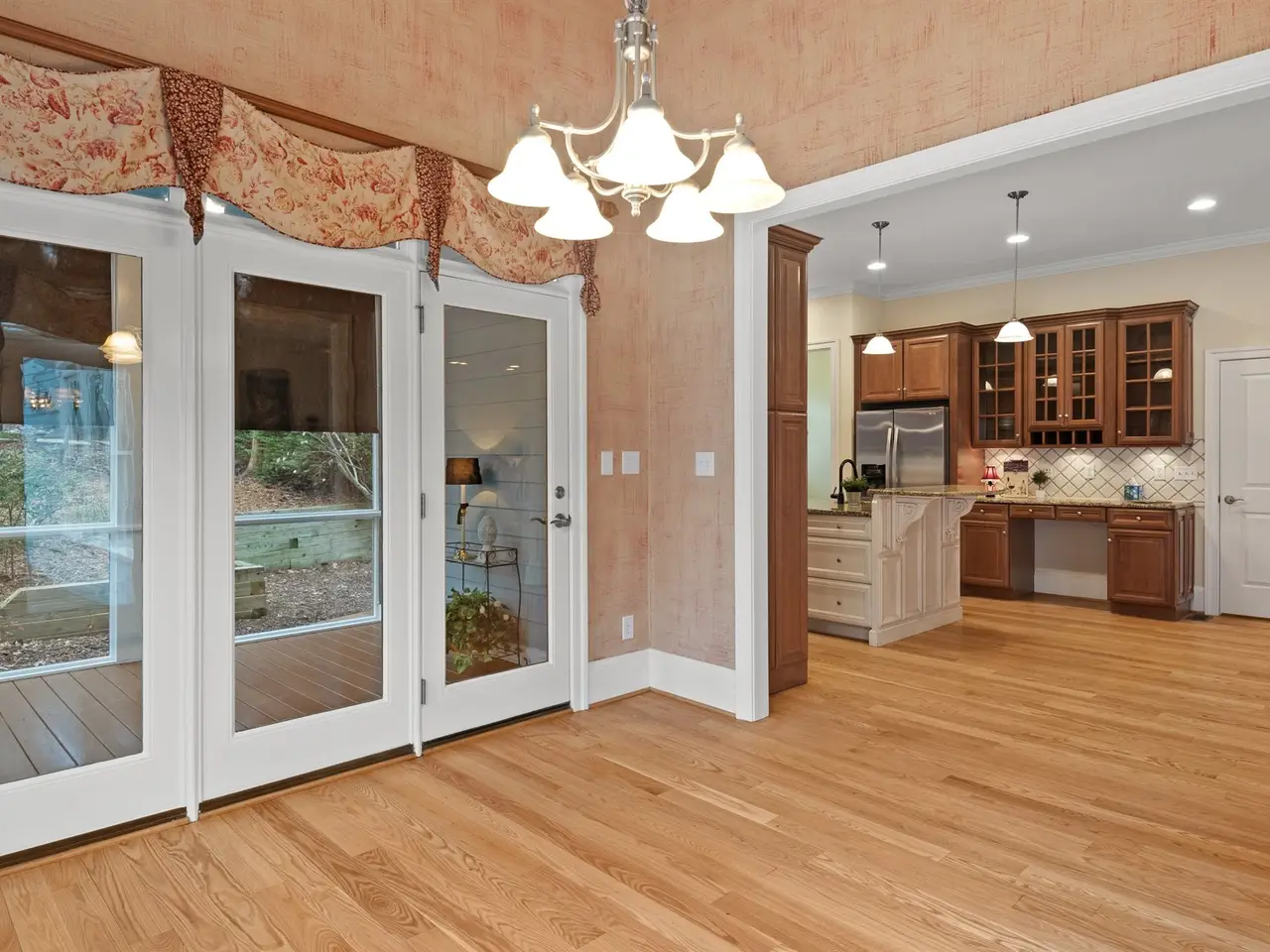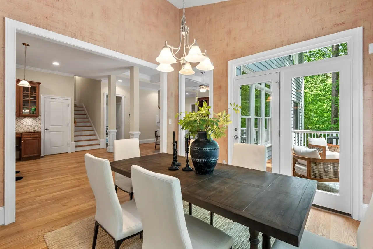 This executive home, conveniently located just outside the city limits of Chapel Hill, offers the perfect blend of luxury and tranquility with the added benefit of lower taxes. Designed for both comfort and entertainment, the spacious media room seamlessly connects to an adjacent billiard room featuring a stylish bar with a built-in wine cooler, creating the perfect setting for gatherings and relaxation. A beautifully appointed library, a gourmet kitchen with gas range, double ovens, granite countertops, a walk-in pantry, and a sunlit breakfast room add to the charm. An oversized bonus room and a private office offer additional flexibility for work and leisure. With seven generously sized bedrooms, many with ensuite baths, this home provides ample space for family and guests. The owner's retreat can accommodate a quaint sitting area and features a spa-like bath with clawfoot tub, glass shower, water closet and dream walk-in closet. Outdoor living is just as impressive, featuring a wrap-around front porch, a screened porch, and an oversized deck that offers the feel of a private, tree-top retreat. Mature trees surround the property, enhancing both privacy and serenity. A three-car garage, along with additional parking, ensures ample space for vehicles and storage. This well-maintained home has been recently updated with a new roof, new carpet, refinished hardwood floors, and fresh paint inside and out, making it truly move-in ready. Surrounded by scenic walk and bike trails, parks, restaurants, and a variety of activities, this home offers both convenience and a vibrant lifestyle all just minutes from the heart of Chapel Hill.