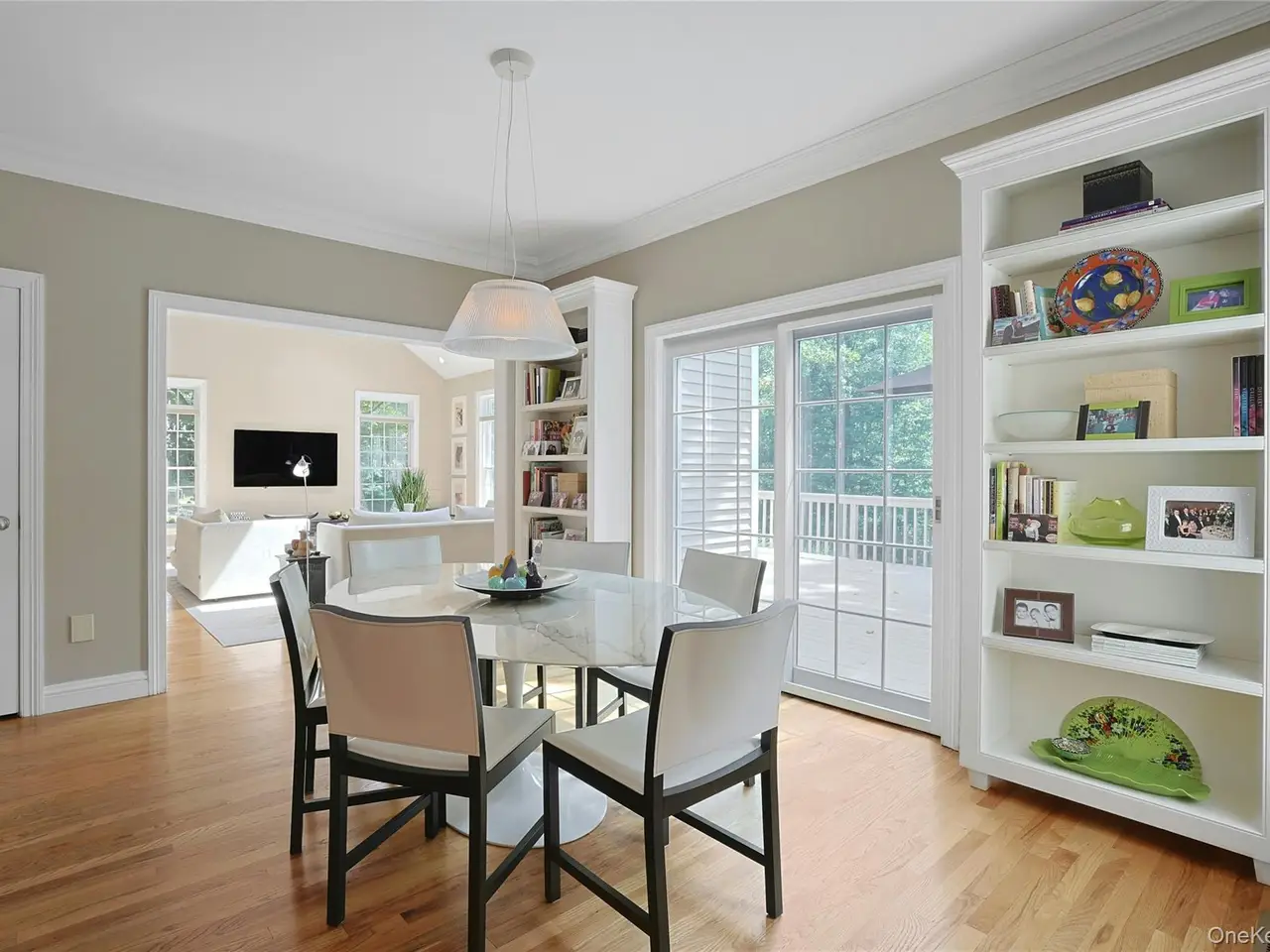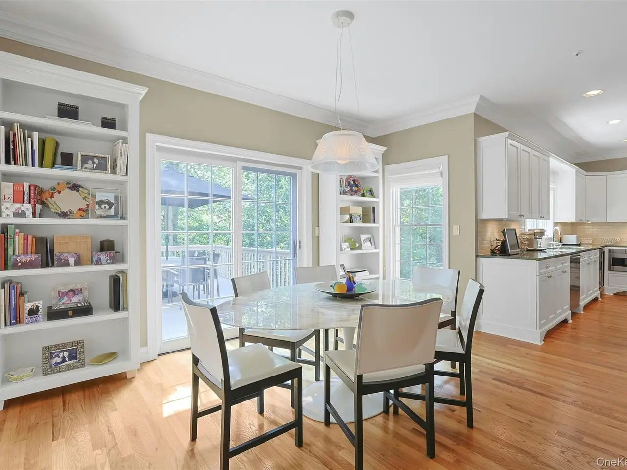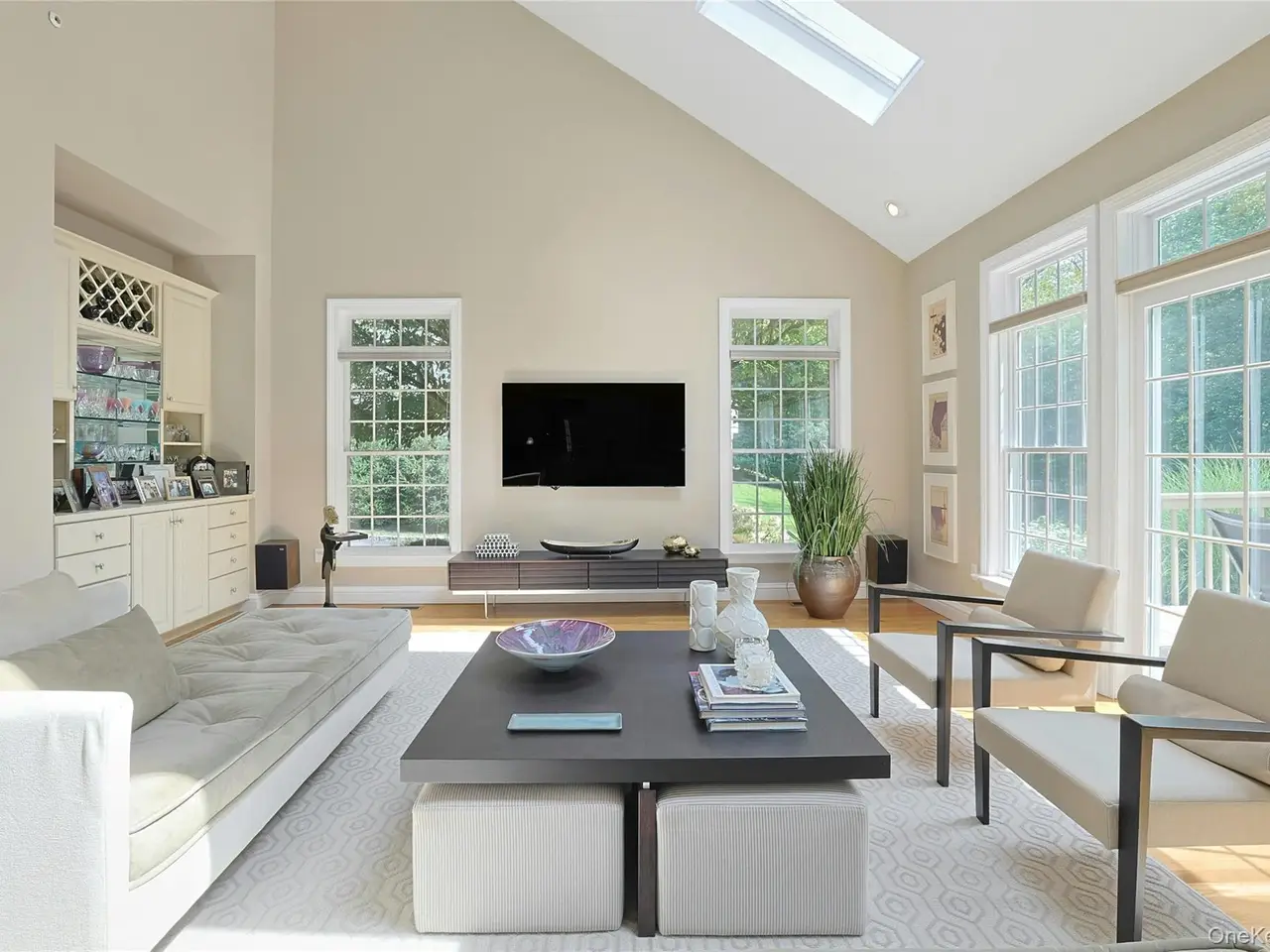 Living like a four-bedroom, this gracious and spacious three-bedroom plus bonus room modern Colonial shines from top to bottom from the meticulous maintenance and updates by the original owners. A welcoming, grand two-story entry introduces a large formal living room brightly illuminated by large front- and side-facing windows, recessed lighting and a wood-burning fireplace. French doors add light from the adjoining sun room, which can easily serve as a home office. Host feasts or fests in the traditional front-facing formal dining room. The kitchen is a cornucopia of delights: custom white wood cabinetry, natural stone countertops, subway tile backsplash, massive center island with plenty of prep space and a breakfast bar for quick dining, and high-end stainless-steel appliances including two Wolf electric convection ovens, a Wolf induction cooktop, large Sub-Zero refrigerator/freezer, built-in Sharp microwave, Miele dishwasher and Sub-Zero wine fridge. Open to the family room is the adjoining breakfast area with built-ins and sliding glass door to the deck for easy BBQ or dining alfresco. Large, rear, south-facing windows and a sliding glass door to the deck beam natural light throughout the spacious family room with its skylit cathedral ceiling, built-in cabinetry and back staircase ascending to the upper level. A powder room and a well-organized laundry/mud room with access to the three-car garage complete the main level. A sweeping staircase ascends to the upper level, home to three bedrooms, three bathrooms and a bonus room, which include the luxurious front-to-back primary suite endowed with a king-sized bedroom, an adjoining sitting or exercise area, walk-in closet, and an elegant, private, skylit, spa-like ensuite bath with wide, two-sink vanity, spa tub, separate shower stall, and radiant heat; two comfortably-sized bedrooms include a front-facing bedroom with two closets and private ensuite bath with shower over bathtub, and a rear-facing bedroom with door to hall bath with two-sink vanity and shower over bathtub; and an extra-large bonus room with closet, which can serve as a den, guest quarters, lounge, office, study, etc. All upper-level rooms have hardwood flooring beneath wall-to-wall carpeting. Designed for entertainment, the finished walk-out lower level showcases two large recreation spaces with a sliding glass door to a large deck, an exercise area (possible in-law or au pair space) and a full bath with shower. Solid, poured concrete foundation, recently updated mechanicals, an automatic backup generator and a newer roof to top it off. Lovely landscaping envelopes the residence. A velvety green lawn rolls out in the back yard, ideal for a catch or lounging about. Sited on a private cul-de-sac just a short drive to schools, shops, town and train. A gem!