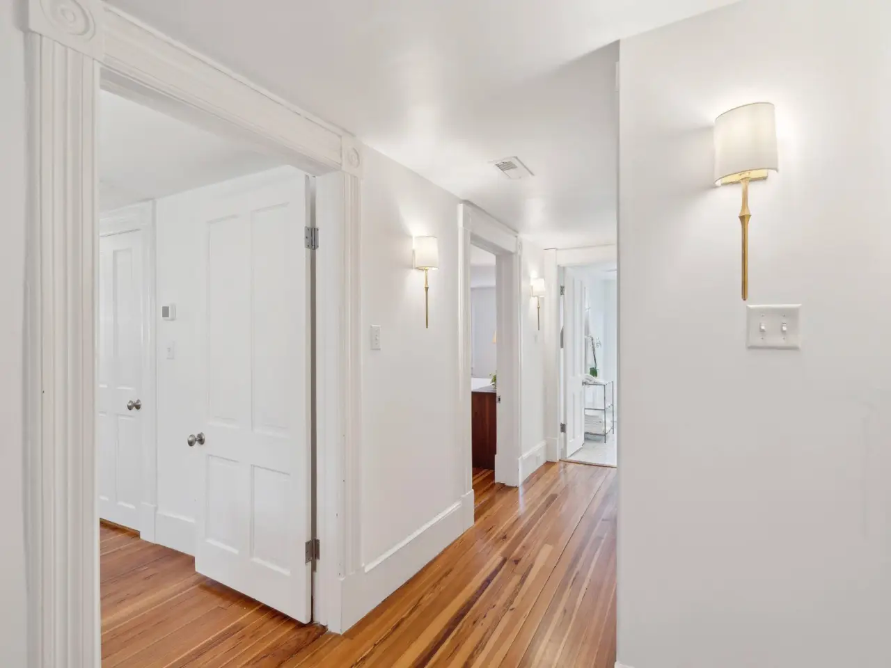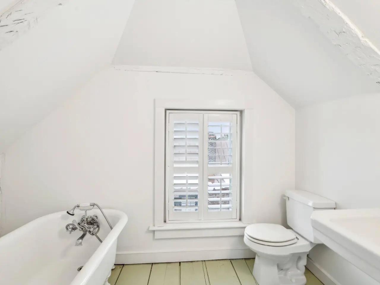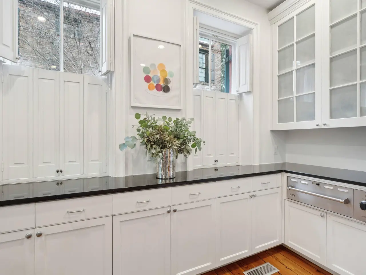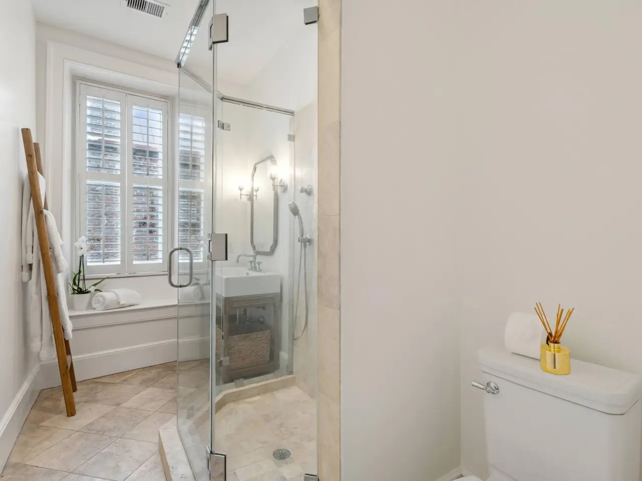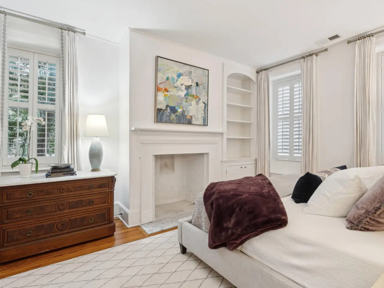 This beautifully restored 18th century solid masonry row house is the perfect perch within this walkable, picturesque, high-ground (X Zone) neighborhood. Handsomely presented, with luxurious finishes, flexible use space all overlooking surrounding courtyards and gardens. French doors lead to the private rear garden from the main level living room. The second level offers the primary suite, complete with an adjacent library for nighttime reading or enjoying a movie before bed. The third level features two comfortable guest bedrooms with a shared hall bath. On the fourth level, enjoy the additional space for an office or exercise area, or use as a fourth bedroom and bath.