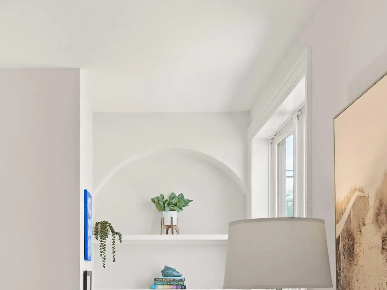 Built-in dry bar with wooden shelves