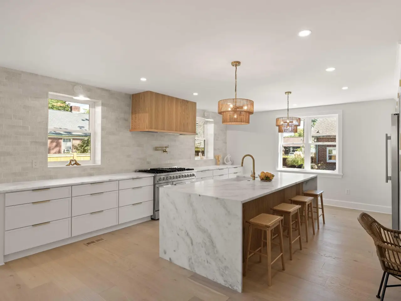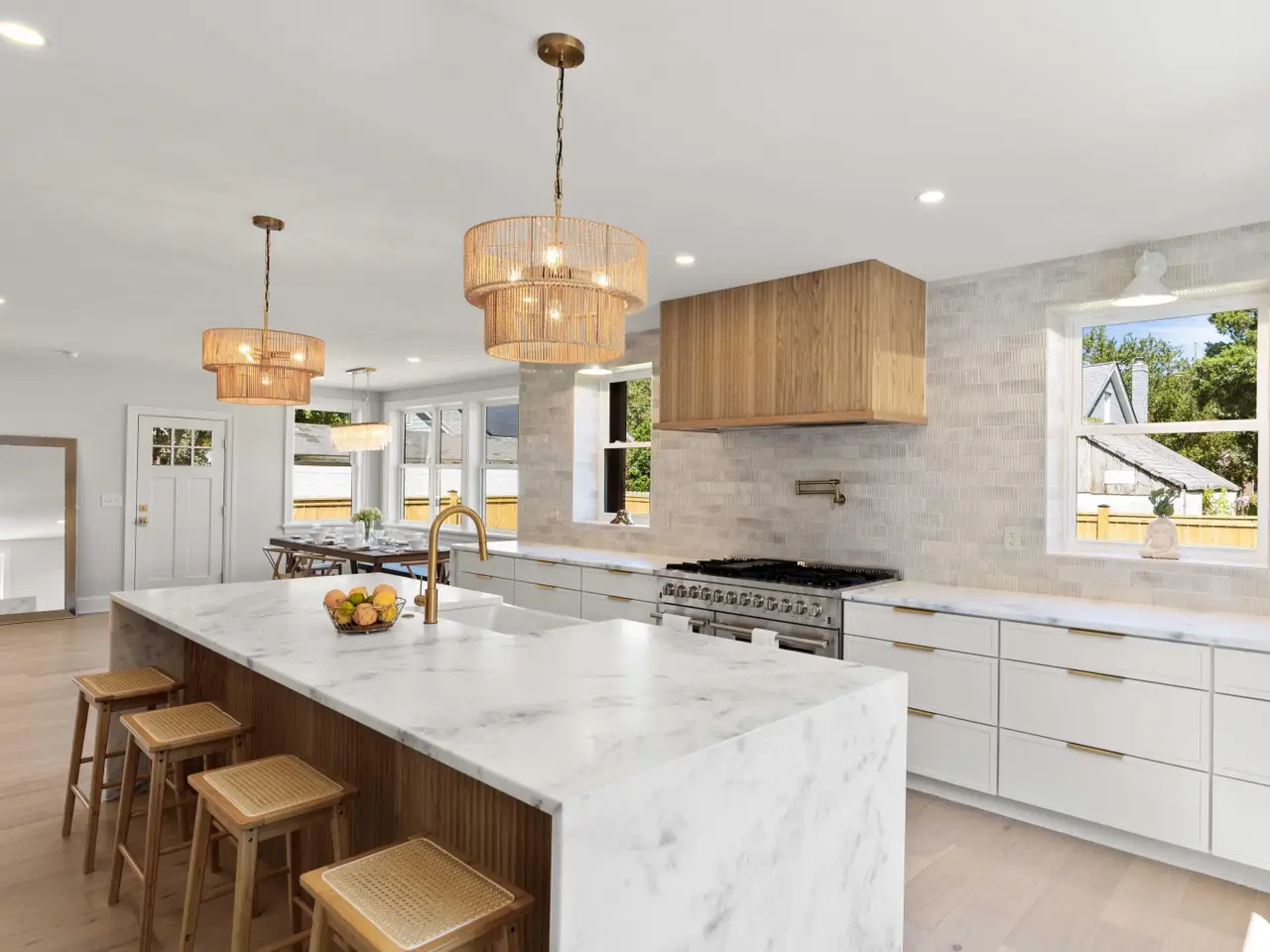 Marble waterfall kitchen island