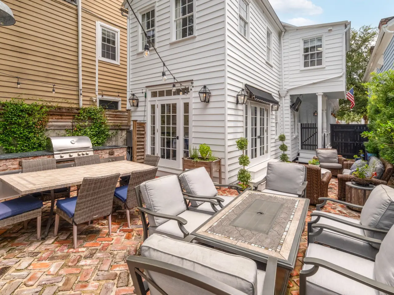 Timeless Elegance Meets Modern Luxury in the Heart of Historic Charleston on the highly desirable Warren Street. Step into the perfect fusion of Charleston's rich heritage and contemporary sophistication with this masterfully renovated 1800s Charleston Single home. Nestled one of the most idyllic and walkable locations on the Peninsula, this residence offers the rare combination of serene city living with immediate access to celebrated shops, restaurants, and cultural landmarks. From the moment you arrive, the home exudes Southern charm. A handcrafted wrought iron gate(a striking piece from the legendary blacksmith Philip Simmons) welcomes you to a spacious lot with coveted off-street parking, framed by lush landscaping and shaded piazzas ideal for enjoying breezes year-round. Inside, historic character and refined finishes abound. Original hardwood floors and antique fireplaces echo the home's storied past, while a fully reimagined open floor plan offers effortless modern living. Custom-built cabinetry, refined lighting fixtures, and curated architectural details create an ambiance that is both elegant and inviting. The main level features a formal living room AND a gracious great room complete with a stylish wet bar and built in mini fridge-perfect for entertainingand seamlessly flows into a show-stopping chef's kitchen outfitted with natural stone countertops, high-end stainless steel appliances, a gas range, built-in water filtration system, and a generous central island with counter seating. Thoughtful upgrades such as new custom built-ins add functional beauty throughout. Hidden pantries and storage are cleverly constructed in the staircase for a surprising surplus of storage. Ascend one of the two staircases to discover a luxurious primary suite that rivals the finest boutique hotels. The spa-like ensuite bath is a tranquil retreat, showcasing a two separate vanities and a stylish spa tile design. Spacious closets and storage with integrated laundry adds convenience and style. Two additional bedrooms offers flexibility for a home office, guest suite, or media room. Designed for both intimate daily living and elegant entertaining, the home is bathed in natural light thanks to custom-crafted French entry doors. Additional highlights include a tankless water heater, updated plumbing and electrical, and multiple staircases enhancing flow and accessibility. Outdoor living is elevated to an art form with a bespoke brick patio and full outdoor kitchen, complete with built-in grilling station, ideal for hosting alfresco dinners or relaxing under the stars. A private fenced yard and charming garden shed complete this outdoor oasis. Located just blocks from Marion Square, the Medical District, and Charleston's finest dining destinations, and only minutes from The Battery, Sullivan's Island, and Charleston International Airport, this extraordinary home offers a lifestyle of unmatched convenience, history, and refinement. This is more than a home - it's a piece of Charleston's soul, beautifully reimagined for modern living. Don't miss this rare opportunity.
