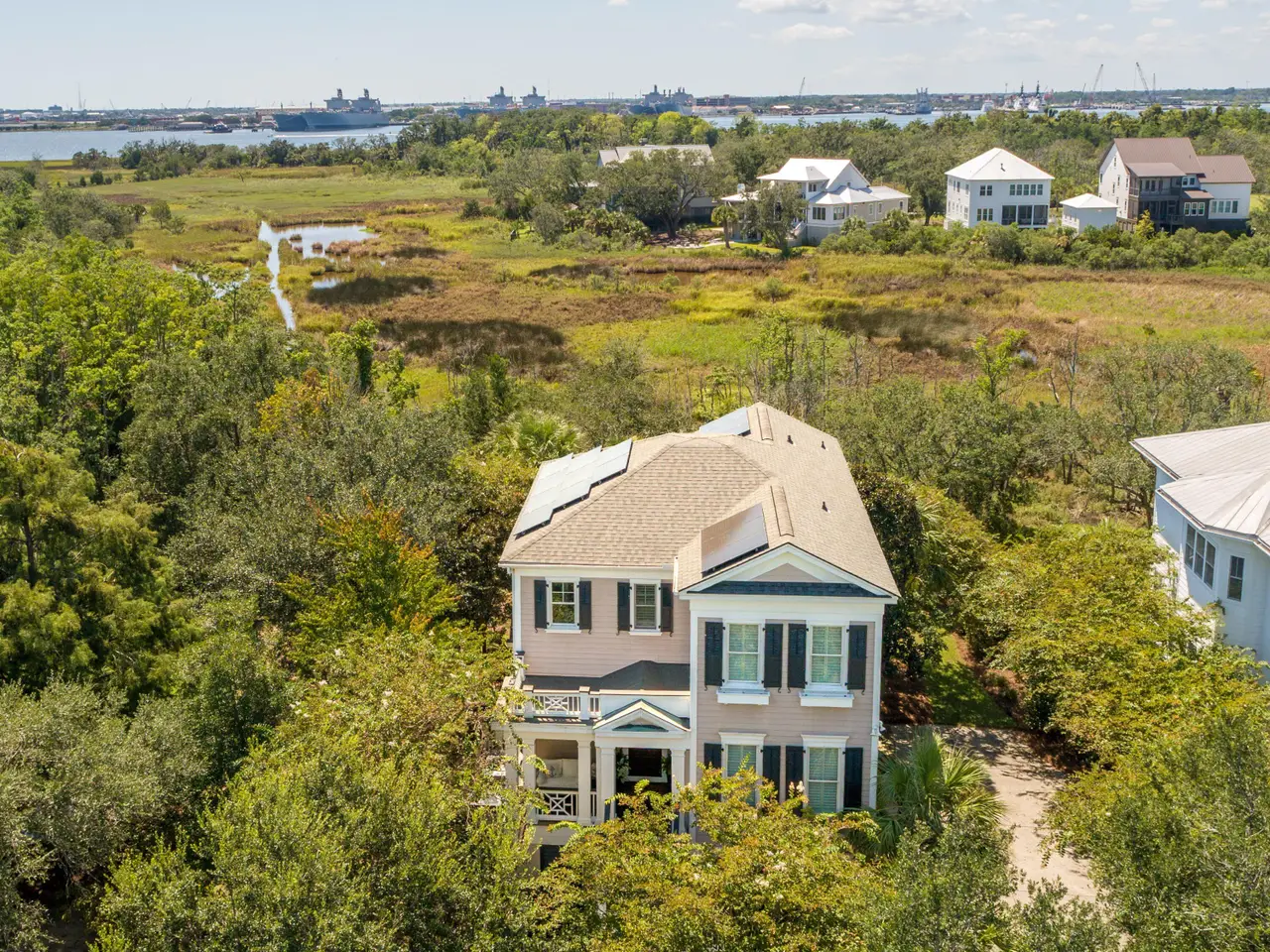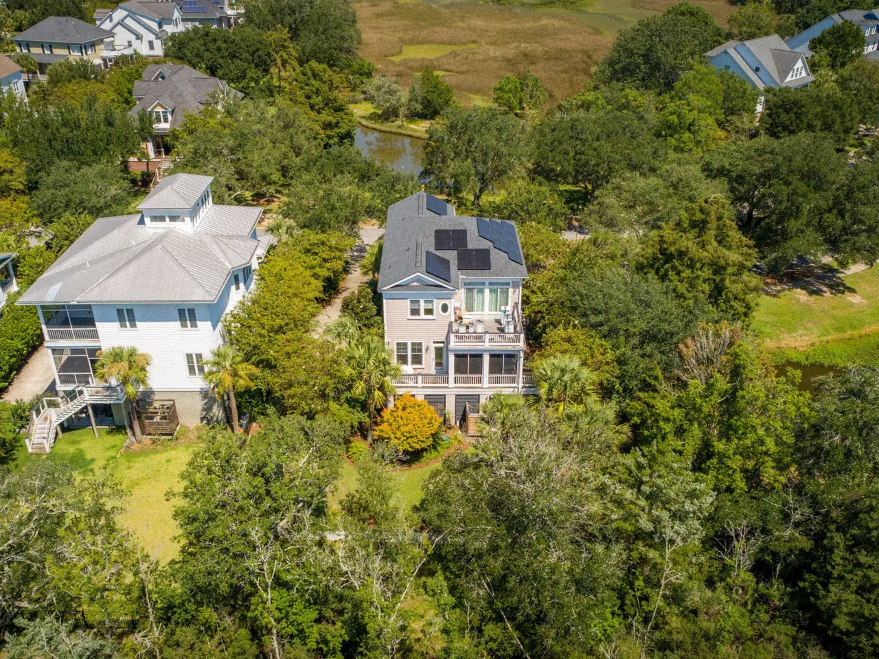 Welcome to 935 Cochran Street -- a beautiful, elevatored home surrounded by the natural beauty of Daniel Island. If you're searching for privacy and peaceful Lowcountry views, this one's for you. With long marsh vistas from both the front and back, and picturesque ponds nearby, every angle brings the outdoors in. Start your day with coffee on the front porch as birds drift by, or unwind in the evening with a cocktail on the large, screened porch or grilling deck -- it's relaxation at its finest.Step inside and you're greeted by an open, light-filled dining room framed by windows that capture the views. The lovely kitchen features new quartz countertops and opens seamlessly to the living room, complete with a gas fireplace and sliding doors that lead to the screened porch.Upstairs, the spacious primary suite offers a private retreat with access to a large porch overlooking the marsh- the perfect place to watch the sunset. Two additional bedrooms share a well-appointed hall bath. Built on elevated construction, the home offers a two-car garage and generous storage underneath. Outside, the magazine-worthy backyard is beautifully landscaped and includes a charming patio and outdoor shower. Thoughtful upgrades include fully paid-for solar panels, offering both energy efficiency and peace of mind for years to come. Enjoy scenic nature trails, a quiet corner of Daniel Island, and access to three community swimming pools. Don't miss this opportunity to make 935 Cochran Street your new home.