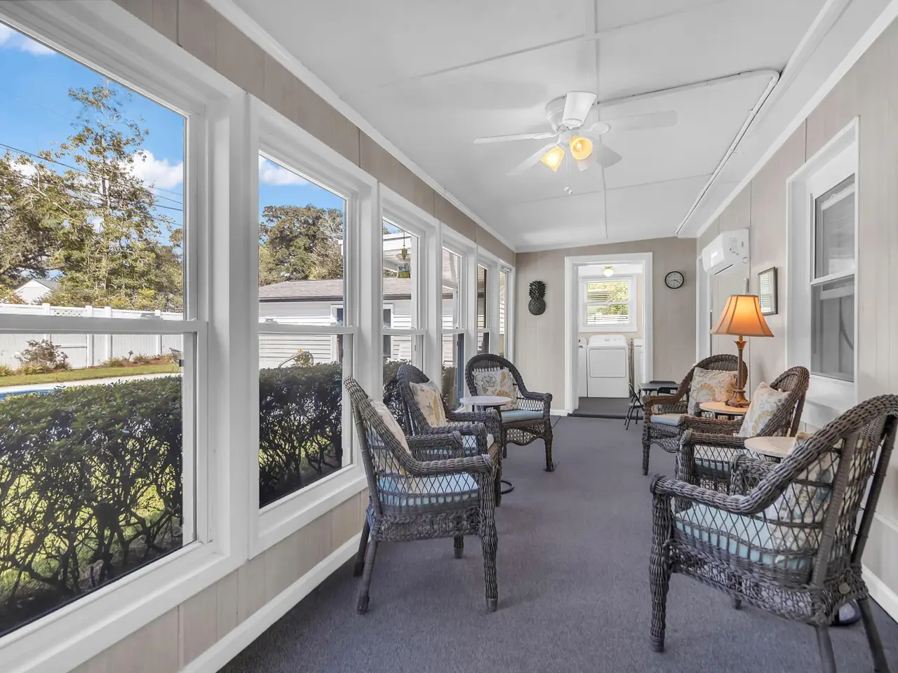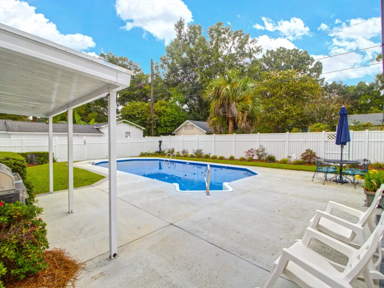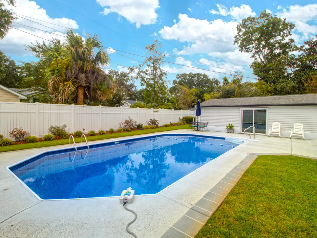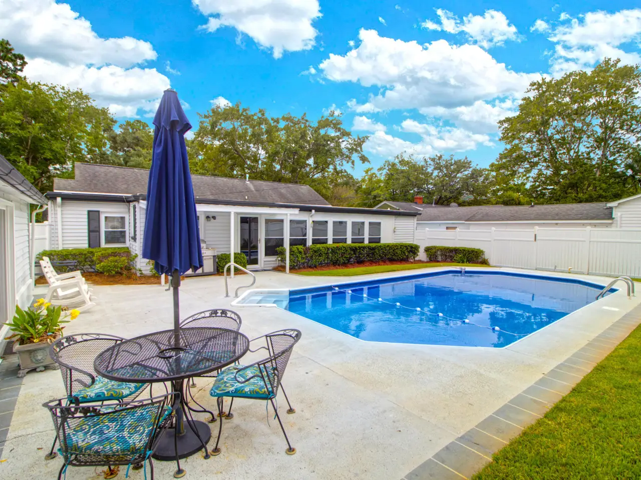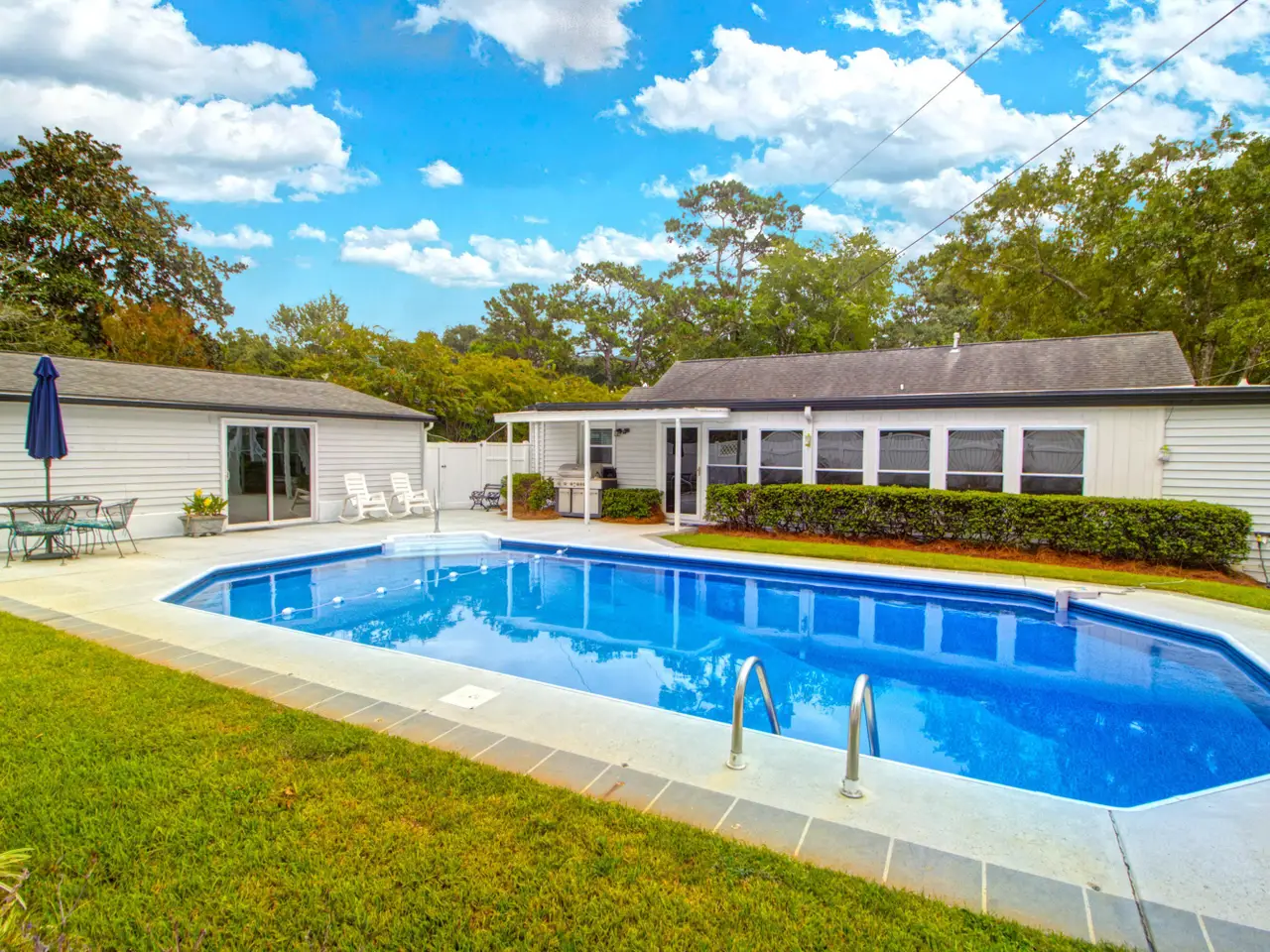 Discover one of the city's most beloved neighborhoods--Riverland Terrace--with this well-loved home that includes four nicely sized bedrooms and two full baths and is ready for you to move in and enjoy as is or remodel to suit your personal style. A bright sunroom offers a perfect spot to relax or entertain, while the kitchen features granite countertops, breakfast bar, a smooth cooktop, and ample cabinetry along with a built-in pantry and a pantry closet! The cozy family room and the broader living areas showcase lovely oak hardwood flooring all in very good condition, enhancing the warmth of the space, while carpet in the bedrooms, sunroom, and laundry provides comfort. The bathrooms have tiled flooring. Windows have been recently updated. The exterior features lovely landscaping anda privacy fence in the backyard . Enjoy summer days by the pleasant in-ground pool, and take advantage of the large pool house, which is equipped with a window unit and could be transformed into anything you desire. Whether you're looking to settle in as-is or craft a personalized living space, this property suits both lifestyles. Located just a few blocks from the Riverland Terrace boat landing and within walking distance of local favorites like The James, the Terrace Theatre, and Miller's All Day, you'll have plenty of opportunities to enjoy dining and shopping right at your doorstep. Plus, being just a quick seven-minute drive from downtown Charleston means you have the best of both worldsa peaceful neighborhood feel with easy access to the city's vibrant life.