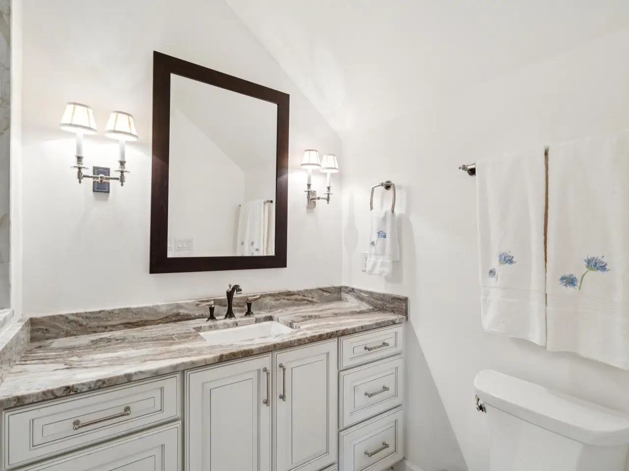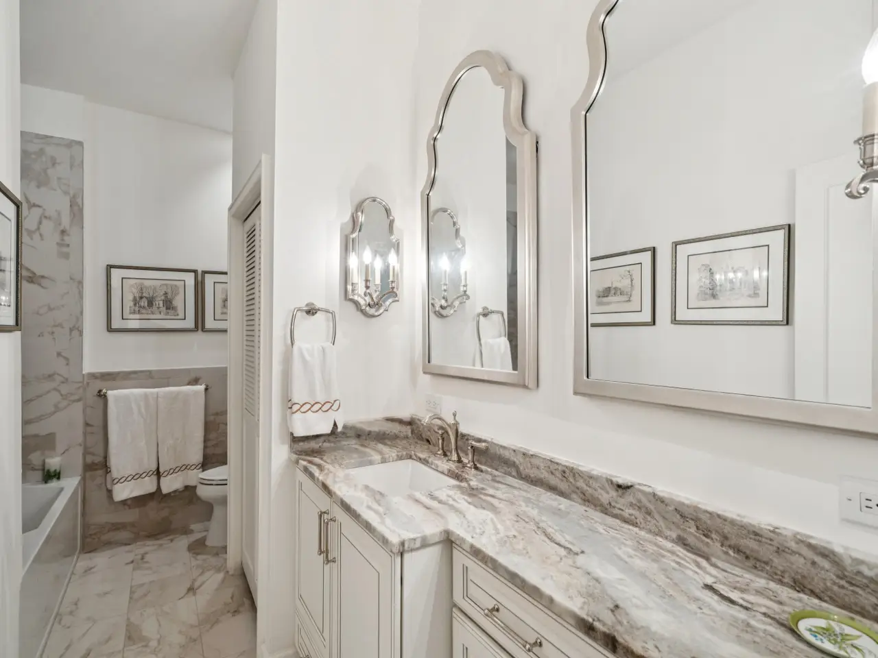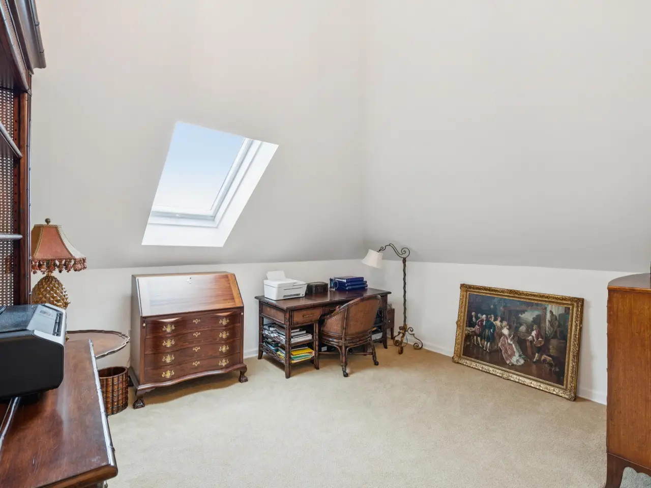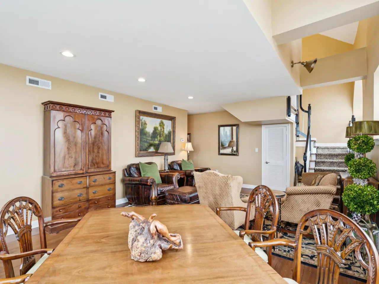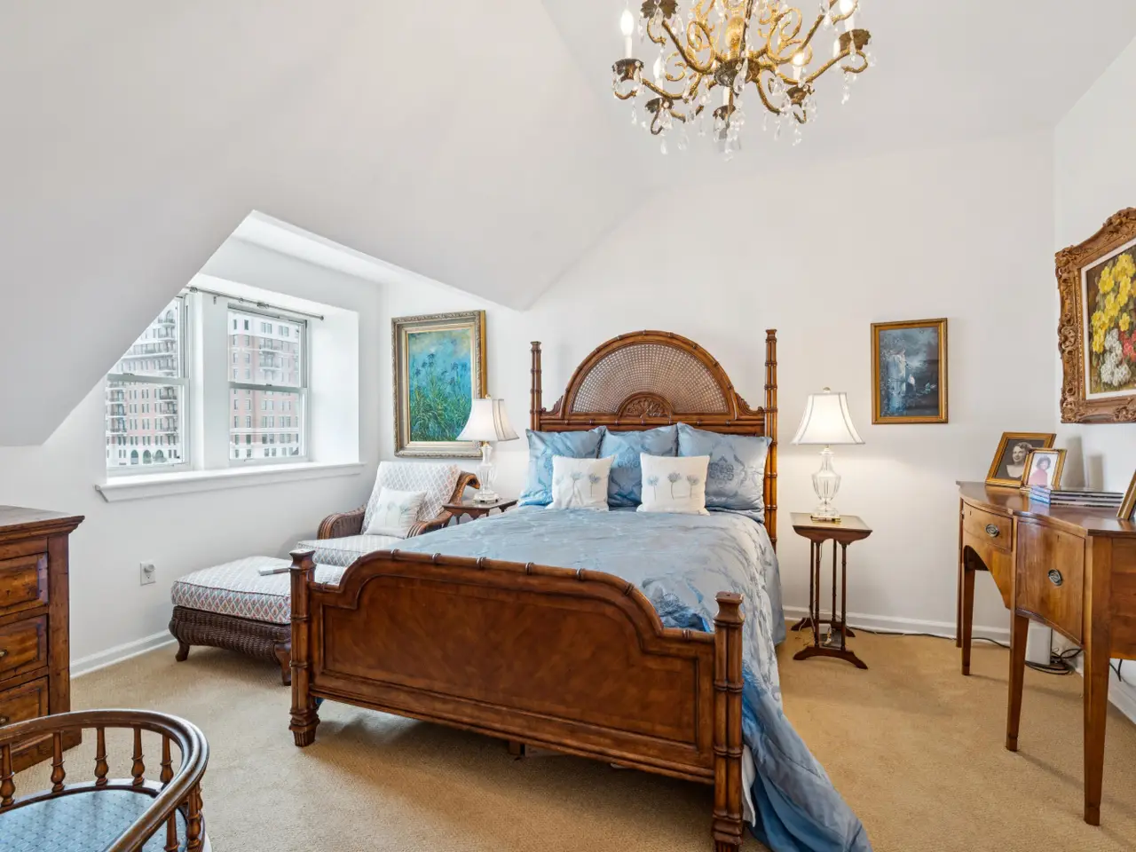 Experience breathtaking views stretching from the Ravenel Bridge to The Jasper on Broad Street from this unique, top floor, corner condominium at the historic Baker House overlooking Colonial Lake. Enjoy passive, park life and interesting wildlife, spectacular sunrises silhouetting the Charleston skyline in the mornings and colorful sunsets reflecting in the many windows of The Jasper and on the lake in the evenings. Built as a private hospital in the early 1900s, Baker House was converted into condominiums in the early eighties and Number 18 was renovated in 2021 and named ''Seven Spires''. The first level boasts three huge, Palladian style windows that showcase the panoramic vista from the living and dining area, beautiful wide plank flooring, a galley kitchen and half bath. This levelalso includes a large beverage bar with a wine cooler, coat closet and additional space separating the living area and kitchen for use as a media room, office or smaller dinette. Three bedrooms and two full bathrooms comprise the second level with unusually ample closets throughout. No storage issues here! The spacious, primary bedroom features a tiled, en-suite bathroom with a large shower and quartz countertop. The other two bedrooms are generously sized as well with skylights that enable one to sleep under the moon and the stars! A second, large, tiled bathroom with a combination tub and shower and quartz countertop is located off the hallway just a few steps from both bedrooms. Moultrie Park, a large, active park offering sports such as tennis, pickleball, and basketball, abuts the large, private parking lot for Baker House residents. Restaurants within close walking distance include The Alcove Market, Costa and Circa 1886. The Crosstown (Highway 17), connecting to all points north, east and west, is a three minute drive. This offering is an exceptional opportunity to live in an historic building, Baker House, in an historic neighborhood, Harleston Village, on the quiet, residential side of the peninsula and to enjoy fabulous views of Charleston above the tree tops! Chandeliers do not convey.